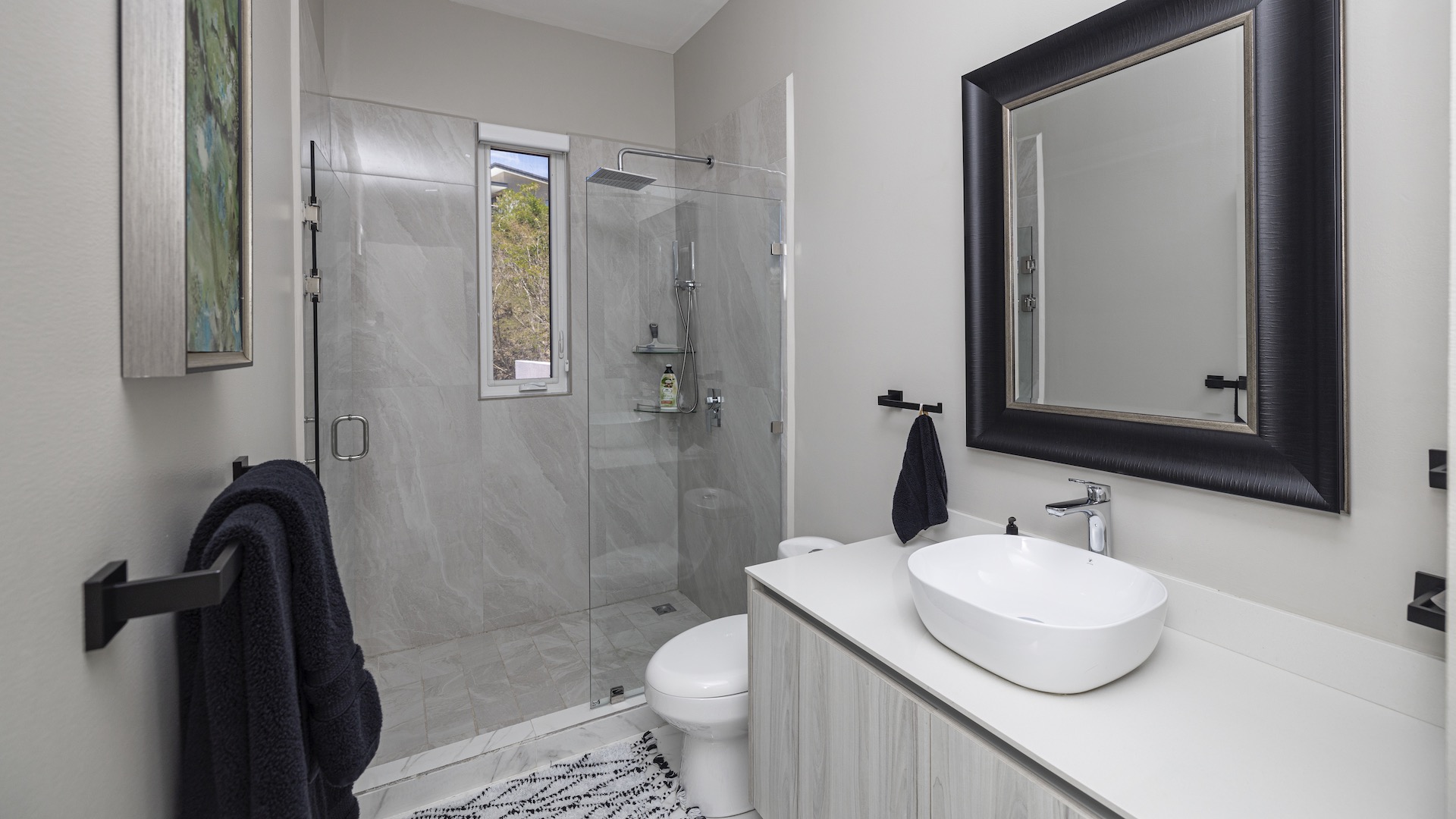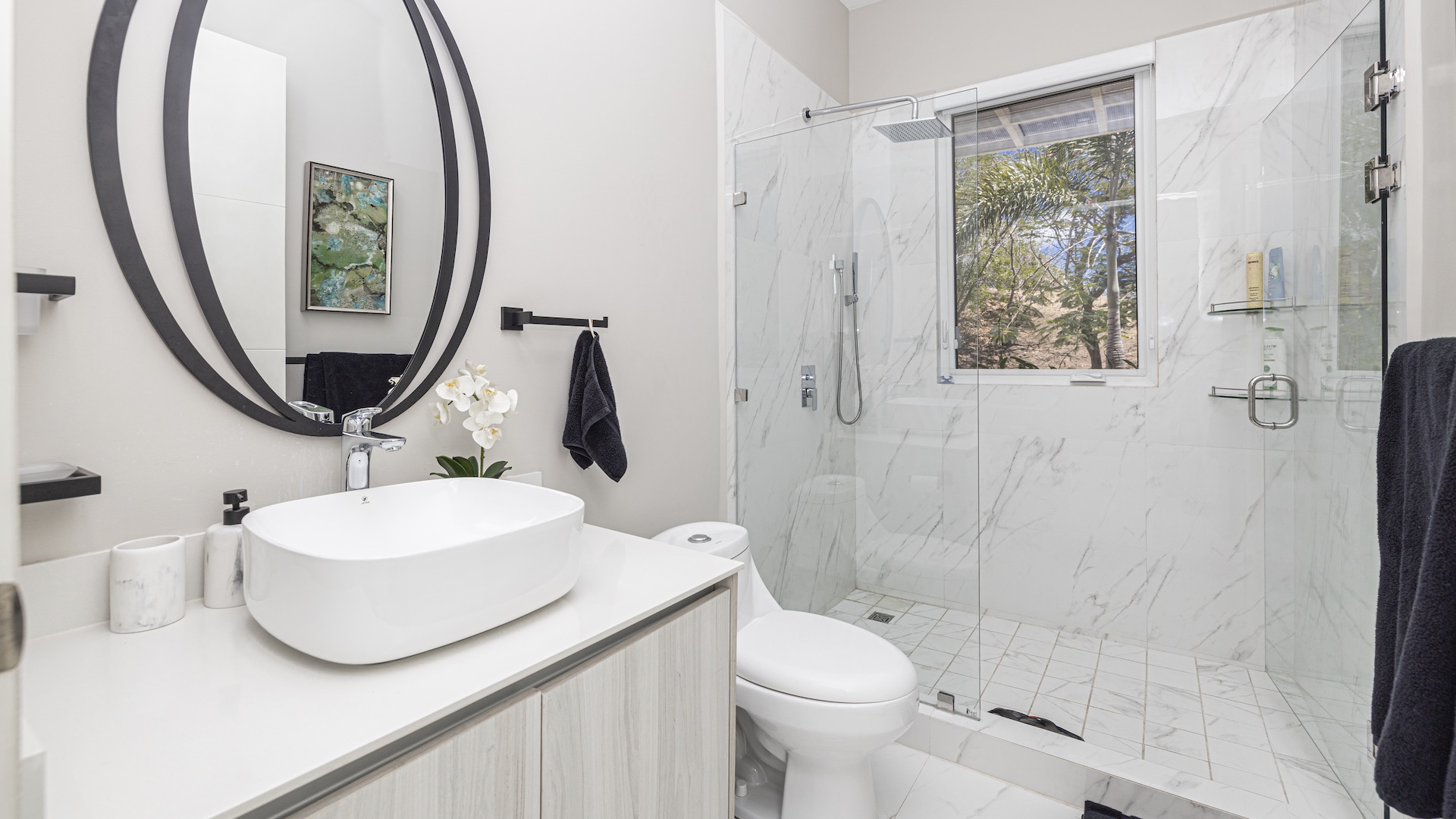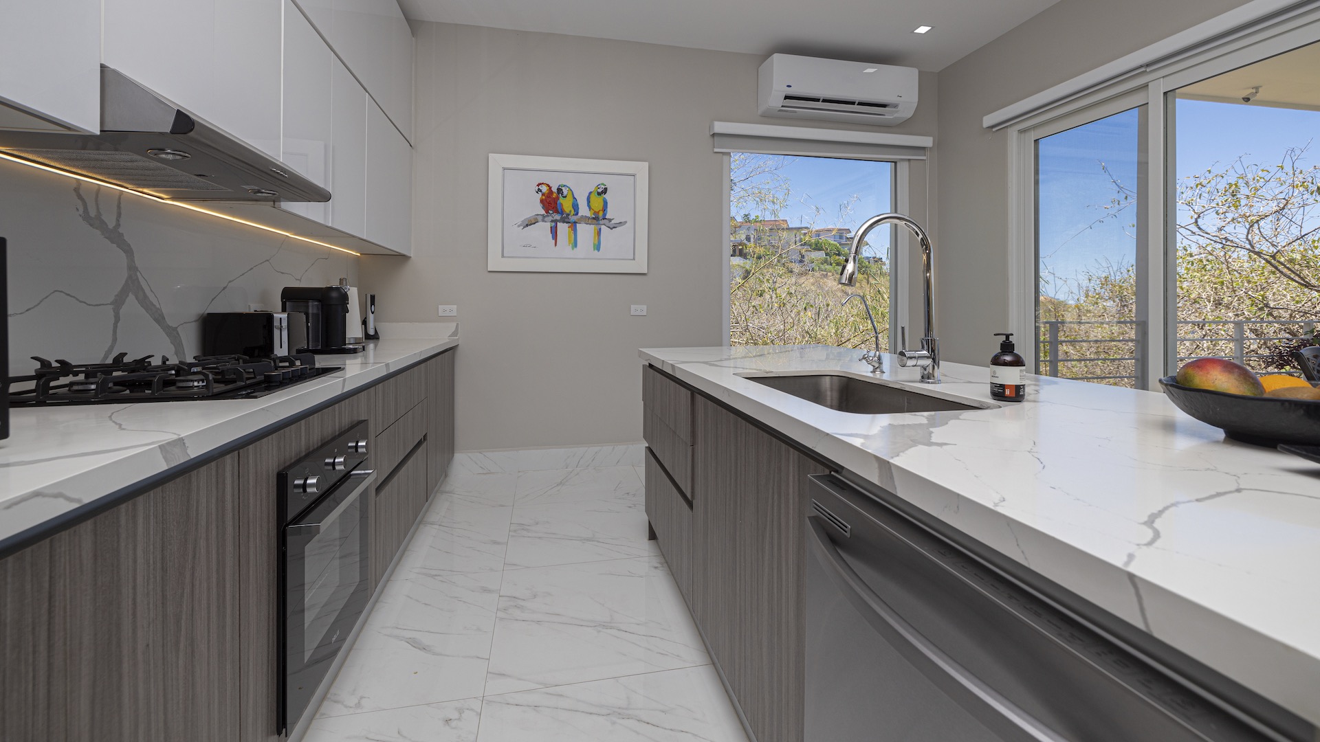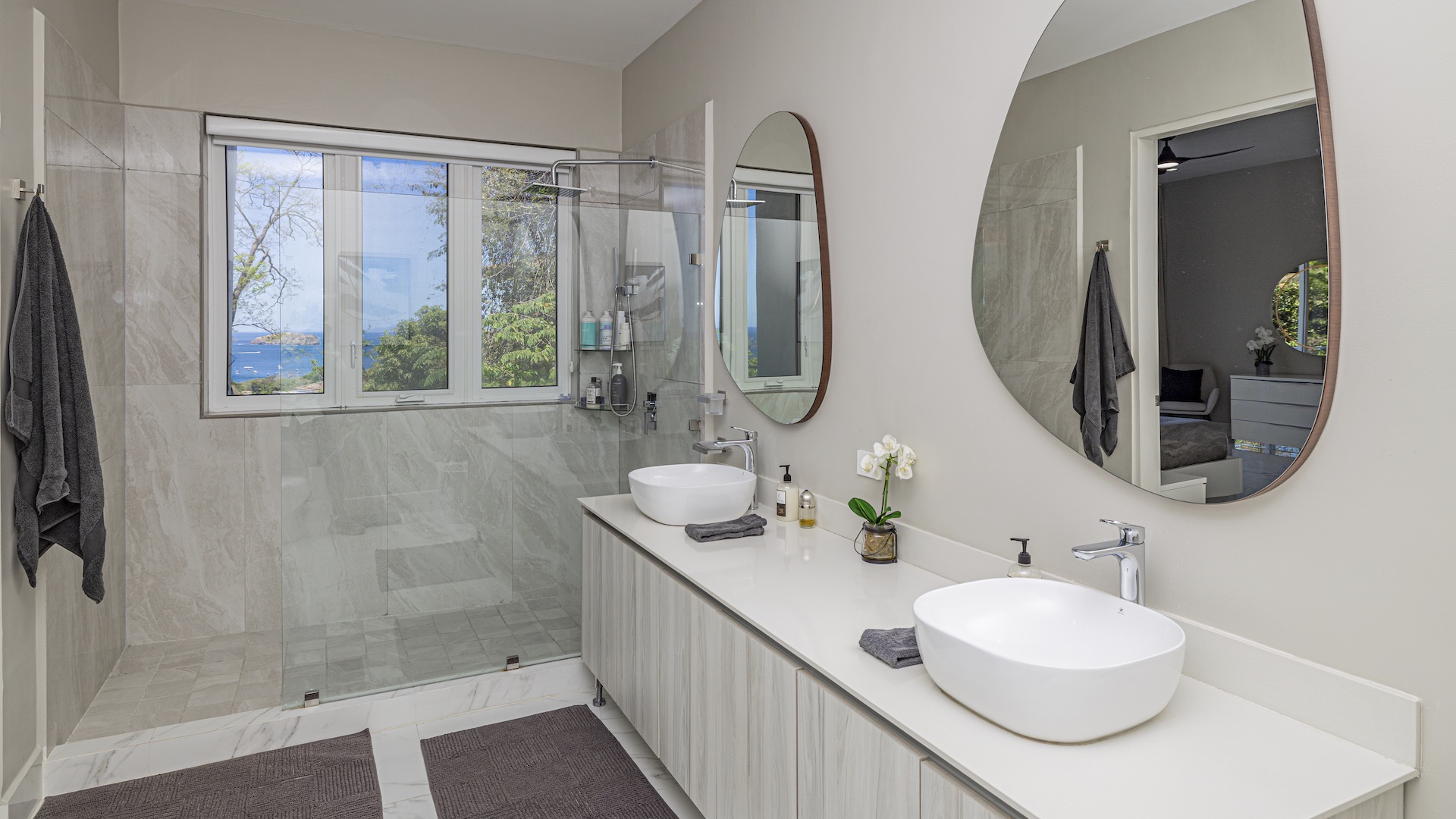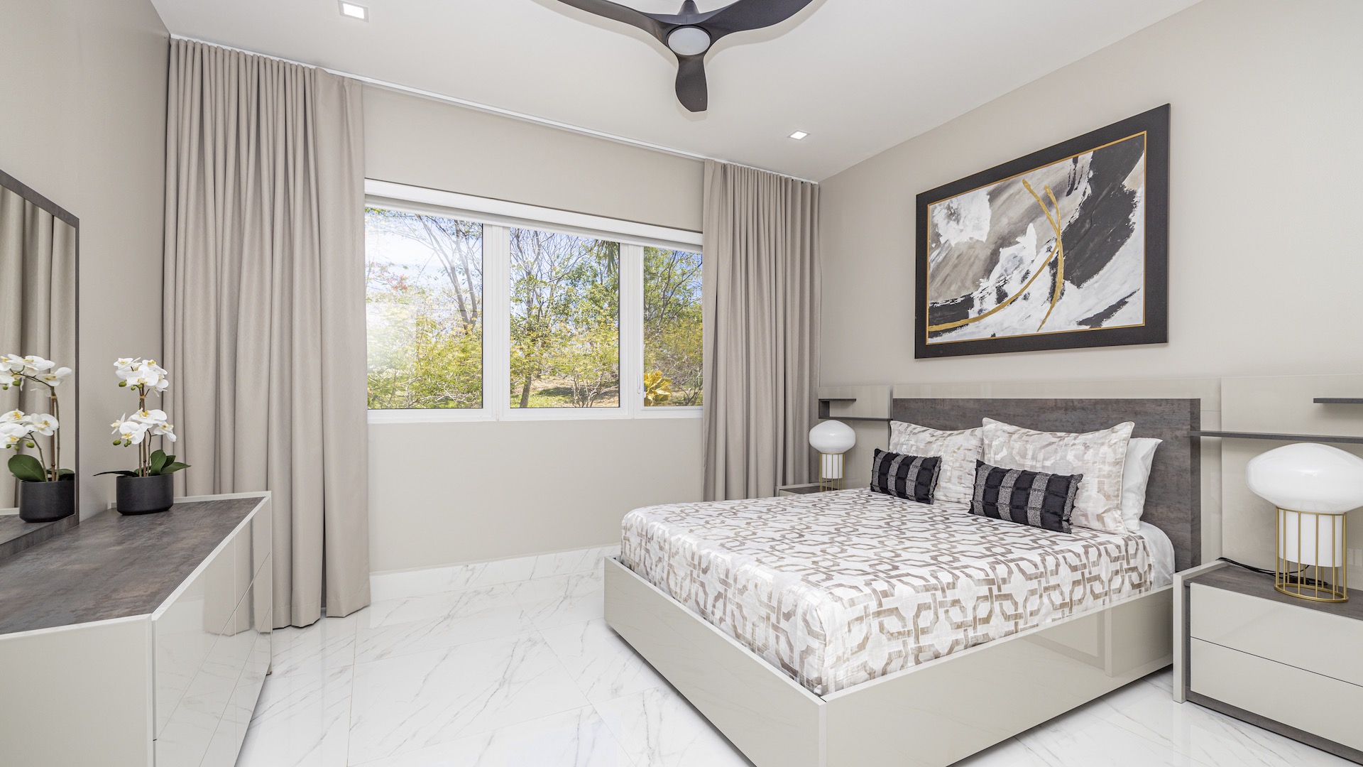 This stunning contemporary ocean-view residence offers an exceptional blend of luxury, comfort, and versatility within the prestigious Pacifico community. Boasting 5,497 total square feet on a 767-square-meter lot, including 3,733 square feet of air-conditioned living space, the fully furnished home features six spacious bedrooms—each with its own private ensuite bathroom—plus an additional full guest bath. The main level showcases an expansive great room where the gourmet kitchen, dining, and living areas seamlessly flow onto a sweeping covered terrace and spectacular ocean-view pool, complete with a sumptuous BBQ and wet bar zone, generous covered lounging spaces, sunning areas, and a separate covered outdoor dining room off the kitchen. This wraparound terrace extends across the entire façade, creating an ideal setting for entertaining and enjoying breathtaking sunsets. Also on the main floor are a full bedroom, two bathrooms, and an attached two-car garage. The upper level hosts two ocean-view bedroom suites, each with private terraces, along with a cozy TV lounge and office nook at the top of the stairs. The lower level offers three additional ocean-view bedroom suites with private terraces and sitting areas, a laundry room, and a spacious family room designed for games and media. Additional off-street parking on the lower level provides convenient access to the main floor via elegant spiral stairs. High-end finishes throughout include imported energy-efficient windows and sliding glass doors, luxury porcelain tile flooring, quartz countertops, and custom cabinetry. As a Pacifico resident, enjoy exclusive access to world-class amenities such as multiple resort-style pools, a private Beach Club with bar and restaurant, a poolside grill, tennis and pickleball courts, and a state-of-the-art fitness center. Ideally located within walking distance of Playa del Coco’s vibrant dining, shopping, and medical services, and just 25 minutes from Guanacaste International Airport (LIR) as well as minutes from the pristine beaches of the Papagayo region, this remarkable property presents an outstanding opportunity to enjoy a dream vacation or retirement home while also generating attractive rental income.
