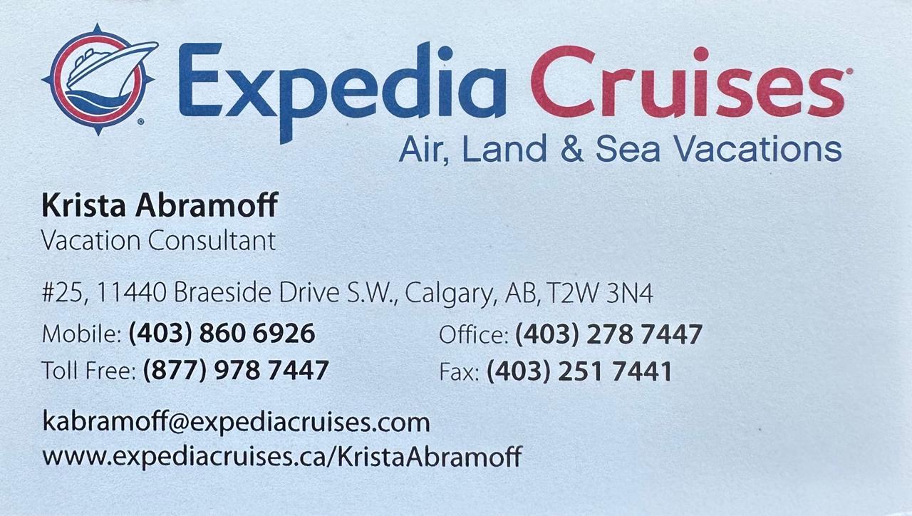 Another great option is my friend Krista Abramoff.  Krista is a Vacation Specialist with Expedia Cruises.  She brings a ton of experience and knowledge to the table. She can book just about anything, cruises, all-inclusive resorts, Europe trips, Disney, group travel, you name it. She’s also able to book for both U.S. and Canadian clients.