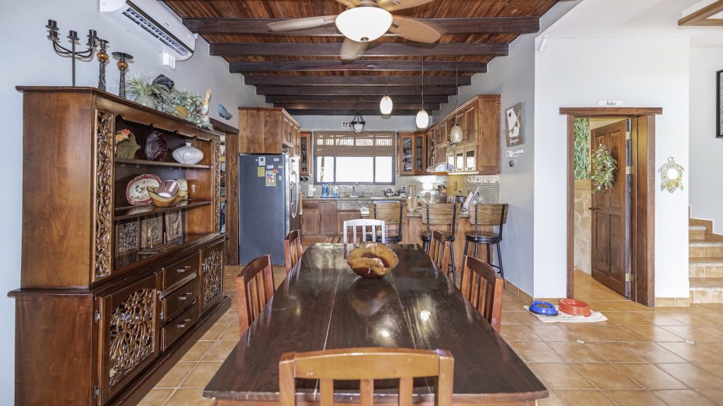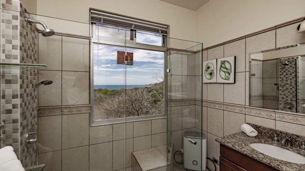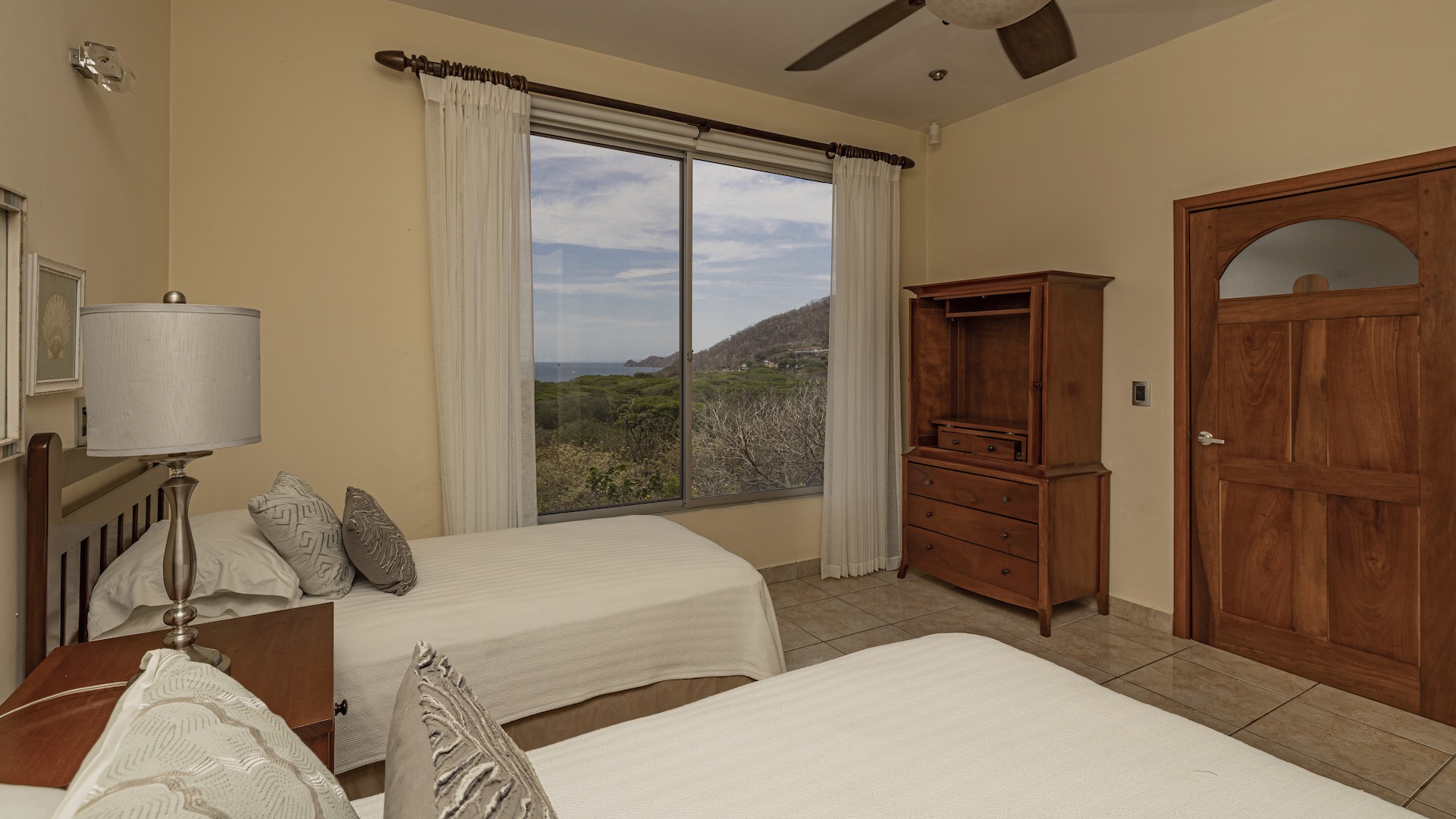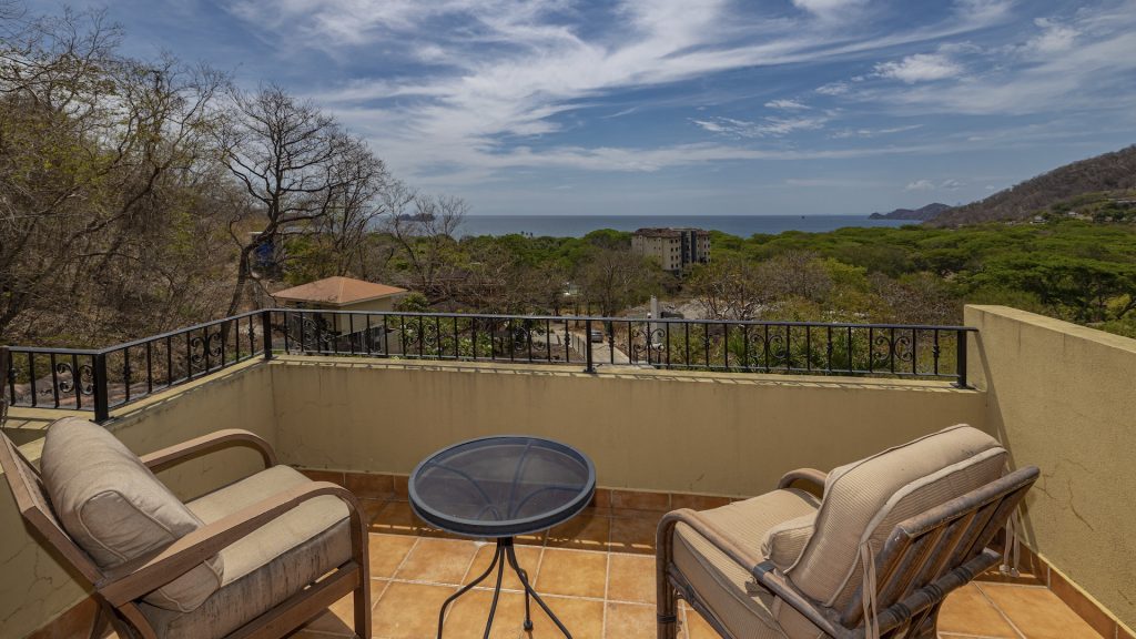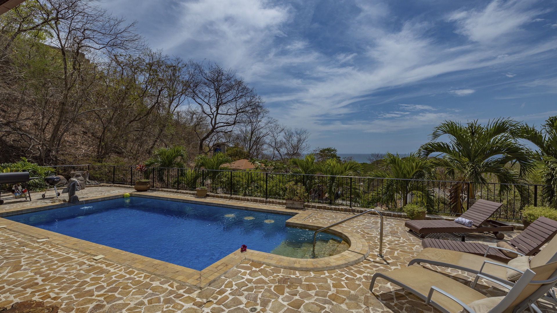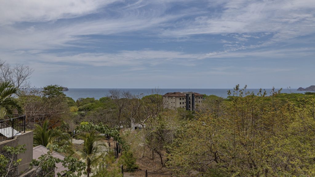 Two – 3 Bedroom, 3 Bathroom Ocean View Homes With Huge Terraces and 2 Pools. These two furnished ocean view homes comprise a one of a kind property with over an acre (4,586 Square Meters) of fully fenced and gated land surrounded by upscale ocean view home developments. Enjoy the cache of the neighborhood but not be tied to an HOA payment or rules. A short driveway leads up to the parking area in back of the two separate homes with the guest house and garage down below. Each home measures approximately 2,100 square feet for a total of 5,200 square feet and each has an attached carport and plenty overflow parking. Both houses have the same layout with different finishes and feature the living room, dining area and kitchen on the main floor along with a bedroom and ensuite bathroom, a nicely sized laundry room and half bathroom. Both feature large ocean view terraces and luxury sized pools. The second floor is the same layout as well with 2 bedrooms and 2 full bathrooms and walk out ocean view terraces from the master bedrooms. There is a full guest house or caretakers quarters down below with a full kitchen and living area, a bedroom and bathroom. This property is perfect for a vacation rental juggernaut or ideal as a family compound. Right between the upscale developments of Palo Alto and Monte Bello. A short drive to Playa Hermosa Beach and just 20 minutes to the Liberia International Airport and just minutes to various beaches, private hospitals, all services, restaurants, nightlife and watersports of the area. Move in Today