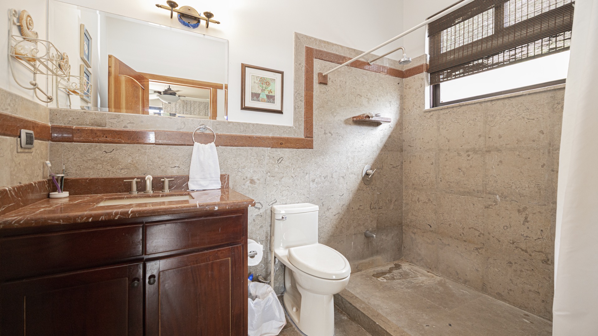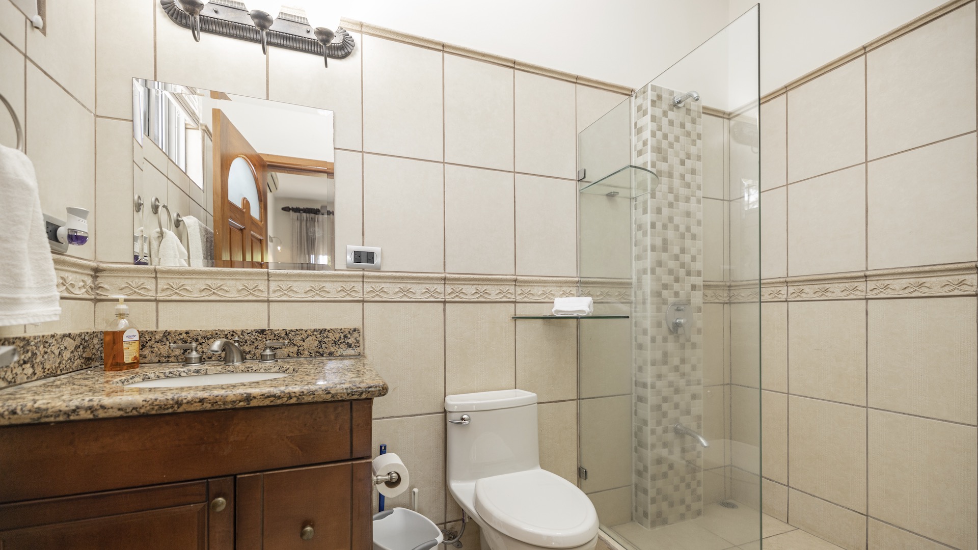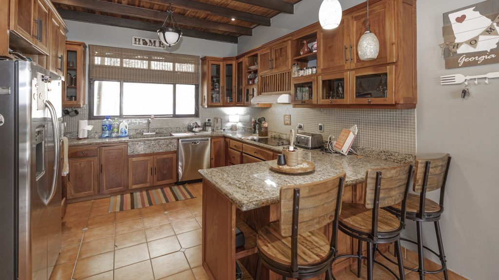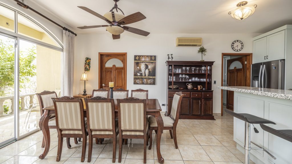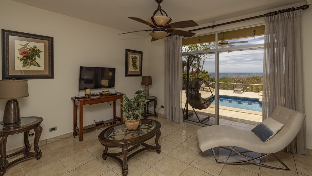 Two – 3 Bedroom, 3 Bathroom Ocean View Homes With Huge Terraces and 2 Pools. These two furnished ocean view homes comprise a one of a kind property with over an acre (4,586 Square Meters) of fully fenced and gated land surrounded by upscale ocean view home developments. Enjoy the cache of the neighborhood but not be tied to an HOA payment or rules. A short driveway leads up to the parking area in back of the two separate homes with the guest house and garage down below. Each home measures approximately 2,100 square feet for a total of 5,200 square feet and each has an attached carport and plenty overflow parking. Both houses have the same layout with different finishes and feature the living room, dining area and kitchen on the main floor along with a bedroom and ensuite bathroom, a nicely sized laundry room and half bathroom. Both feature large ocean view terraces and luxury sized pools. The second floor is the same layout as well with 2 bedrooms and 2 full bathrooms and walk out ocean view terraces from the master bedrooms. There is a full guest house or caretakers quarters down below with a full kitchen and living area, a bedroom and bathroom. This property is perfect for a vacation rental juggernaut or ideal as a family compound. Right between the upscale developments of Palo Alto and Monte Bello. A short drive to Playa Hermosa Beach and just 20 minutes to the Liberia International Airport and just minutes to various beaches, private hospitals, all services, restaurants, nightlife and watersports of the area. Move in Today