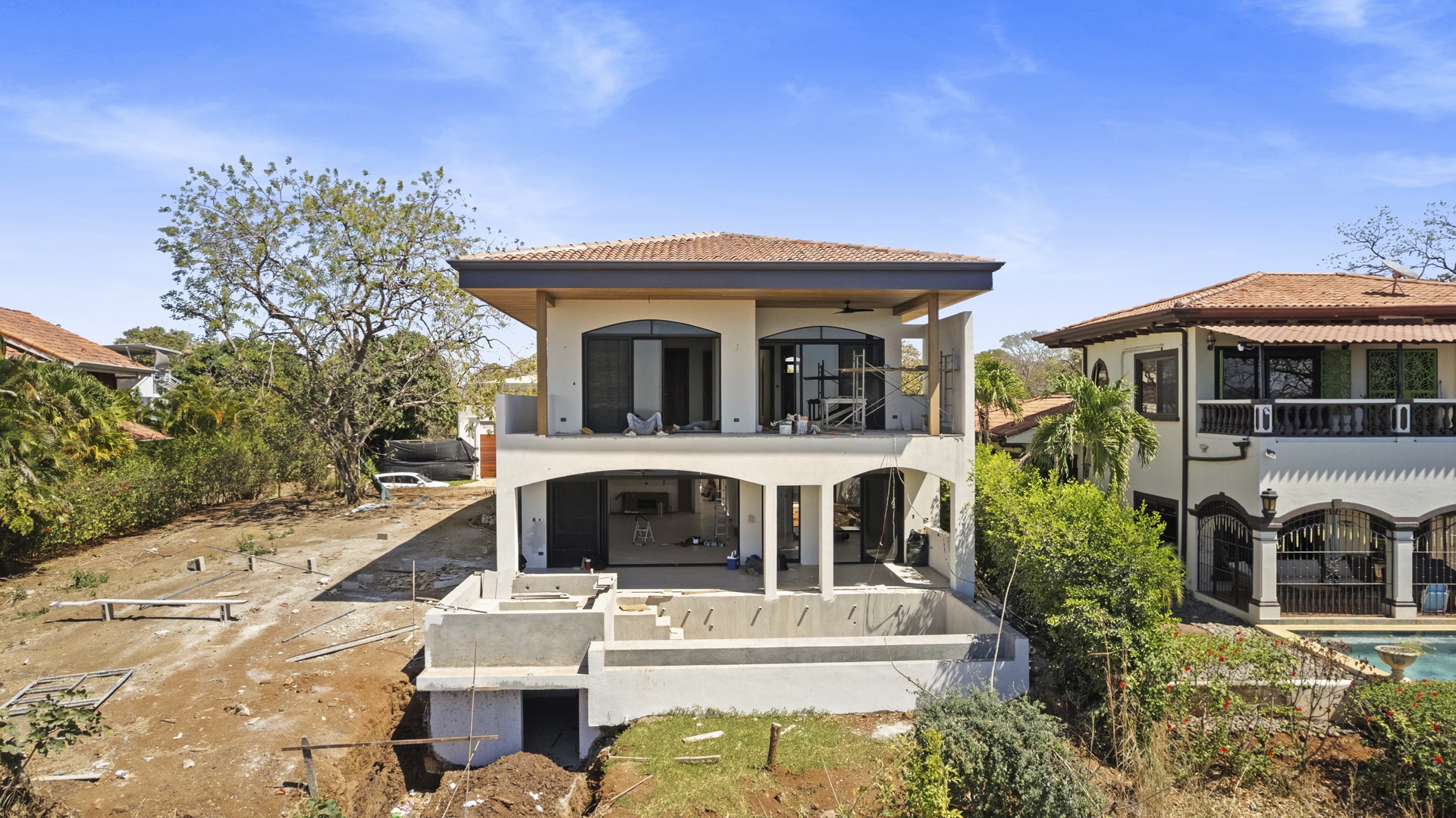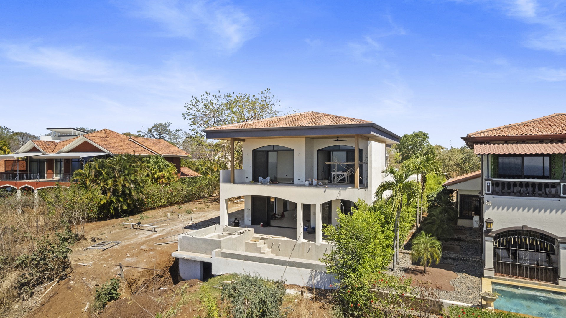 Discover refined coastal living in this brand-new 5-bedroom, 5.5-bath luxury residence offering 3,432 SF of air-conditioned space and 5,036 total SF including expansive terraces and a two-car attached garage. Designed for seamless indoor-outdoor living, the main level features a spacious great room where the gourmet kitchen, dining, and living areas flow effortlessly onto a large covered pool terrace complete with an infinity-edge pool, separate jacuzzi, and the BBQ and wet bar zone—ideal for entertaining in style. This level also includes a powder room, laundry room, secure off-street storage for jet skis or other toys, and a stand-alone guest suite with private entrance and en-suite bathroom overlooking a tranquil internal garden terrace. Upstairs, four additional bedrooms each offer ensuite bathrooms, including two ocean-view suites with private terraces—one boasting a generous walk-in closet—capturing the beauty of Costa Rica’s Pacific coastline. Perfectly positioned just five minutes from the new Waldorf Astoria Costa Rica Punta Cacique and nestled between Playas del Coco and Playa Hermosa within the prestigious Los Altos del Cacique community, this exceptional home places you moments from pristine beaches, fine dining, shopping, healthcare, and only 25 minutes from Daniel Oduber Quiros International Airport (LIR). Furnish this stunning property to your personal taste and begin your Costa Rica adventure in elevated comfort and style. Financing Terms: 30% down, 8.25% fixed, no points, 25-year monthly payment amortization with 5-year balloon.
