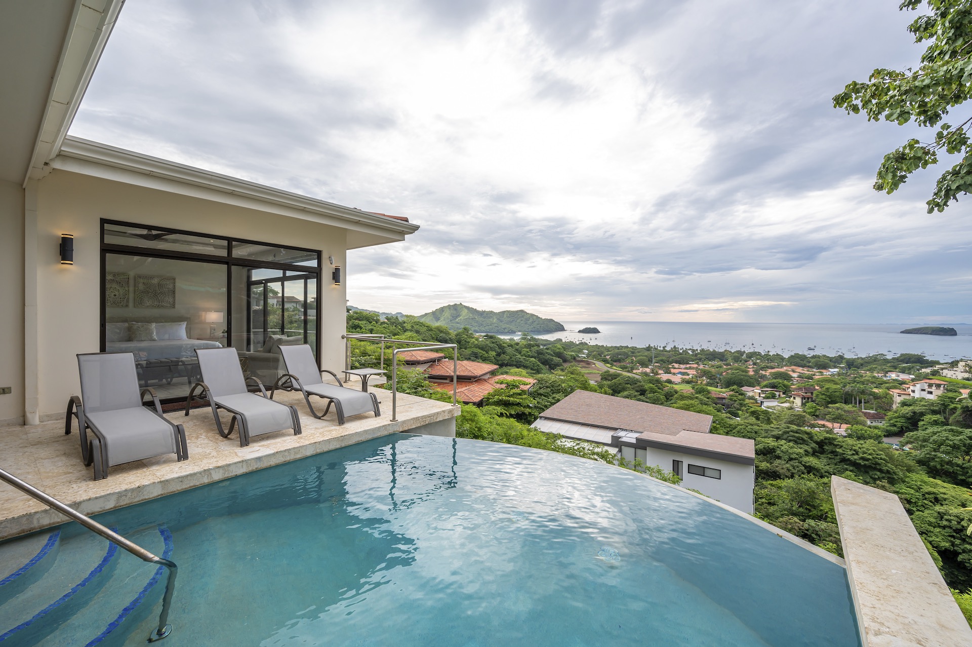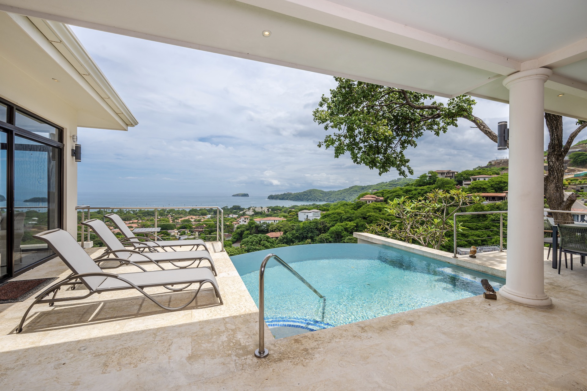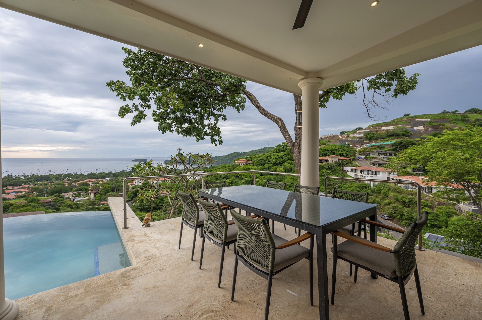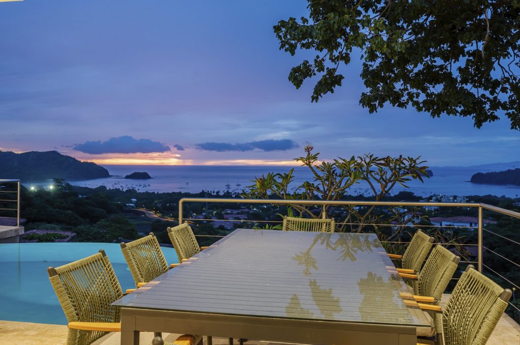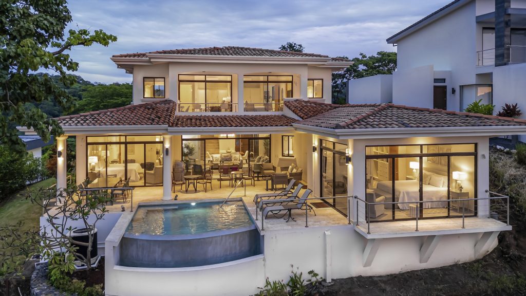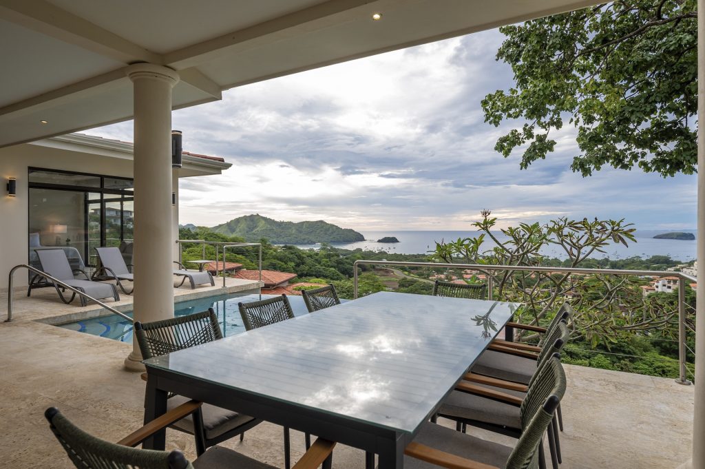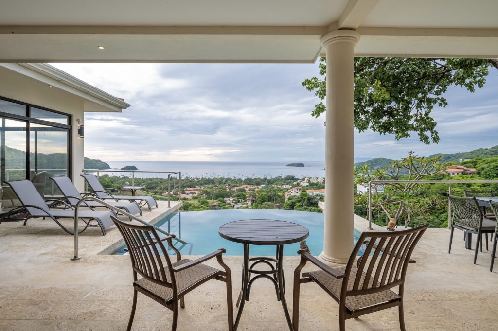This beautifully designed luxury residence offers 3,109 air-conditioned square feet and 4,929 total square feet including expansive outdoor living areas and an attached two-car garage and bonus carport, perfectly blending comfort, elegance, and coastal sophistication. The home features four spacious bedrooms, each with its own ensuite bathroom, including two ocean-view bedrooms on the main level with direct access to the terrace, and two additional ocean-view bedrooms upstairs that share a generous panoramic terrace. The open-concept great room seamlessly connects the living and dining areas to the stunning ocean-view pool terrace, where an infinity-edge pool, outdoor dining space, and dedicated BBQ zone create an ideal setting for entertaining or relaxing against a breathtaking backdrop; thoughtfully designed, the terrace provides welcome afternoon shade, allowing for comfortable enjoyment of the ample outdoor living spaces throughout the day while still capturing the stunning ocean views and awe inspiring sunsets. The well-appointed kitchen centers around a large island and is complemented by an oversized laundry and pantry combination, offering both functionality and style. Ideally located just minutes from the vibrant beach communities of Playas del Coco and nearby coastal towns, this home provides convenient access to a full range of services including shopping, dining, nightlife, watersports, and medical and dental care, and is only 25 minutes from Guanacaste International Airport (LIR). Owners also enjoy access to Pacifico’s exceptional amenities, including the exclusive Pacifico Beach Club, offering direct access to the sandy shores, oceanfront dining, and resort-style pools and lounge areas—completing a truly elevated coastal lifestyle.
