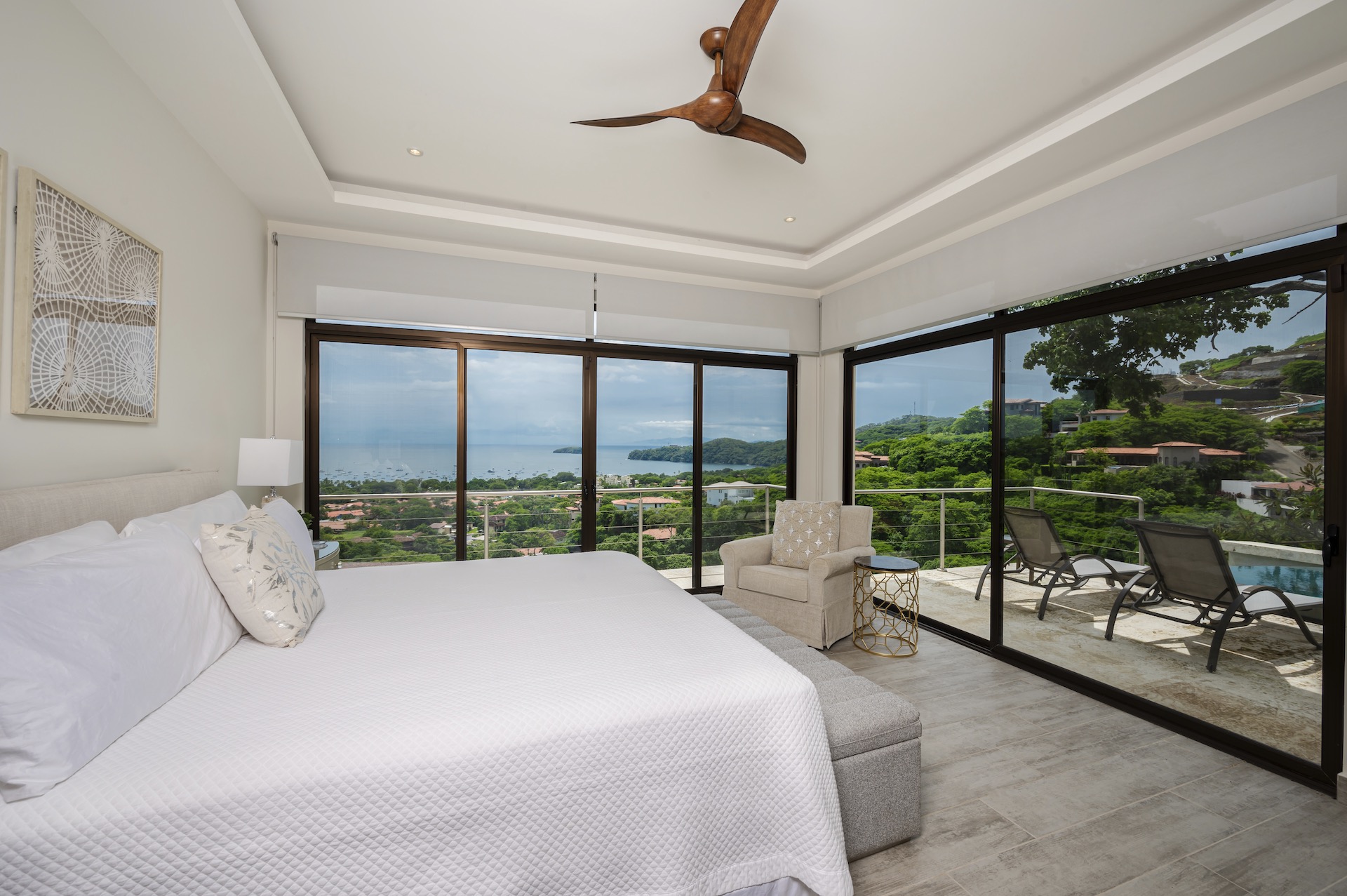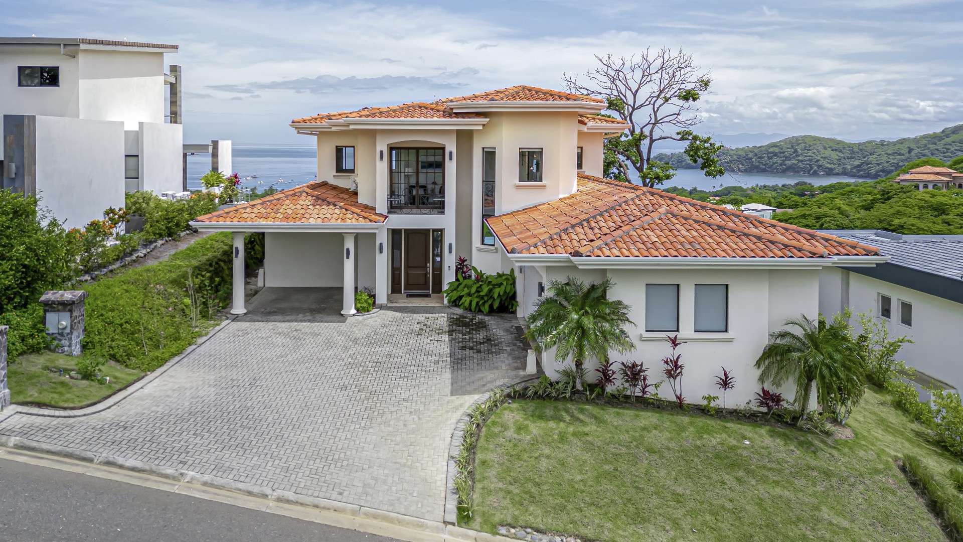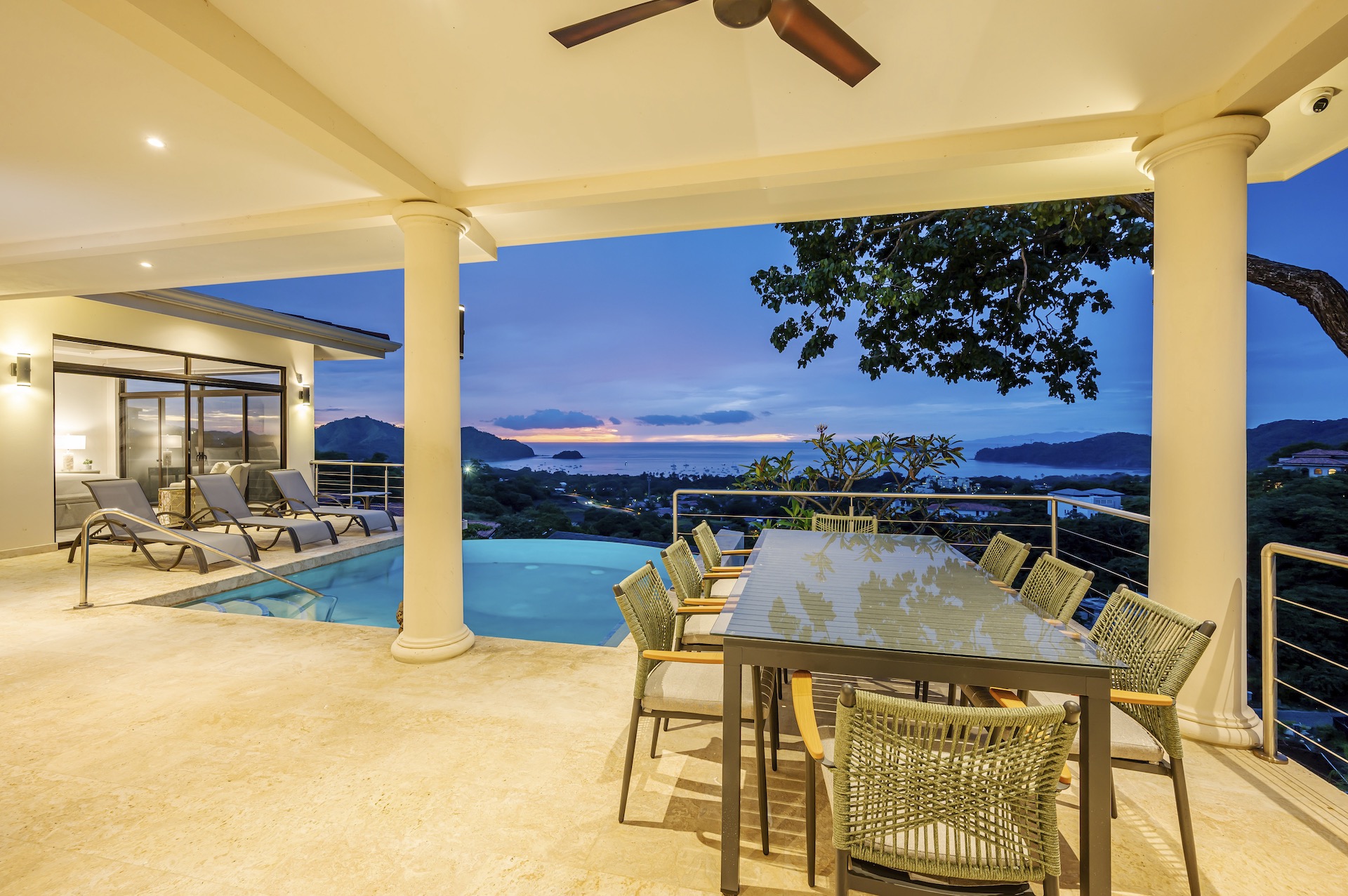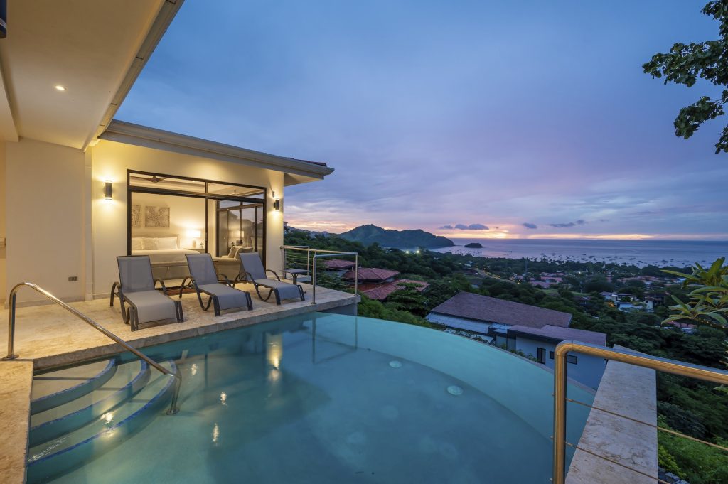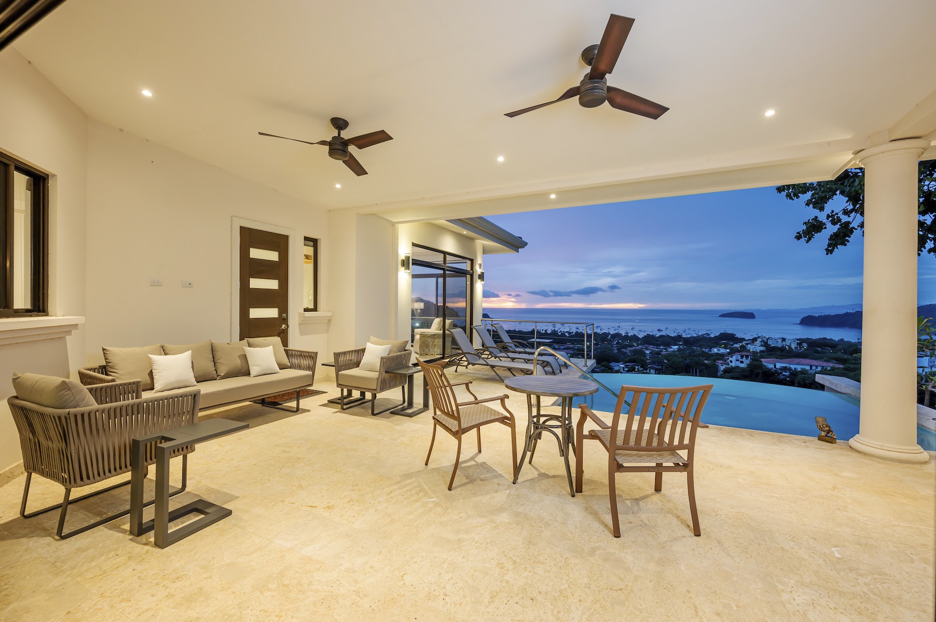 This beautifully designed luxury residence offers 3,109 air-conditioned square feet and 4,929 total square feet including expansive outdoor living areas and an attached two-car garage and bonus carport, perfectly blending comfort, elegance, and coastal sophistication. The home features four spacious bedrooms, each with its own ensuite bathroom, including two ocean-view bedrooms on the main level with direct access to the terrace, and two additional ocean-view bedrooms upstairs that share a generous panoramic terrace. The open-concept great room seamlessly connects the living and dining areas to the stunning ocean-view pool terrace, where an infinity-edge pool, outdoor dining space, and dedicated BBQ zone create an ideal setting for entertaining or relaxing against a breathtaking backdrop; thoughtfully designed, the terrace provides welcome afternoon shade, allowing for comfortable enjoyment of the ample outdoor living spaces throughout the day while still capturing the stunning ocean views and awe inspiring sunsets. The well-appointed kitchen centers around a large island and is complemented by an oversized laundry and pantry combination, offering both functionality and style. Ideally located just minutes from the vibrant beach communities of Playas del Coco and nearby coastal towns, this home provides convenient access to a full range of services including shopping, dining, nightlife, watersports, and medical and dental care, and is only 25 minutes from Guanacaste International Airport (LIR). Owners also enjoy access to Pacifico’s exceptional amenities, including the exclusive Pacifico Beach Club, offering direct access to the sandy shores, oceanfront dining, and resort-style pools and lounge areas—completing a truly elevated coastal lifestyle.