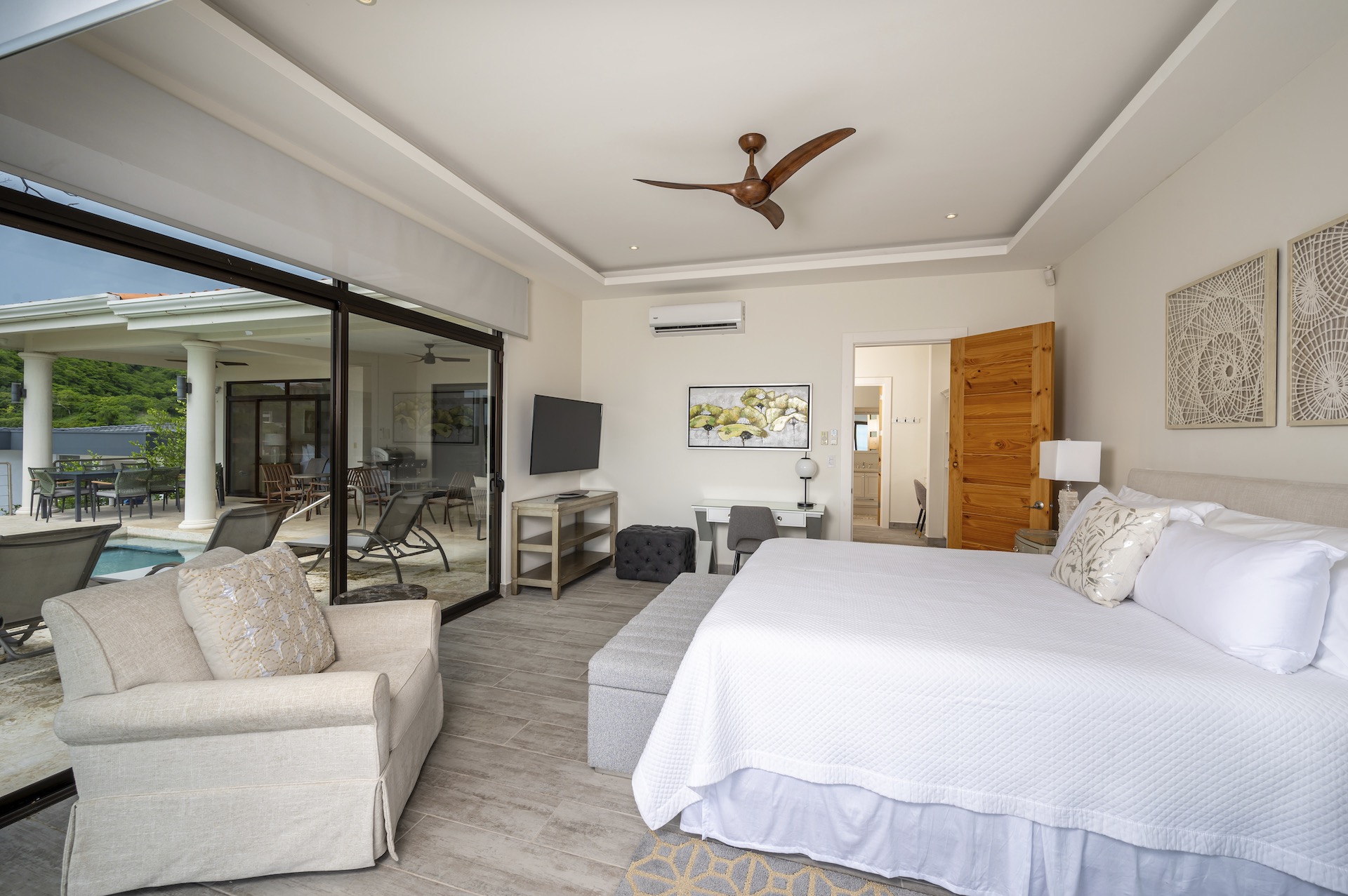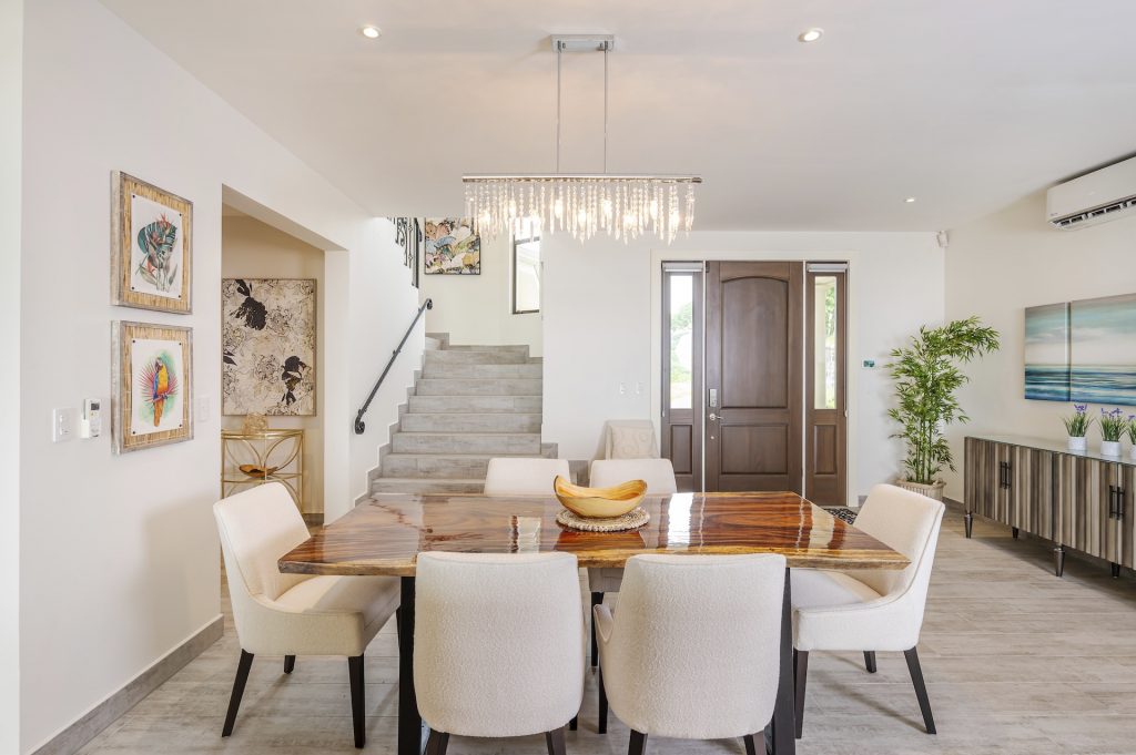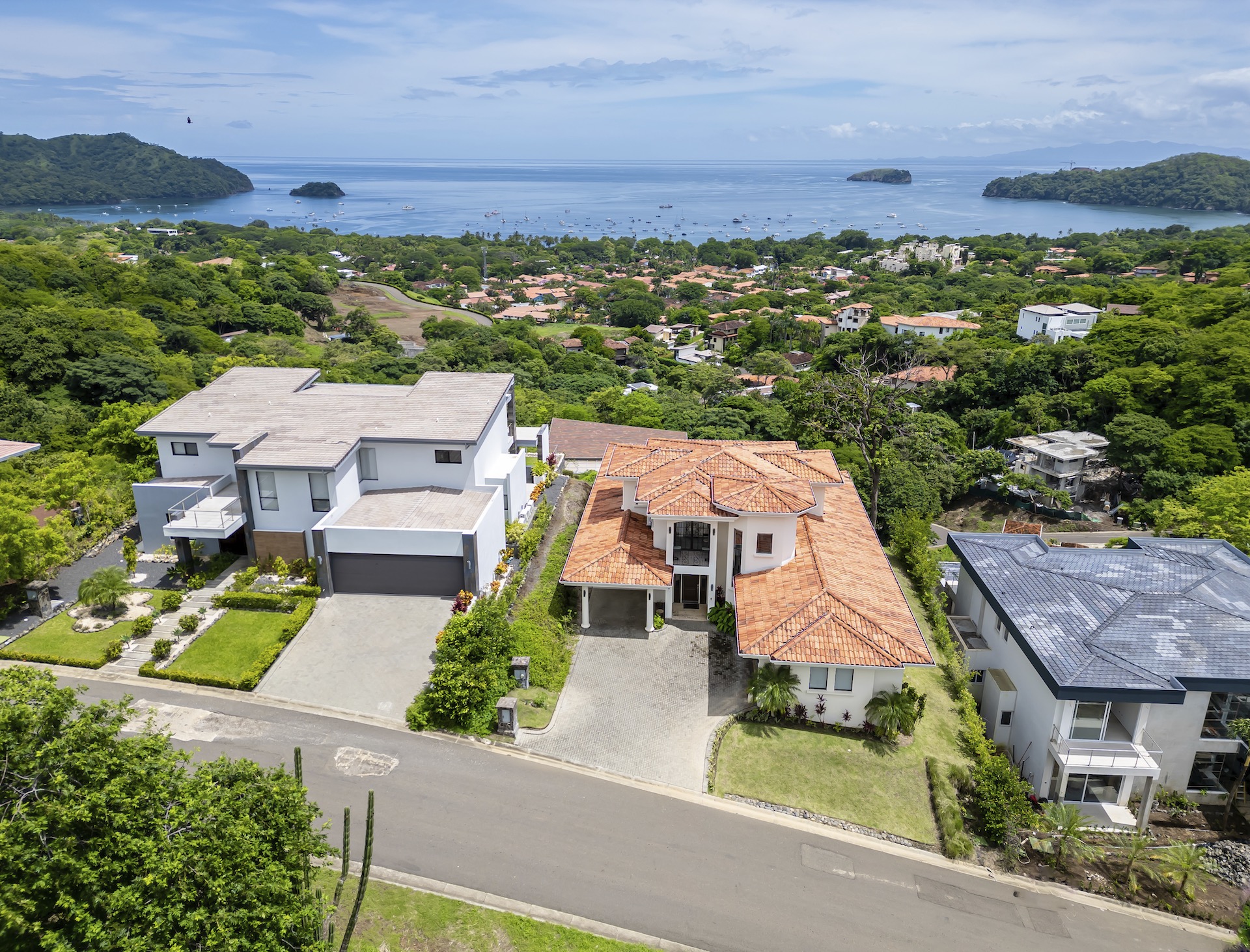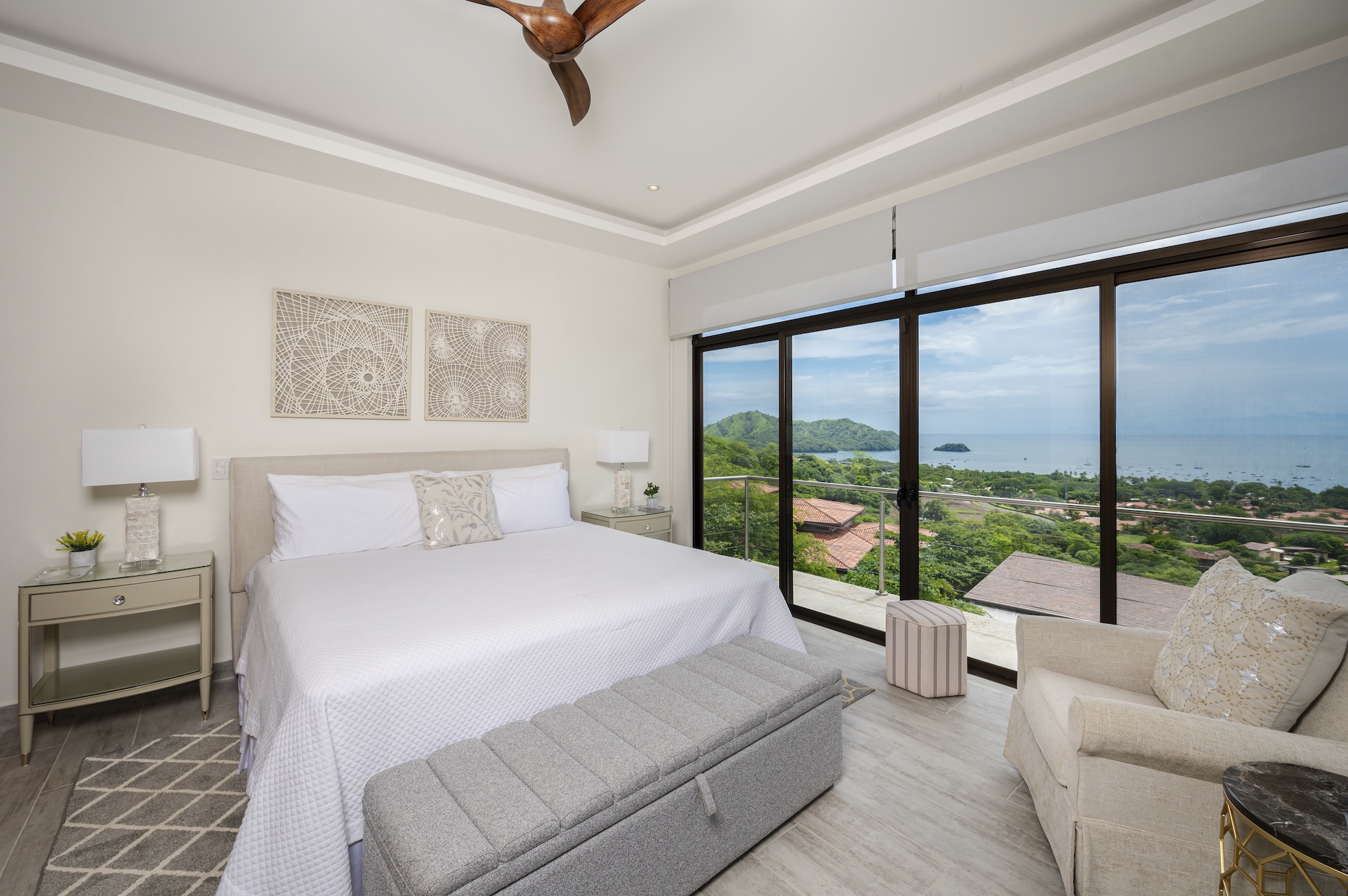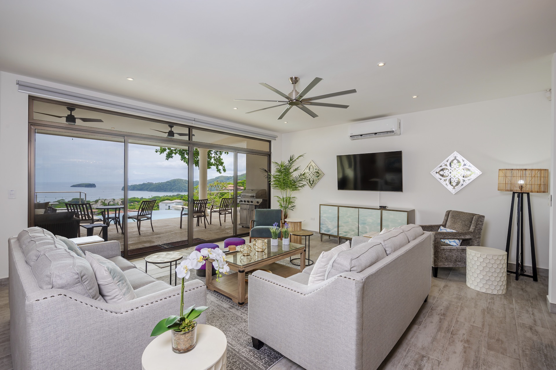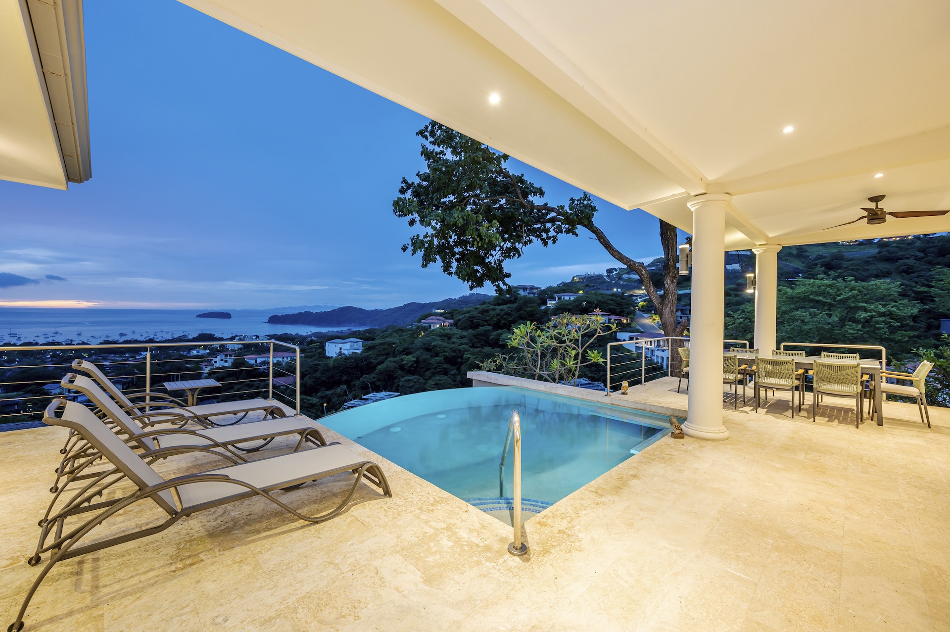 This beautifully designed luxury residence offers 3,109 air-conditioned square feet and 4,929 total square feet including expansive outdoor living areas and an attached two-car garage and bonus carport, perfectly blending comfort, elegance, and coastal sophistication. The home features four spacious bedrooms, each with its own ensuite bathroom, including two ocean-view bedrooms on the main level with direct access to the terrace, and two additional ocean-view bedrooms upstairs that share a generous panoramic terrace. The open-concept great room seamlessly connects the living and dining areas to the stunning ocean-view pool terrace, where an infinity-edge pool, outdoor dining space, and dedicated BBQ zone create an ideal setting for entertaining or relaxing against a breathtaking backdrop; thoughtfully designed, the terrace provides welcome afternoon shade, allowing for comfortable enjoyment of the ample outdoor living spaces throughout the day while still capturing the stunning ocean views and awe inspiring sunsets. The well-appointed kitchen centers around a large island and is complemented by an oversized laundry and pantry combination, offering both functionality and style. Ideally located just minutes from the vibrant beach communities of Playas del Coco and nearby coastal towns, this home provides convenient access to a full range of services including shopping, dining, nightlife, watersports, and medical and dental care, and is only 25 minutes from Guanacaste International Airport (LIR). Owners also enjoy access to Pacifico’s exceptional amenities, including the exclusive Pacifico Beach Club, offering direct access to the sandy shores, oceanfront dining, and resort-style pools and lounge areas—completing a truly elevated coastal lifestyle.