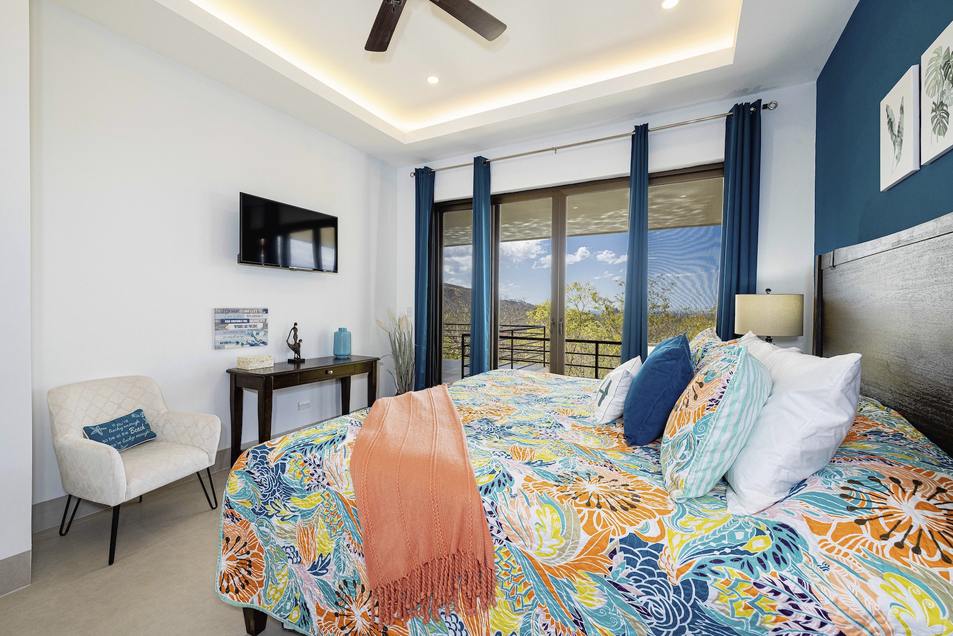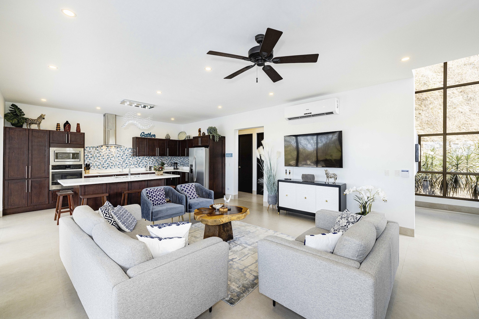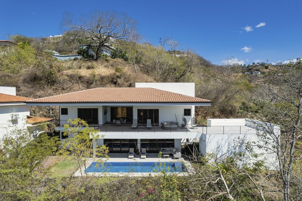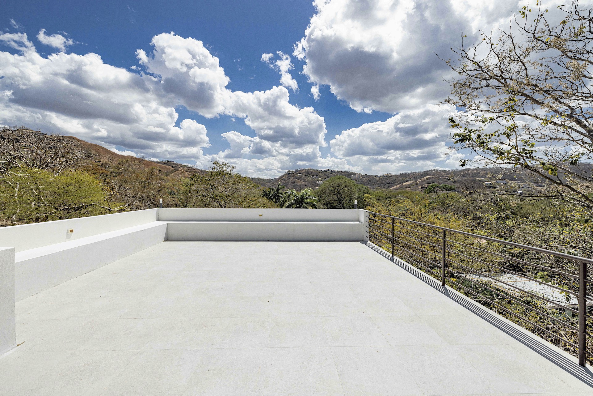 Experience refined coastal living in this brand-new ocean view estate inside the coveted Monte Bello in Playa Hermosa, offering 3 bedrooms, 3.5 baths, a huge private pool, attached 2-car garage, and an impressive 3,628 total square feet of thoughtfully designed space. Privately positioned on an estate-sized lot of nearly half an acre (1,612 square meters), the home is accessed by a winding driveway framed by mature tropical trees, setting a tone of tranquility from the moment you arrive. The main level unfolds into an immense great room where living, dining, and a beautifully appointed kitchen blend seamlessly, flowing onto expansive covered terraces that embrace the large rectangular pool, BBQ area, and private yard—perfect for effortless indoor-outdoor entertaining. A spacious guest suite with ensuite bath, private terrace, and direct pool access anchors the first floor, complemented by a half bath and laundry room. Upstairs, every room enjoys captivating ocean views, including two massive master suites that open onto a sweeping covered terrace, plus an additional bonus terrace above the garage ideal for sunset lounging. Built and furnished with exceptional attention to detail, the residence showcases porcelain tile flooring throughout, quartz countertops, custom hardwood doors and cabinetry, and a classic ceramic tile roof. With 2,302 square feet of air-conditioned interior living space, owners enjoy rock-solid infrastructure, low density surroundings, and close proximity to the sands of Playa Hermosa Beach, the conveniences of Liberia and its international airport, as well as dining, nightlife, and watersports—while still savoring the serenity of a private hideaway. Whether envisioned as a luxurious vacation retreat, full-time residence, or income-producing investment, this is the dream home you have been planning—make your move to paradise today.