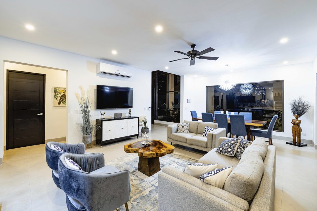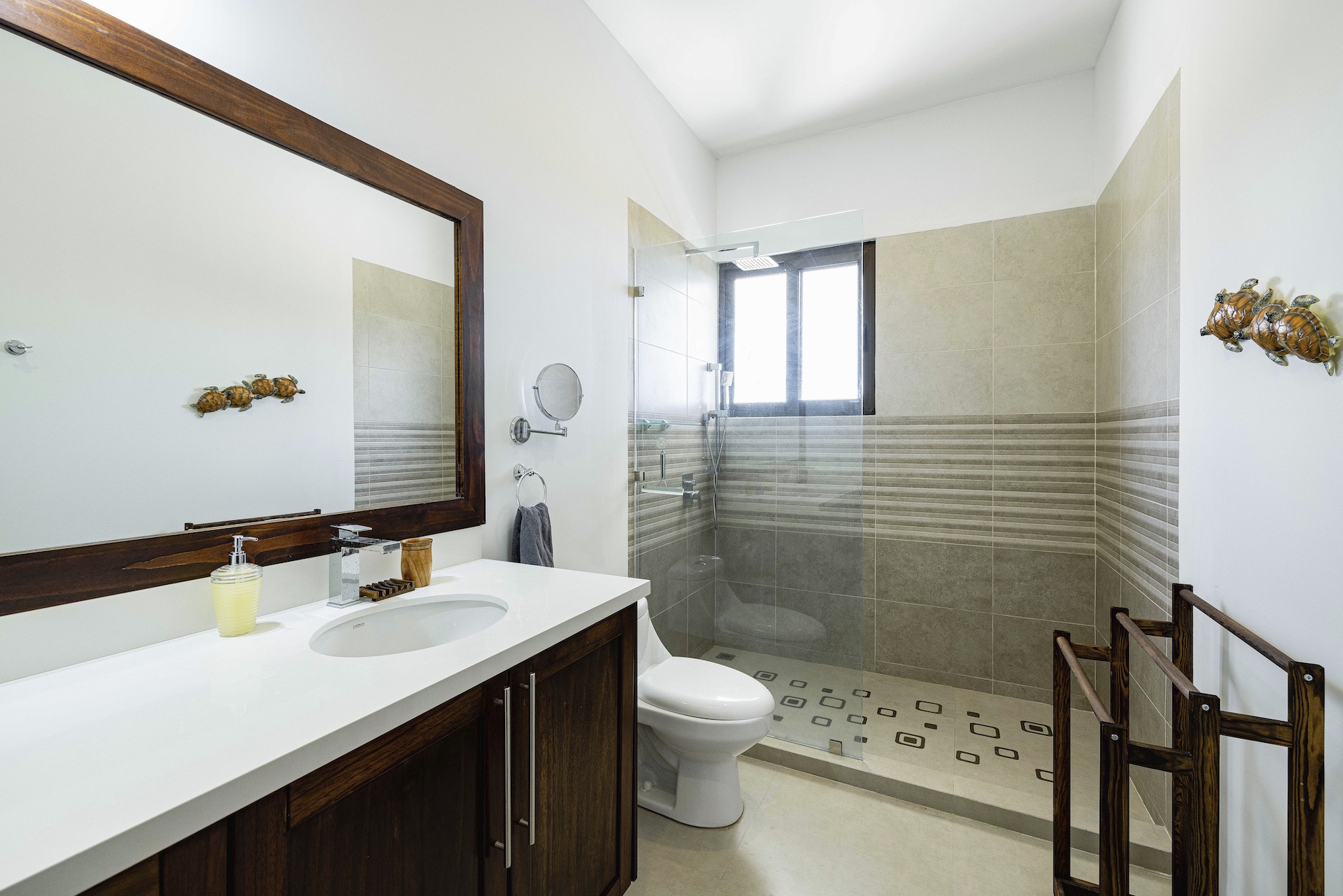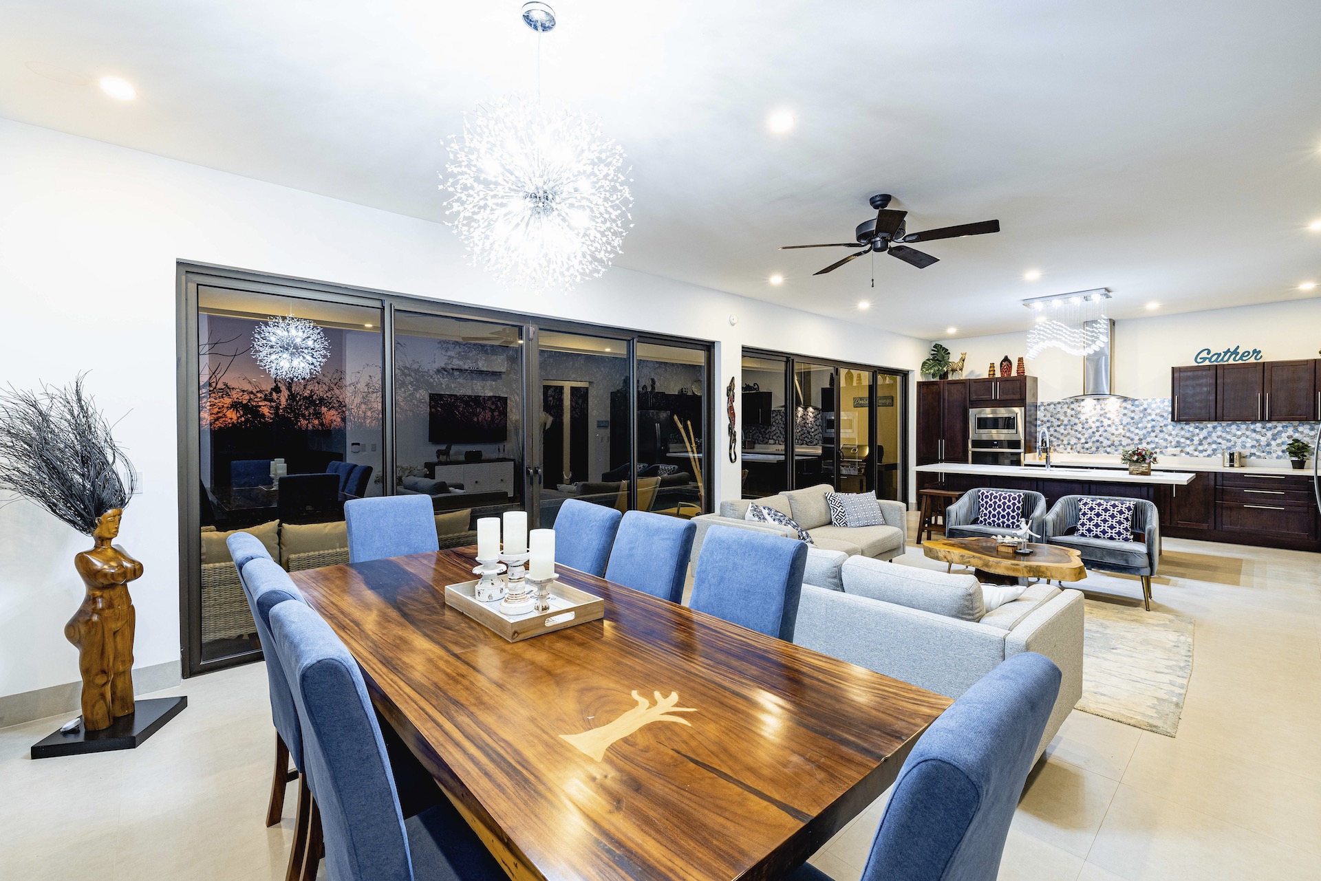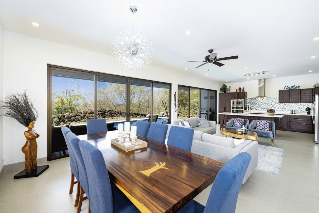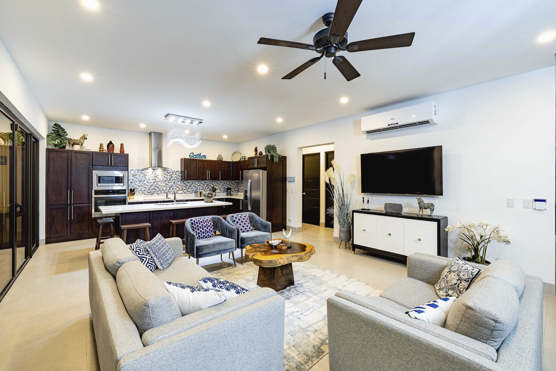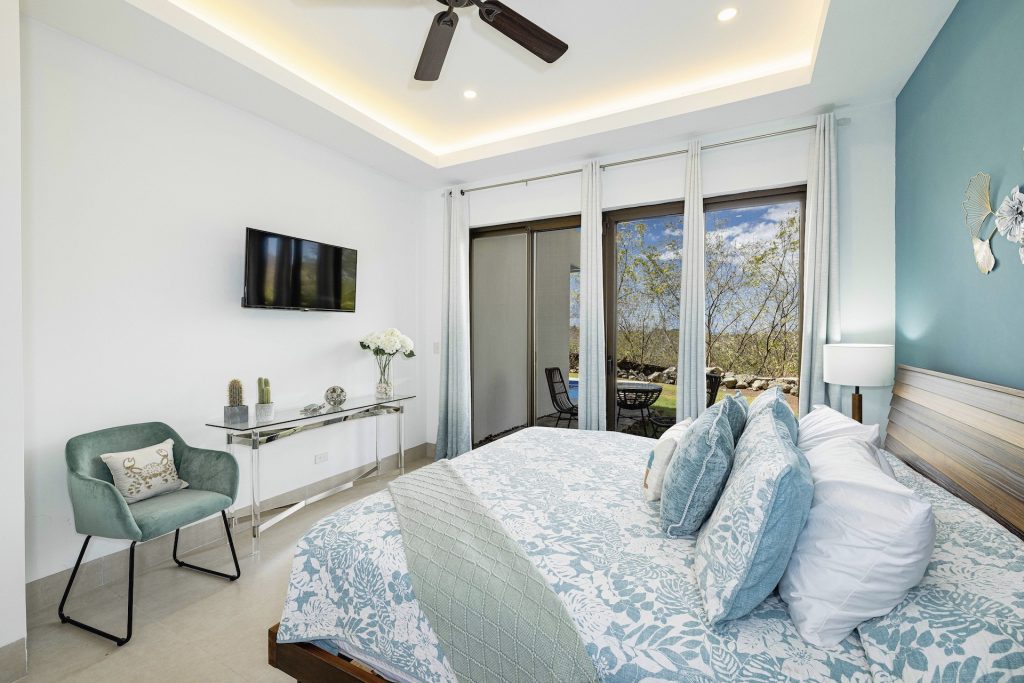 Experience refined coastal living in this brand-new ocean view estate inside the coveted Monte Bello in Playa Hermosa, offering 3 bedrooms, 3.5 baths, a huge private pool, attached 2-car garage, and an impressive 3,628 total square feet of thoughtfully designed space. Privately positioned on an estate-sized lot of nearly half an acre (1,612 square meters), the home is accessed by a winding driveway framed by mature tropical trees, setting a tone of tranquility from the moment you arrive. The main level unfolds into an immense great room where living, dining, and a beautifully appointed kitchen blend seamlessly, flowing onto expansive covered terraces that embrace the large rectangular pool, BBQ area, and private yard—perfect for effortless indoor-outdoor entertaining. A spacious guest suite with ensuite bath, private terrace, and direct pool access anchors the first floor, complemented by a half bath and laundry room. Upstairs, every room enjoys captivating ocean views, including two massive master suites that open onto a sweeping covered terrace, plus an additional bonus terrace above the garage ideal for sunset lounging. Built and furnished with exceptional attention to detail, the residence showcases porcelain tile flooring throughout, quartz countertops, custom hardwood doors and cabinetry, and a classic ceramic tile roof. With 2,302 square feet of air-conditioned interior living space, owners enjoy rock-solid infrastructure, low density surroundings, and close proximity to the sands of Playa Hermosa Beach, the conveniences of Liberia and its international airport, as well as dining, nightlife, and watersports—while still savoring the serenity of a private hideaway. Whether envisioned as a luxurious vacation retreat, full-time residence, or income-producing investment, this is the dream home you have been planning—make your move to paradise today.