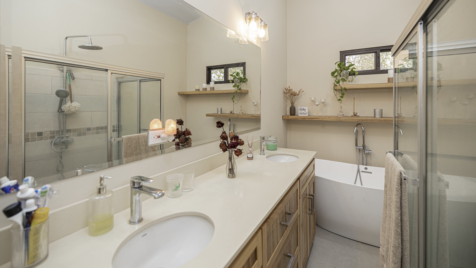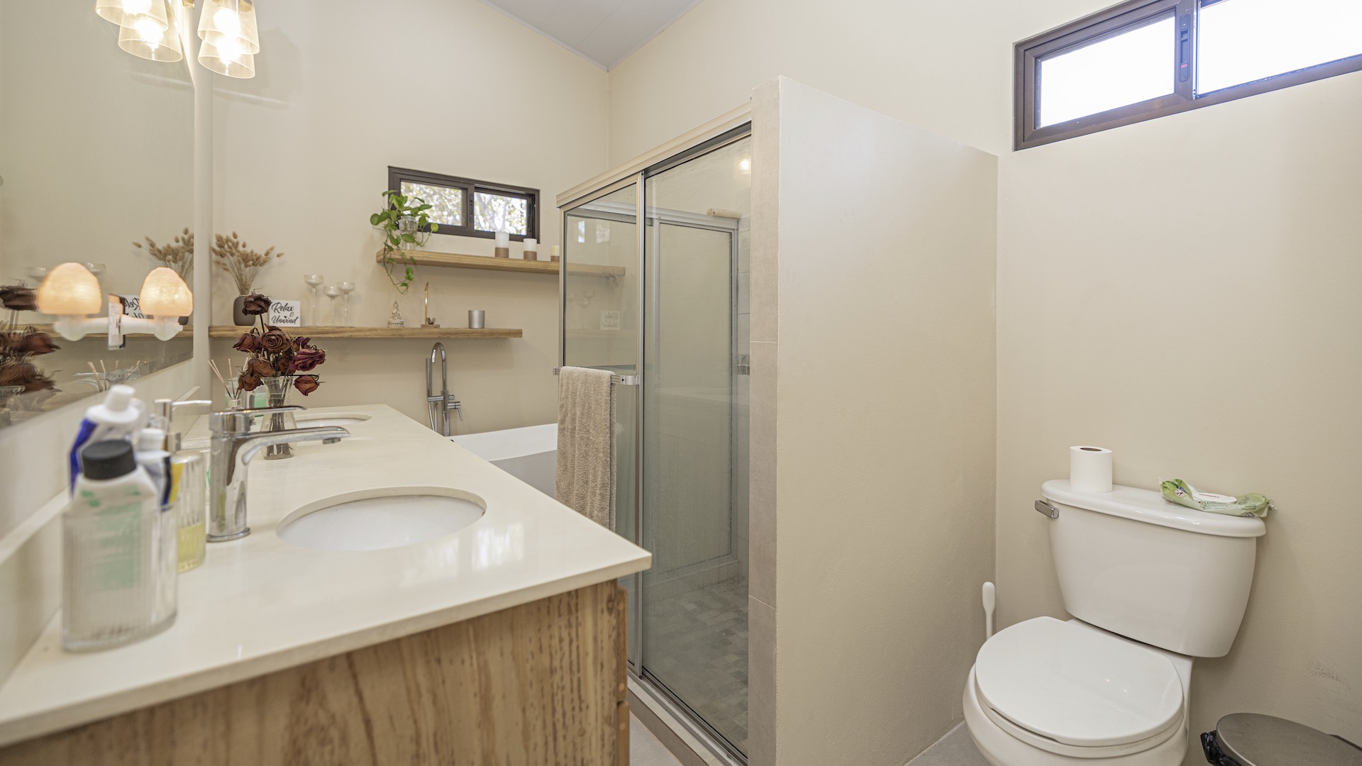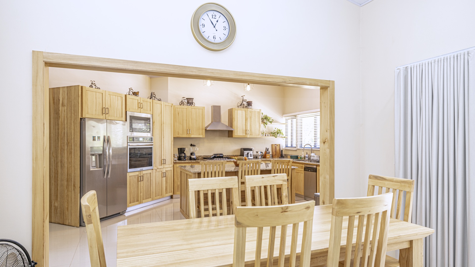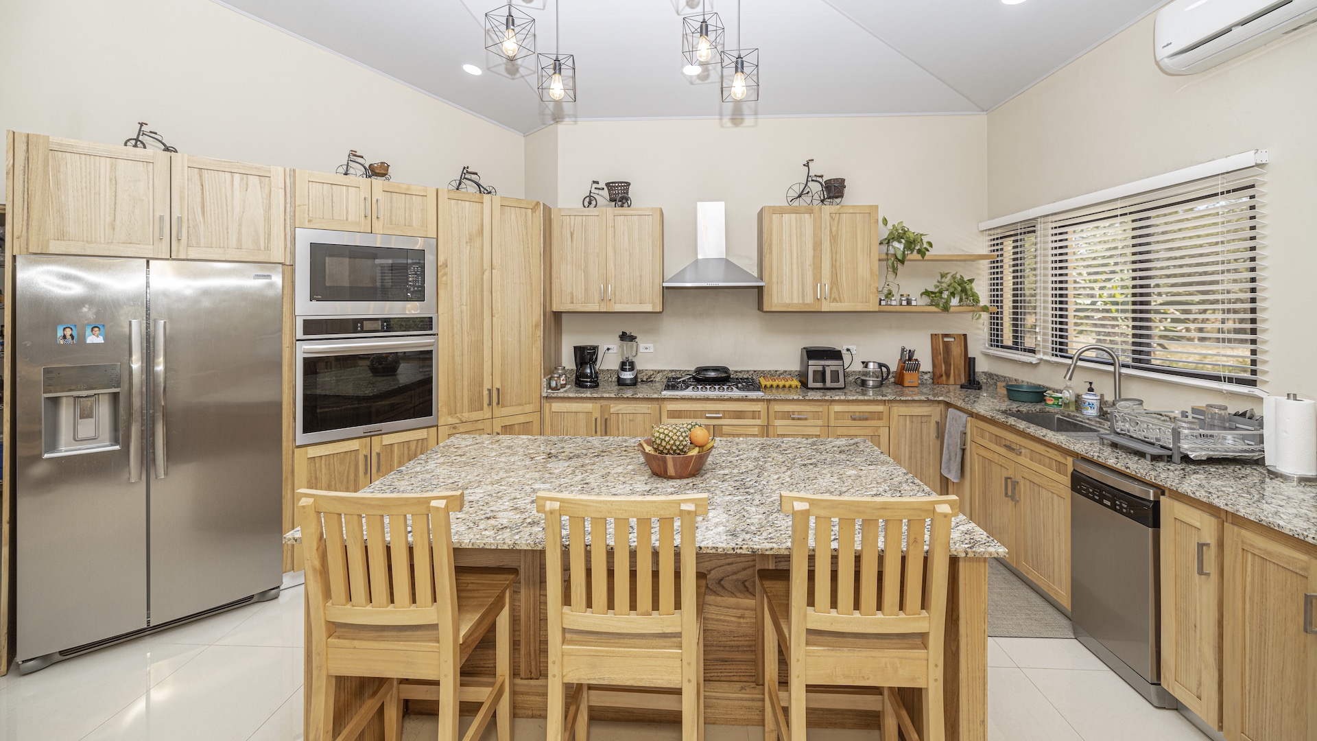 Set within the tranquil and private Vista Ridge community near Playas del Coco, this beautifully designed one-level estate home offers 3 bedrooms and 3.5 baths across 2,900 square feet including the attached garage and expansive covered terraces, all positioned on an estate-sized 6,309 square meter (1.5 acre) mostly flat lot with nature and mountain views and abundant irrigation from a private artesian well. The light and airy interior showcases light-colored custom wood cabinetry, a large chef’s kitchen with a huge center island and oversized pantry, and defined yet seamlessly connected dining and living spaces that flow effortlessly to the spacious covered terrace, oversized pool, and generous yard—perfect for indoor-outdoor living. The main suite enjoys direct access to the pool terrace, a private office, and a spa-inspired bath with separate shower and freestanding soaking tub, while the two additional bedrooms each feature their own ensuite bathrooms, offering privacy and comfort for family or guests. A convenient powder room sits just off the garage entry and living area. An attached garage with large laundry room, plus an additional carport with secure storage, provide ample functionality. Located within a low-density community featuring a golf course and minimum lot sizes of 5,000 square meters, this property offers peaceful country living just minutes from the restaurants, shopping, and services of Playas del Coco, approximately 25 minutes to Daniel Oduber Quirós International Airport, and a short drive to the beaches, healthcare, and conveniences of the Papagayo region—an exceptional opportunity to create your own private paradise.