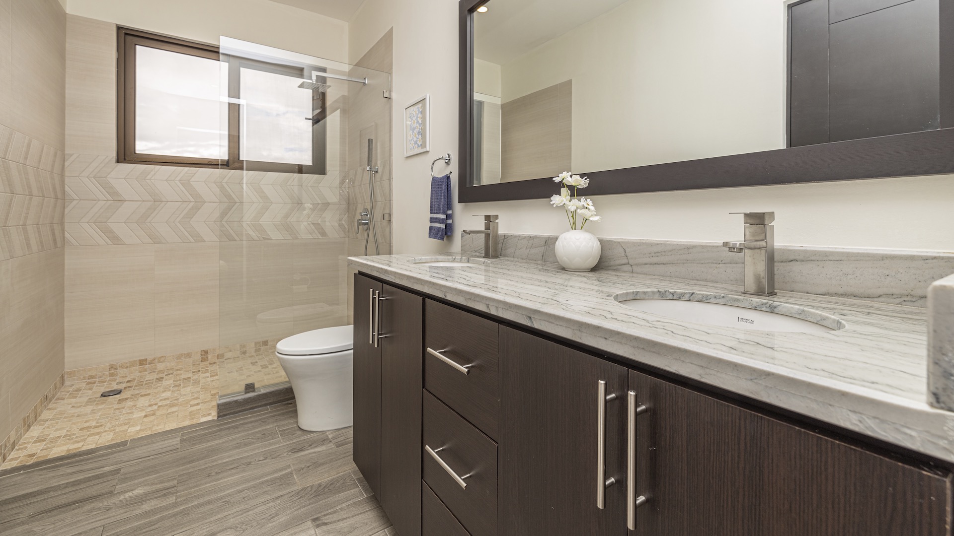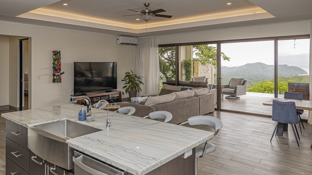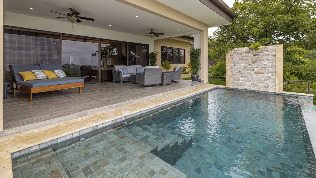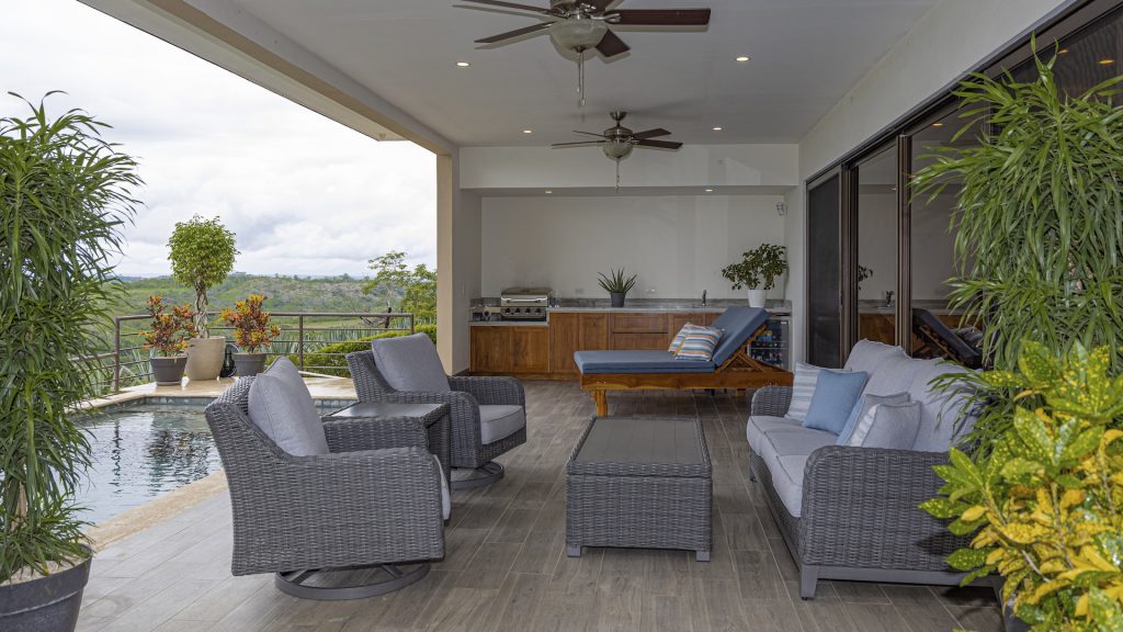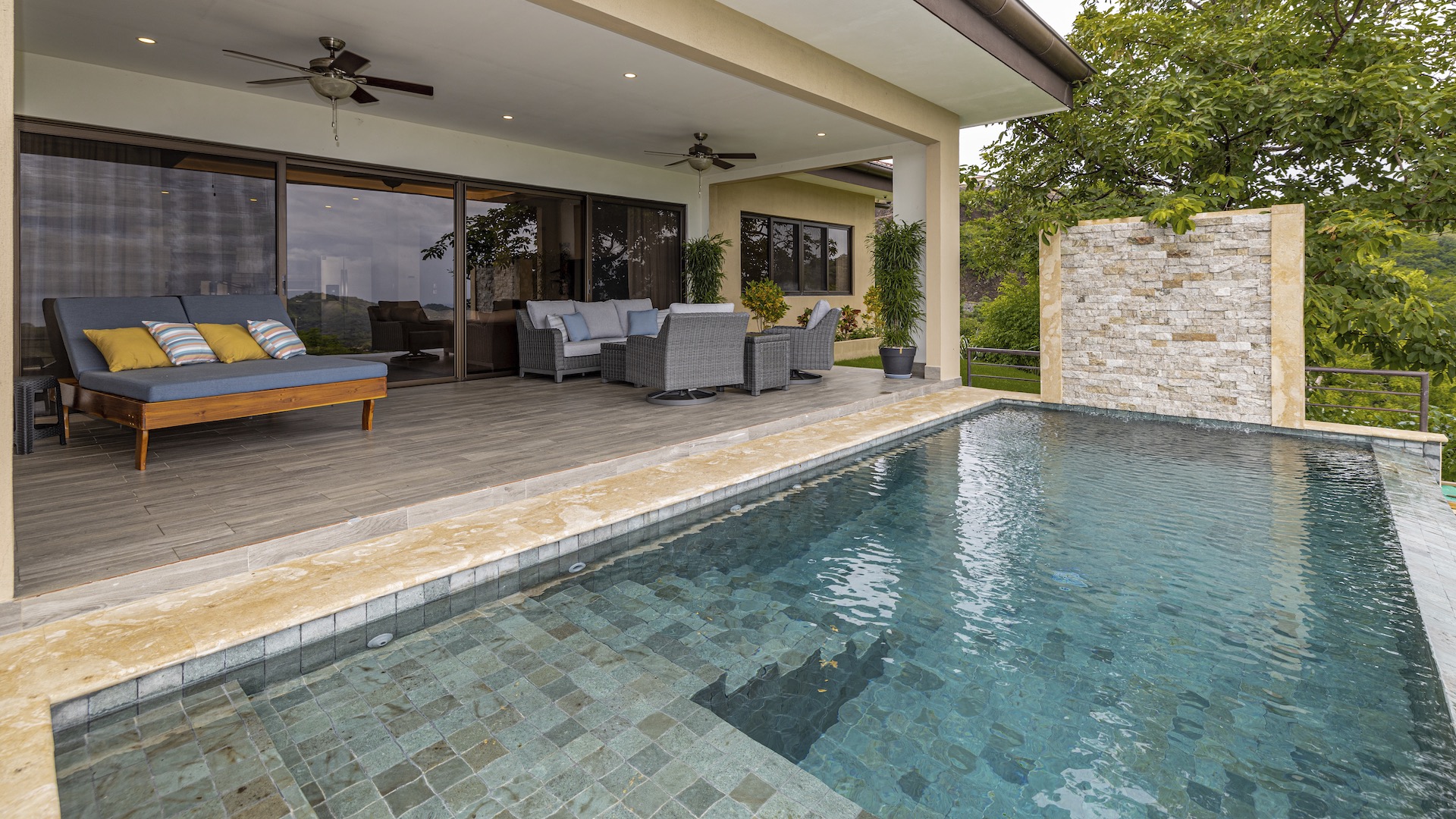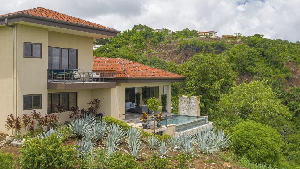Extremely Private Ocean View Home with Extensive Upgrades in Ladera del Mar. Casa Punta Ladera was already a stunning ocean view home with unbroken privacy but the current owners have taken it to a whole other level with numerous upgrades to an already spectacular home. This ocean view home sits on a 5,044 square meter panoramic ocean view lot overlooking Playas del Coco and measures 2,302 square feet inside air and has a total of 3,217 square feet including huge covered terraces and a 2 car attached Garage. The main floor houses a large great room with the living room, dining area, and kitchen all with great ocean views opening out onto the large covered terrace and huge ocean view infinity edge pool, wet bar and built in BBQ. On the main floor are two large and private bedrooms with ensuite bathrooms, as well as an ample laundry room, and a half bathroom. The entire second floor is a large, private ocean view bedroom with ensuite bathroom and a large private covered ocean view balcony. Fitted with stainless steel appliances, tile floors, granite counter tops, custom cabinetry, hardwood doors, and a ceramic tile roof, the home comes completely furnished with newly purchased furnishings. The appliances are all in brand new condition, the washer and dryer are brand new, and all toilets have been replaced. The interior of the house was completely repainted with 2 coats of high quality Sherwin Williams paint, and all the interior and exterior floor tile grout was cleaned a regrouted. The exterior of the house has new stucco and was completely painted. The roof tiles were repaired and waterproofed, new flashing installed, and the downspout system improved. The pool terrace wet bar now has custom Costa Rican teak cabinets. The pool was resurfaced with Indonesian Sukabumi natural stone tiles, a natural stone waterfall was added, along with a pool heater. The pool deck has newly laid Dominican White Coral Stone. A water softener and reverse osmosis drinkable water system was added along with a voltage suppressor in the main electrical center. The septic system was upgraded with new large volume cement tank and all new drainage pipes. This spectacular ocean view home is surrounded by million dollar homes inside the upscale Ladera del Mar gated community where you enjoy serene privacy and are just 25 minutes to the Guanacaste International Airport (LIR) and a short drive to various beaches. Only 10 minutes to the town center of Playas del Coco where you enjoy all the watersports, shopping, restaurants, nightlife, healthcare, and services of the famed Papagayo area.
