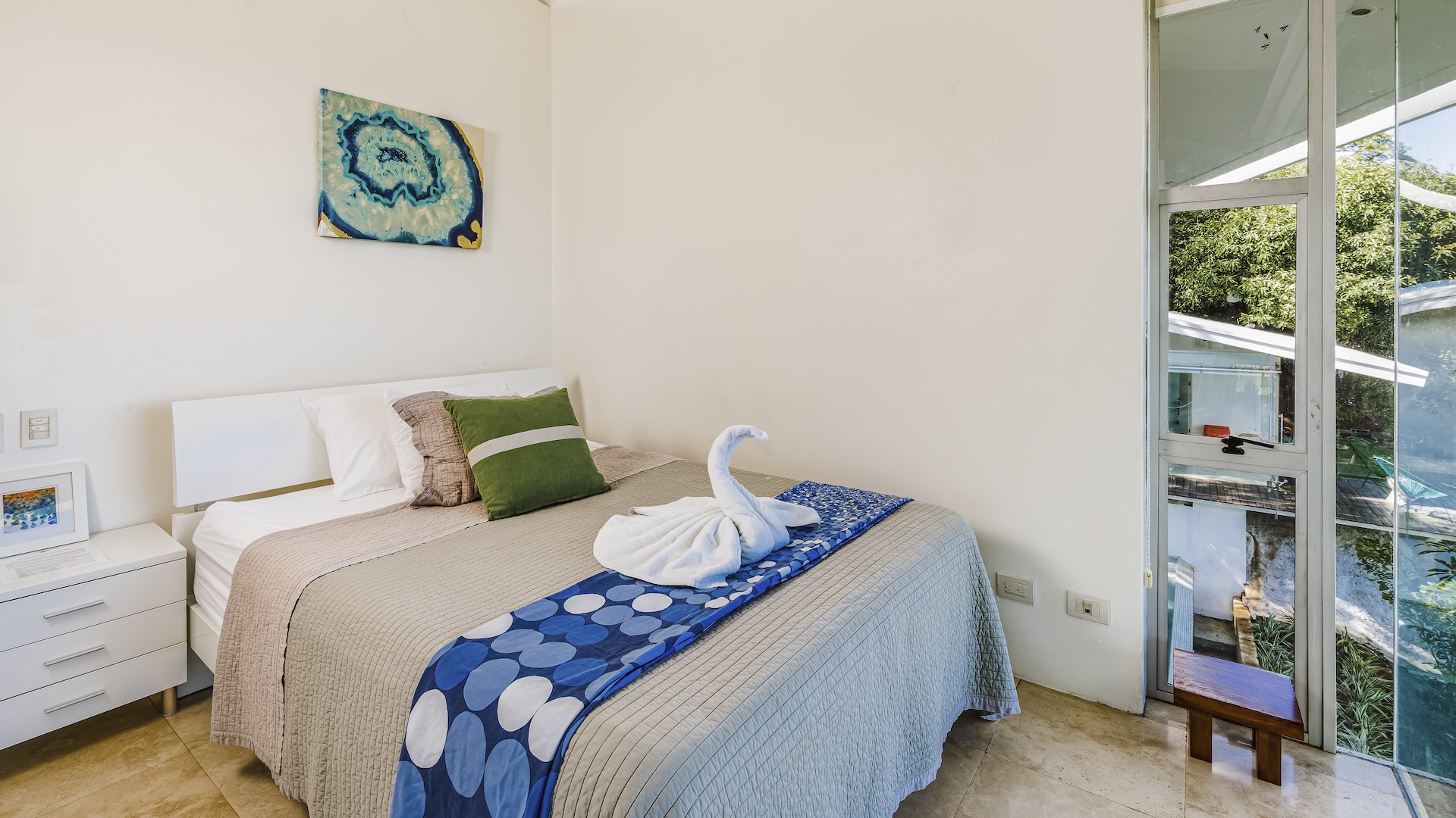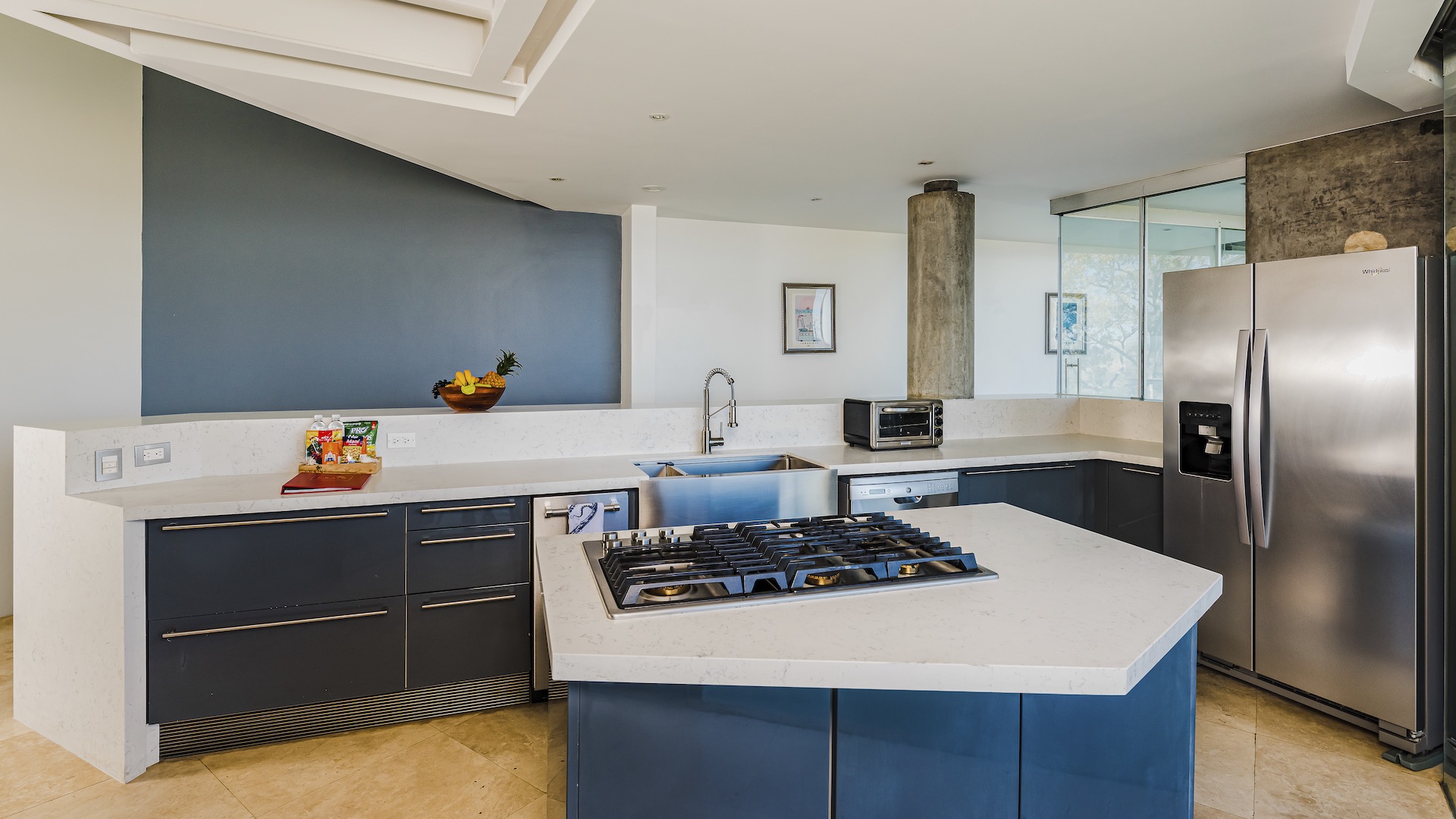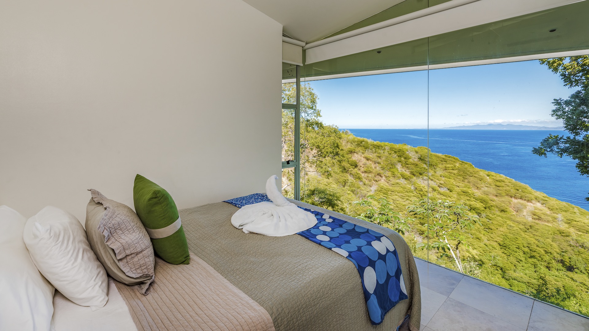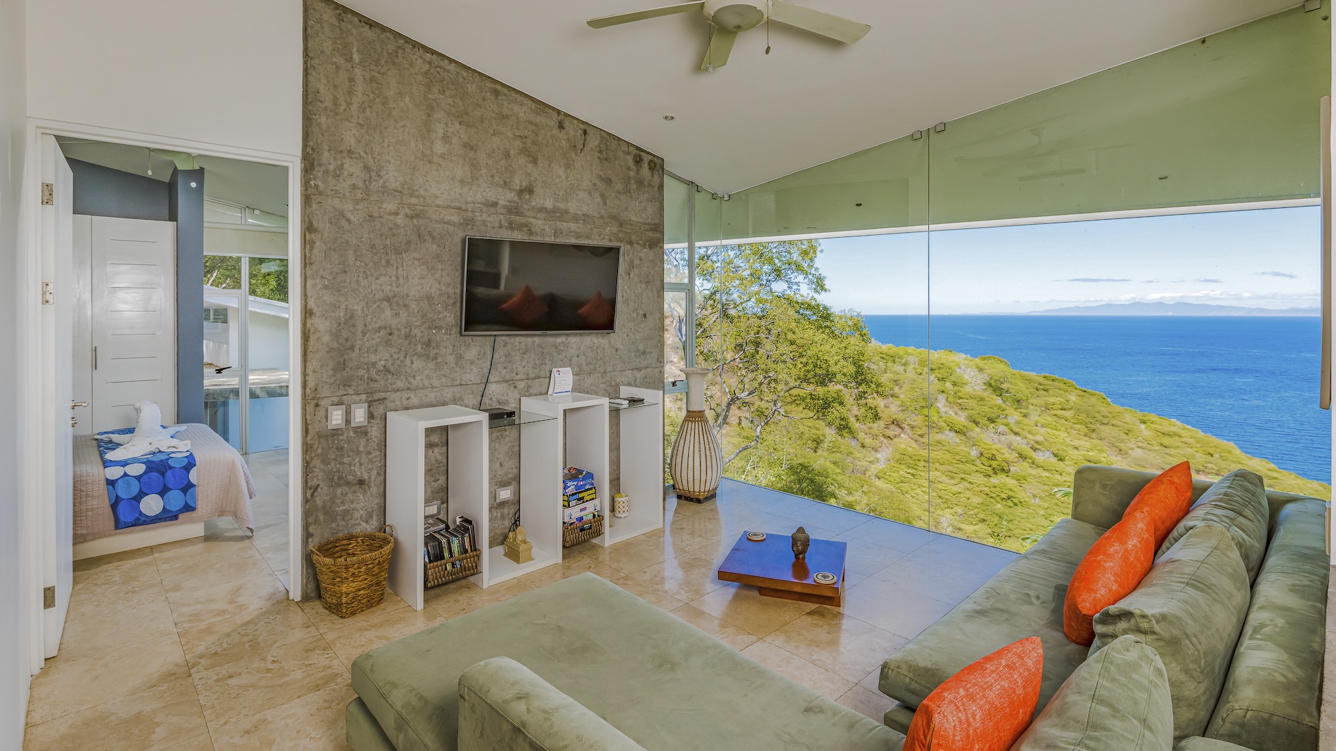 Great Ocean View 4 Bedroom, 4.5 Bathroom Home With Huge Terraces and Infinity Pool. Casa Ron Ron is a one-of-a-kind home perched on the hillside overlooking a secluded bay in Playa Ocotal. It is named after the Ron Ron tree that is integrated into the cantilevered deck providing a stunning ocean view overlooking the Pacific Ocean. This modern home is a 4,500+ square feet mix of glass and concrete designed by the famed Costa Rican architect Victor Cañas. The entire side of the home is a wall of windows, both on the lower and upper levels, giving you sweeping ocean and nature views. Enter into the open living/dining area with access to the grand deck from each space. The sunken living space has an L-shaped dining table that accommodates 8 people, or dine al fresco on the large patio. You will not mind cooking with the pool and ocean views offered in the large kitchen. The kitchen features a 6-burner gas stove, oven, microwave, dishwasher and has a large breakfast bar. There is also a gas BBQ in the pool bar area. The main floor has a large laundry room with 2 washers and 2 dryers, plus a 2-piece bathroom. Past the kitchen is a unique wooden bridge that crosses the pool and connects the main home to the one-bedroom casita. This casita has a King bed, large closet, and bathroom with an ocean view shower. The casita has a beautiful patio overlooking the pool and the ocean. Back inside, head upstairs to the principal bedroom for breathtaking ocean views from the massive glass walls. The spacious bedroom features an ensuite bathroom with a large shower, double sinks, a large closet, and a standalone soaker tub with sightlines to the ocean. Also on the second floor are the third and fourth bedrooms, each with ocean-facing glass walls and private ensuite bathrooms. There is also a sitting area with TV and beautiful ocean views. Outside there is a large deck with lounge chairs, an L-shaped sofa, and a large infinity-edge pool with swim-up bar seating and a waterfall feature. All of this with the stunning Pacific Ocean as the backdrop. There is also a carport with space for 2 vehicles and an on-site caretaker. Perfect as a luxury vacation rental villa and as a vacation oasis for you and your family. Located in Ocotal Beach, an exclusive enclave of upscale homes. A short drive to Playa Ocotal Beach and just 30 minutes to the Liberia International Airport and just minutes to various beaches, private hospitals, services, restaurants, nightlife and watersports of the area. Move in to this luxurious masterpiece today.