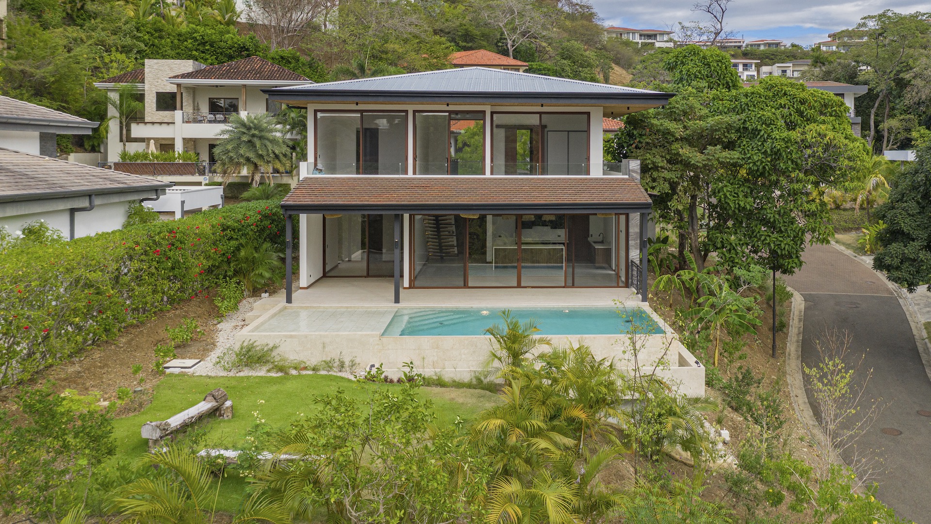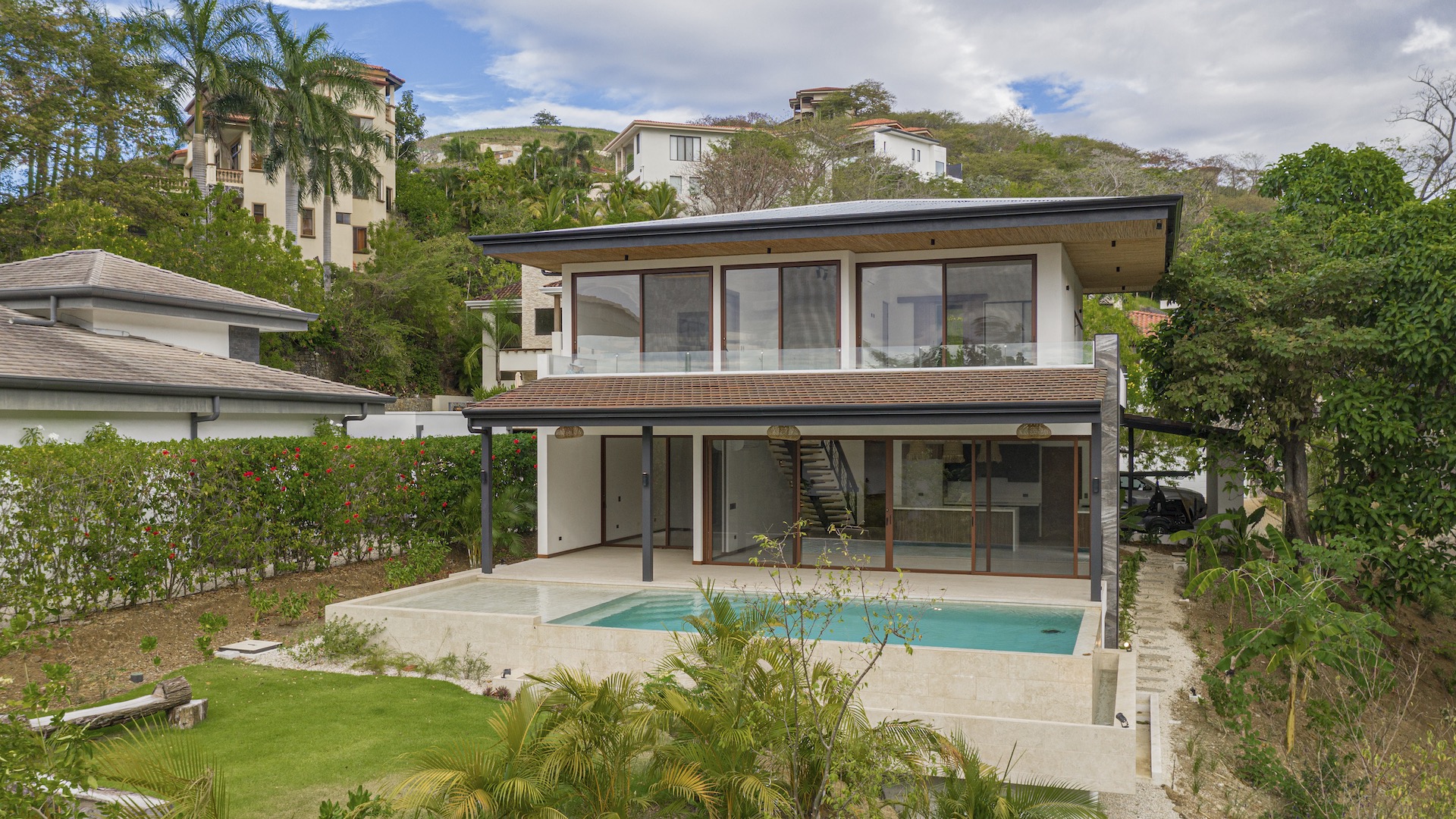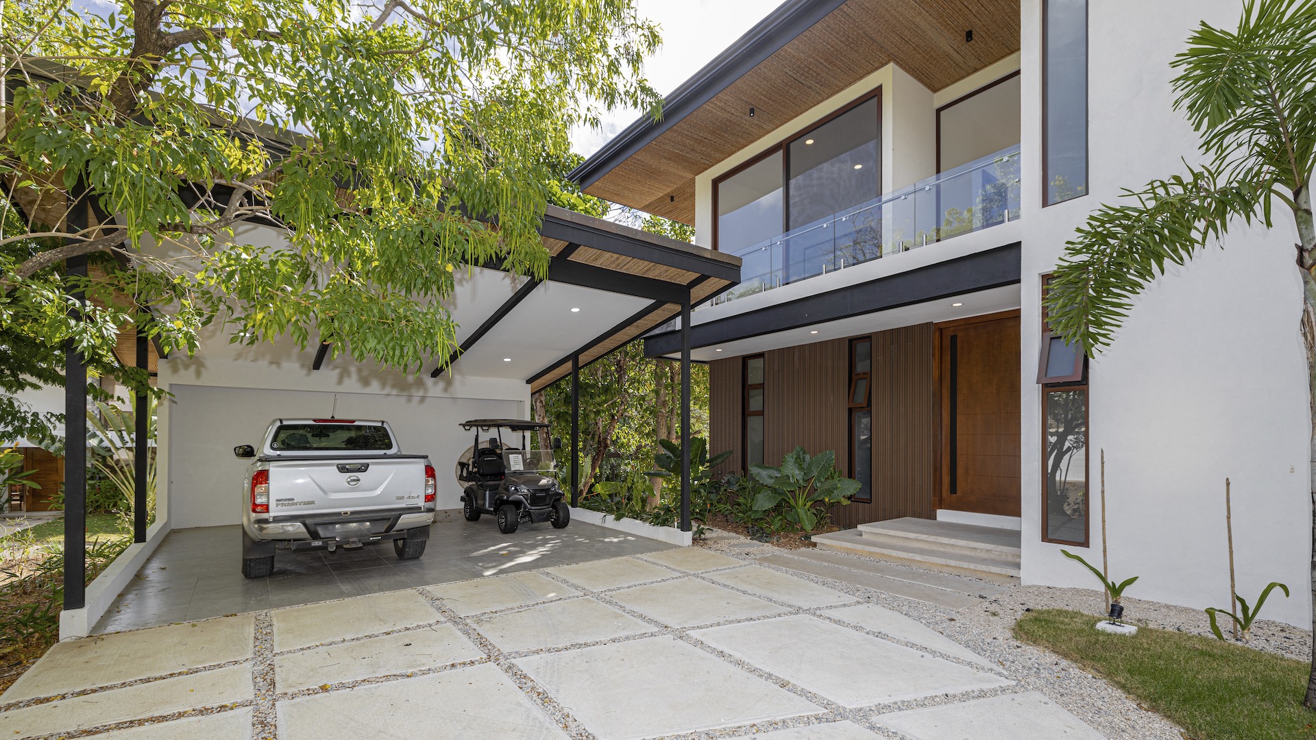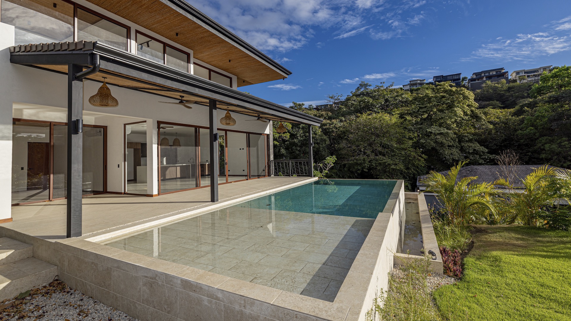 Completed in 2025, this 4,145 sq ft luxury residence sits on a generous 914 m² (¼-acre) lot and offers four bedrooms and 3.5 baths designed for refined coastal living, with a peek-a-boo ocean view from the second floor, an infinity pool framed by a spacious terrace, and expansive, private landscaped front and back yards. The lower level features a large detached carport , while the main living level showcases a stunning great room with floor-to-ceiling sliding glass doors that seamlessly connect the modern kitchen, living, and dining areas to the outdoors, complemented by a large pantry, a powder room off the entrance hall, and a main-level bedroom with ensuite bath. Upstairs, the generous primary suite opens to its own terrace and features an elegant ensuite with tub, shower, and commode, while two additional bedrooms share a bath and each enjoy walk-out terraces, along with a cozy office or library nook at the top of the stairs. Owners enjoy full access to Pacifico’s exceptional amenities, including the exclusive Beach Club with direct access to the sandy beaches of Playas del Coco, oceanfront dining, resort-style pools and lounge areas, as well as a fitness center, tennis and pickleball courts, playground, and scenic walking trails, all ideally located just minutes from multiple beach towns, shopping, dining, nightlife, watersports, medical and dental services, and only 25 minutes from Guanacaste International Airport (LIR), completing a truly elevated coastal lifestyle.