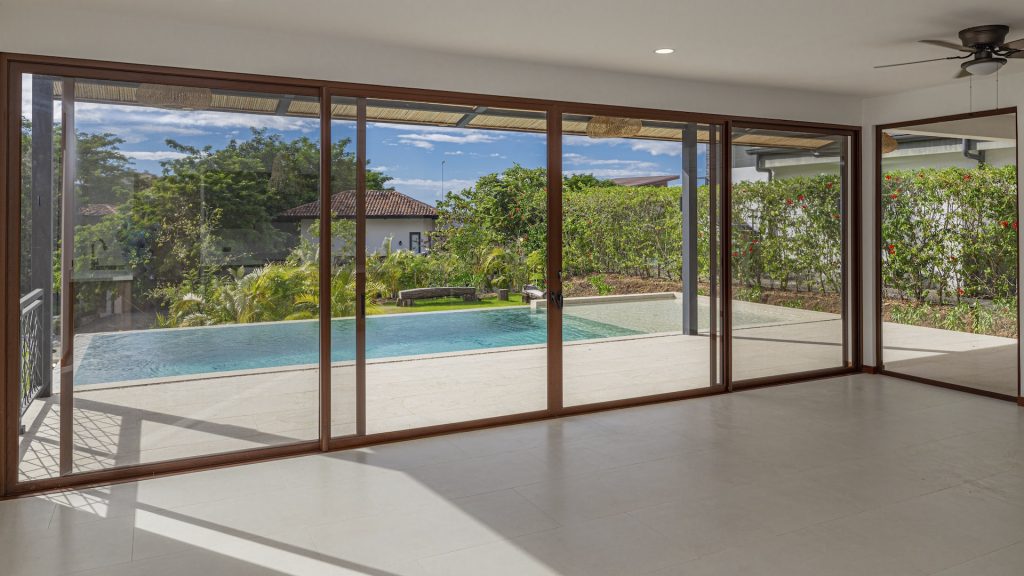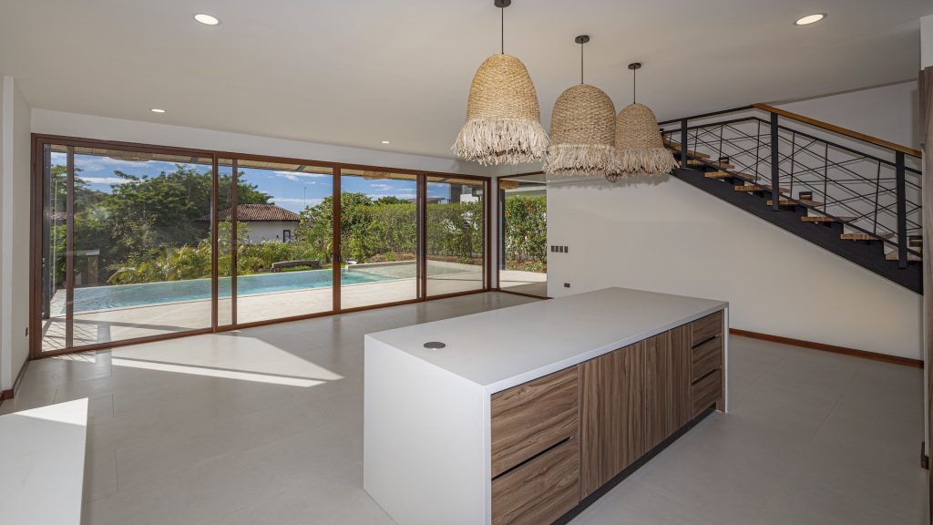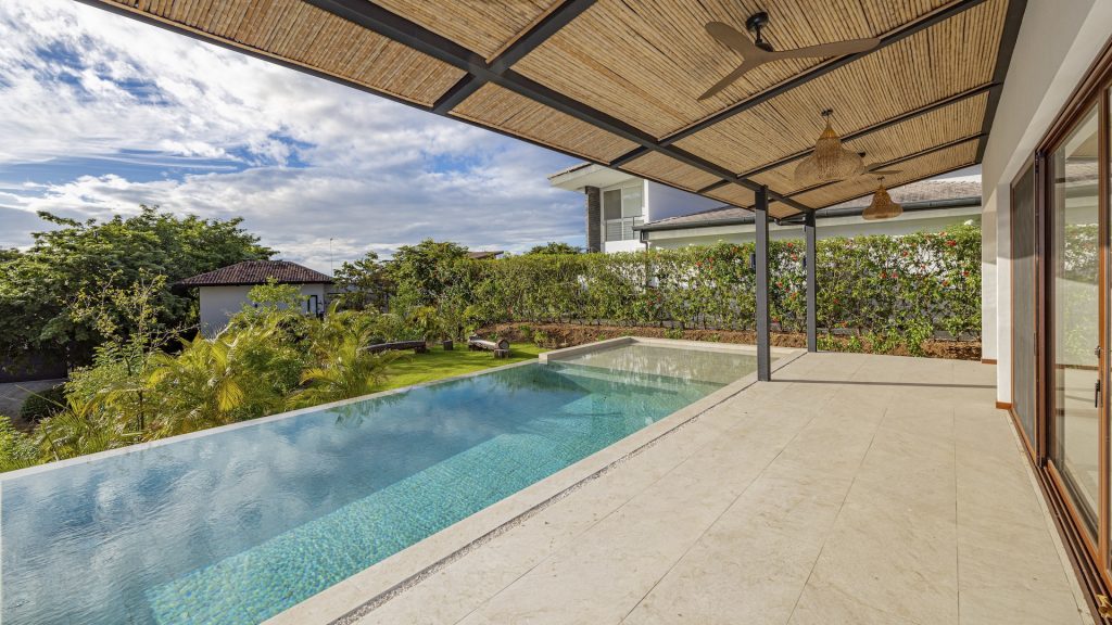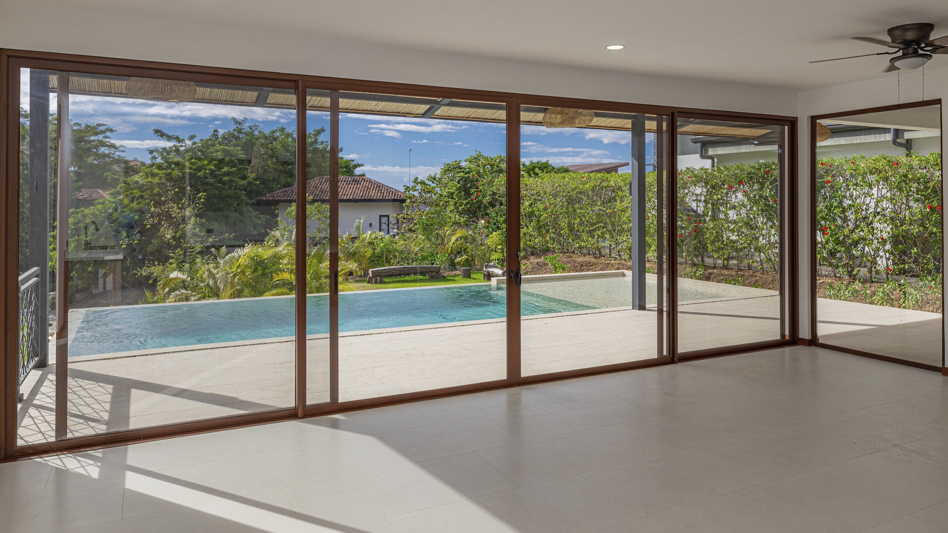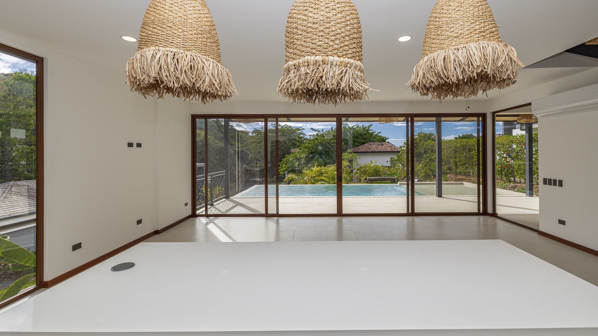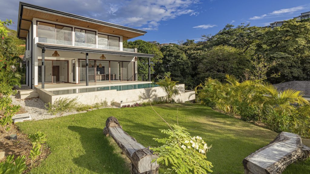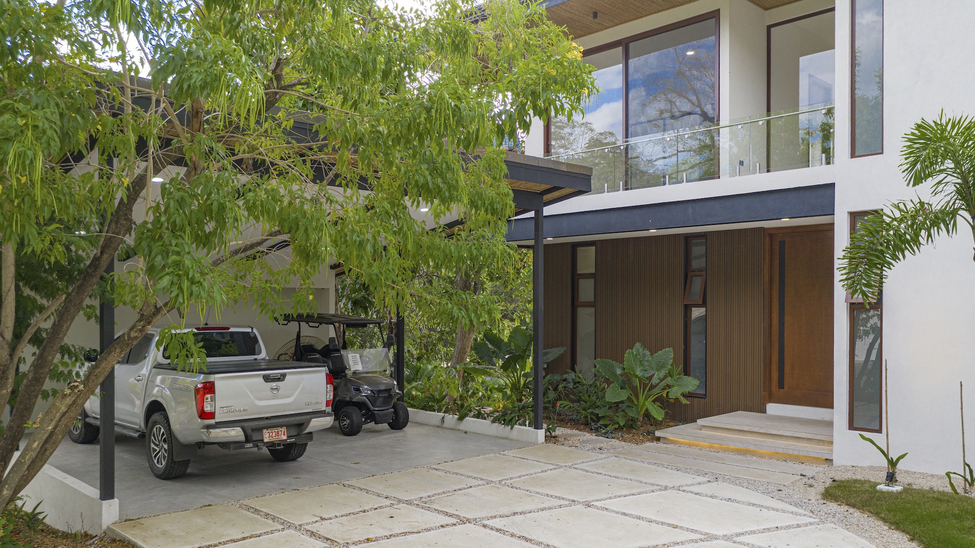 Completed in 2025, this 4,145 sq ft luxury residence sits on a generous 914 m² (¼-acre) lot and offers four bedrooms and 3.5 baths designed for refined coastal living, with a peek-a-boo ocean view from the second floor, an infinity pool framed by a spacious terrace, and expansive, private landscaped front and back yards. The lower level features a large detached carport , while the main living level showcases a stunning great room with floor-to-ceiling sliding glass doors that seamlessly connect the modern kitchen, living, and dining areas to the outdoors, complemented by a large pantry, a powder room off the entrance hall, and a main-level bedroom with ensuite bath. Upstairs, the generous primary suite opens to its own terrace and features an elegant ensuite with tub, shower, and commode, while two additional bedrooms share a bath and each enjoy walk-out terraces, along with a cozy office or library nook at the top of the stairs. Owners enjoy full access to Pacifico’s exceptional amenities, including the exclusive Beach Club with direct access to the sandy beaches of Playas del Coco, oceanfront dining, resort-style pools and lounge areas, as well as a fitness center, tennis and pickleball courts, playground, and scenic walking trails, all ideally located just minutes from multiple beach towns, shopping, dining, nightlife, watersports, medical and dental services, and only 25 minutes from Guanacaste International Airport (LIR), completing a truly elevated coastal lifestyle.