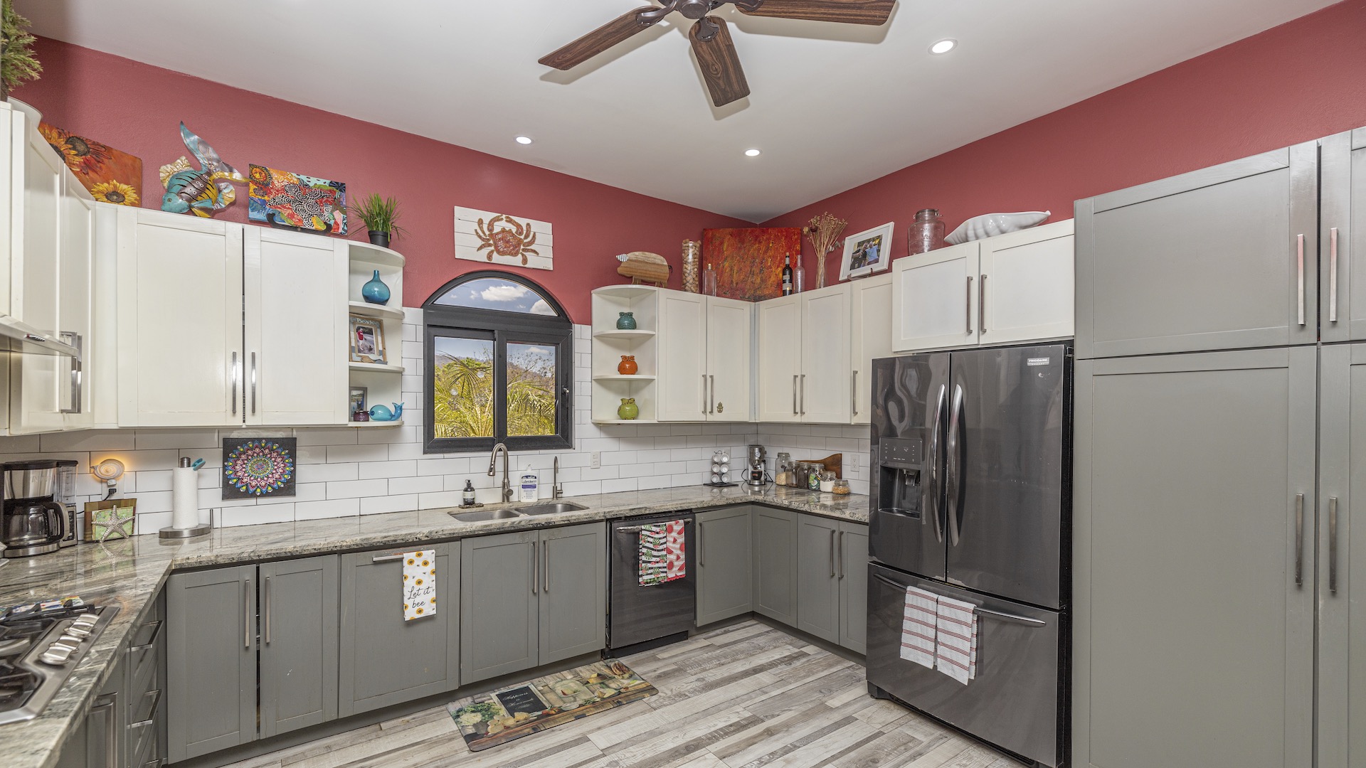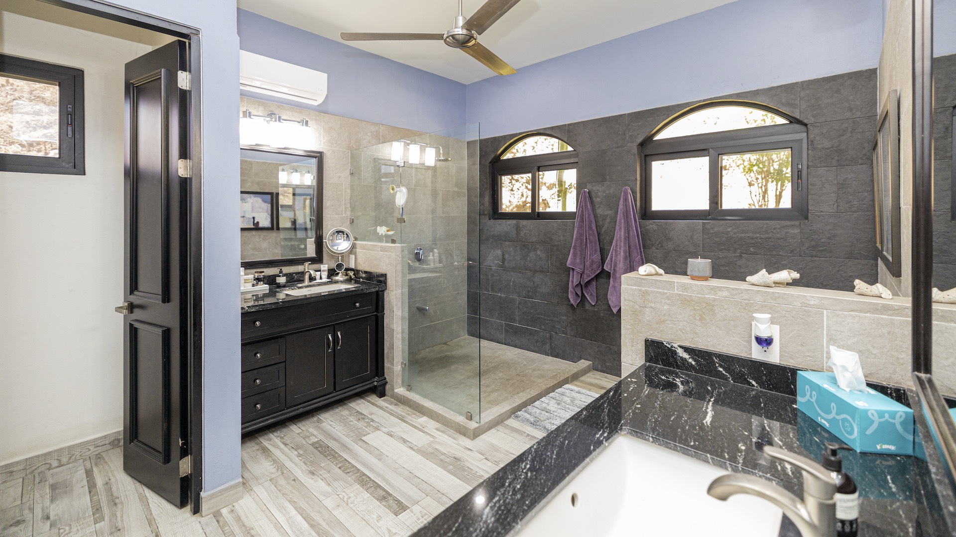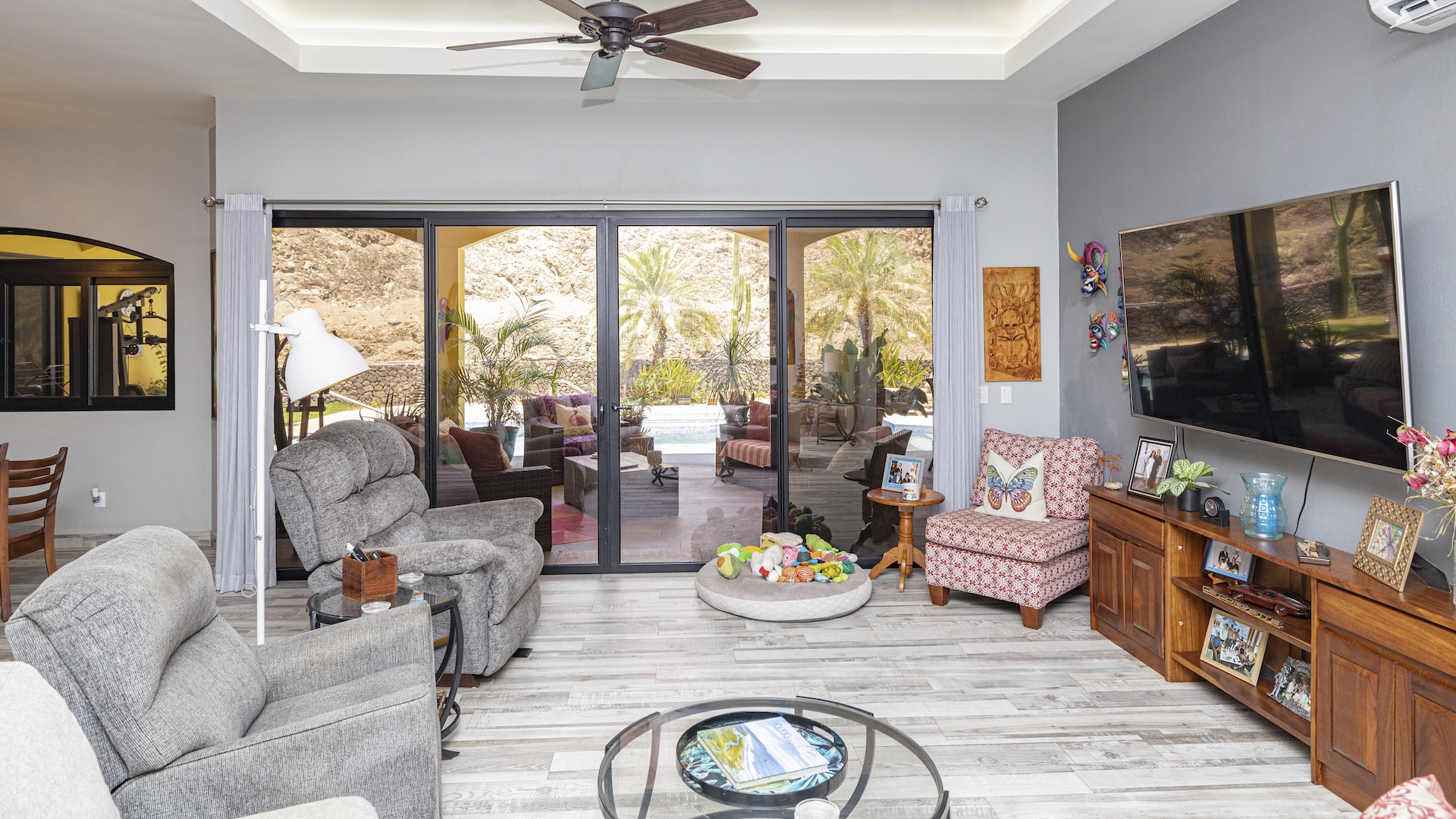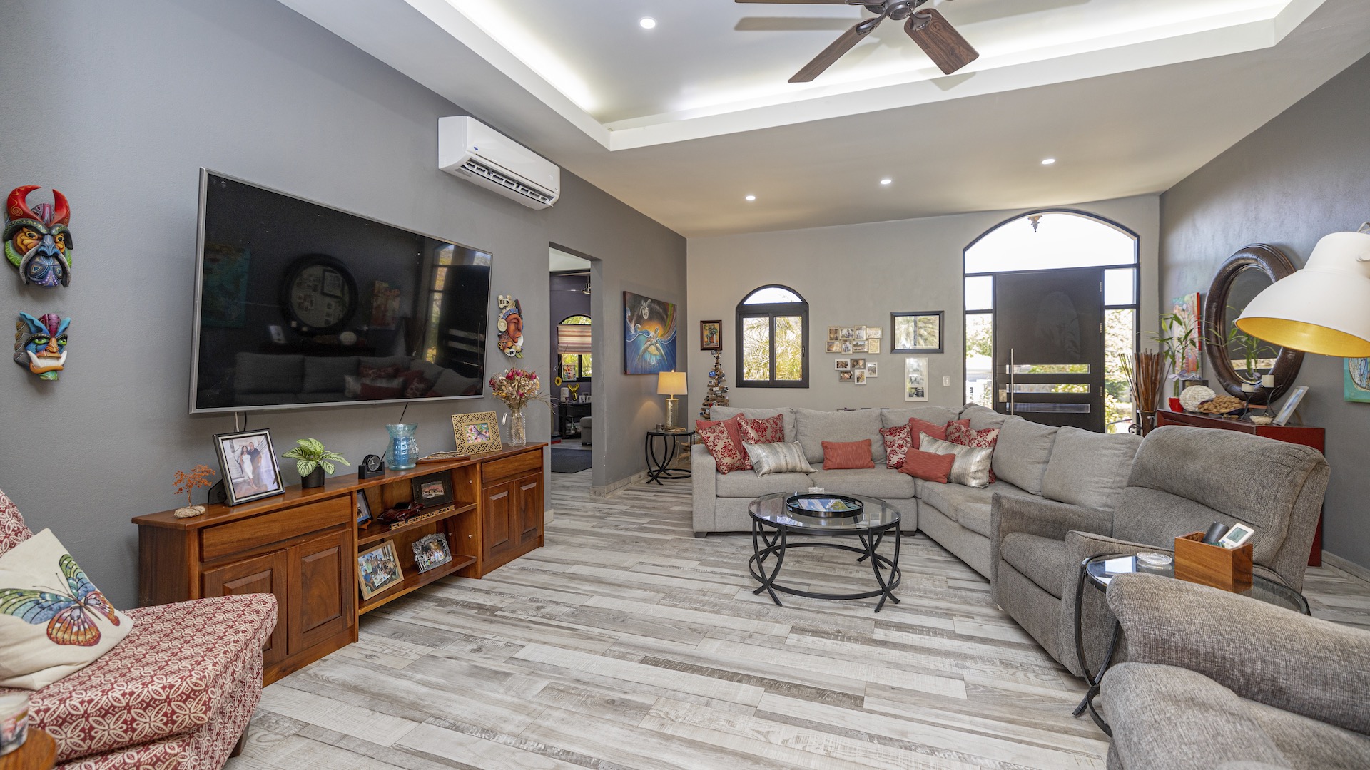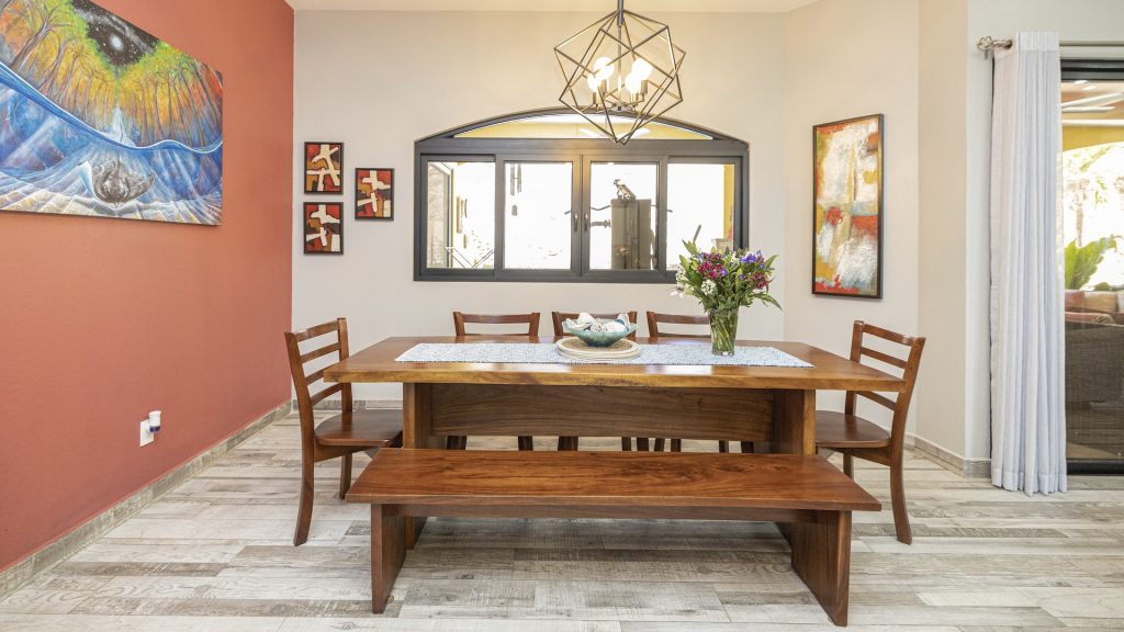 Tucked at the end of a private cul-de-sac, this beautifully designed one level, 3-bedroom, 2-bath residence offers 2,750 total square feet, including 1,700 air-conditioned square feet, an attached two-car garage, and an additional two-car carport, creating a comfortable and well-appointed coastal retreat. The home features a spacious great room with distinct living, dining, and kitchen areas, highlighted by a large kitchen with sit-up bar, all seamlessly flowing onto an expansive covered terrace that overlooks an exceptionally private pool and sunning area—ideal for relaxed indoor-outdoor living. The covered terrace is thoughtfully appointed with a BBQ, wet bar, and mini fridge, as well as a large outdoor living room with a big screen TV and a dedicated workout zone, elevating both entertaining and everyday enjoyment. A generous laundry room is conveniently positioned off the kitchen and garage entrance for added functionality. Perched above the home, a bonus ocean view pavilion provides a tranquil setting to take in coastal breezes and sunset views. The thoughtfully designed layout places the expansive primary suite on one side of the home, complete with direct pool terrace access, a spa-like bathroom with freestanding tub, separate shower, dual vanities, private commode room, and ample closet space, while two guest bedrooms on the opposite side share a full bathroom, offering both comfort and privacy. Ideally located just minutes from Playas del Coco and surrounding coastal towns, the home provides easy access to shopping, dining, nightlife, watersports, and medical services, and is only 25 minutes from Guanacaste International Airport (LIR). Ownership also includes access to the exceptional amenities of Pacifico, including the exclusive beach club with oceanfront dining, tennis and pickleball courts, a fitness center, and resort-style pools, completing a truly elevated coastal lifestyle.