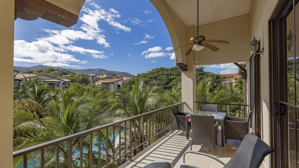 Beautifully Furnished and Maintained Top Floor 2 Bedroom Condo in Lifestyle Section. This third-floor condo enjoys equal measures of shade and sun and enjoys a great view out over the impeccable manicured grounds from the oversized terrace. This sumptuously furnished, impeccably maintained and fully equipped 2 Bedroom, 2 Bathroom condo is set up nicely to earn rental income or provide a perfect family or romantic retreat. Featuring a large covered terrace that is accessed from both the Living Room and the Master Bedroom and includes quartz and marble counter tops, ceramic tile floors and stainless-steel appliances. Set around the Lifestyle Activity Pool you can take full advantage of all the amenities Pacifico has to offer including the Beach Club Bar and Restaurant, Tennis, Pickleball, and Sport courts and the Poolside Bar and Grill. Walk to a great selection of local restaurants, a wide range of shopping options and services in Playas del Coco. Just 25 minutes to the Guanacaste International Airport (LIR).