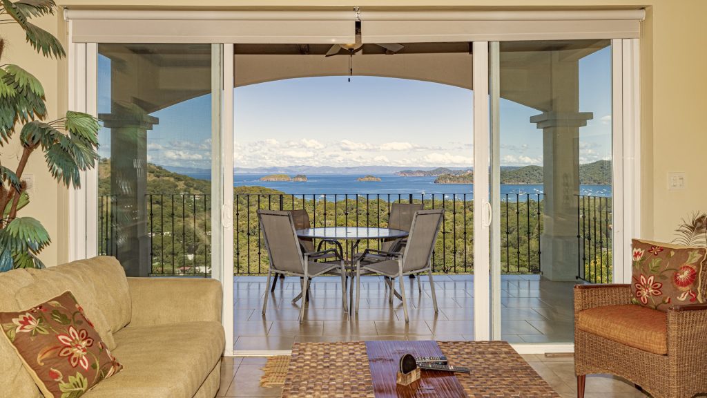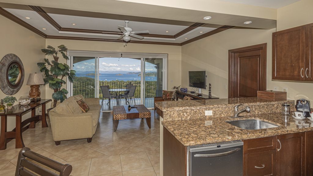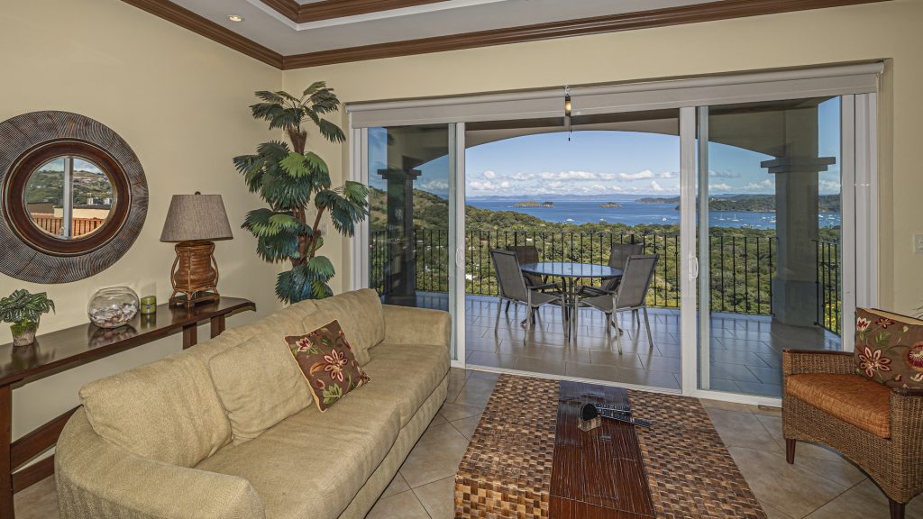 Experience elevated coastal living in this luxurious 1,575 sq. ft. 2-bedroom, 2.5-bathroom ocean-view condo, perfectly positioned on the third floor of the prestigious Segovia Condominiums. Offering breathtaking, unobstructed views of Playas del Coco and the Papagayo Peninsula from every room, this residence welcomes you into a spacious great room that seamlessly blends the compact yet well-appointed kitchen, dedicated dining area, and expansive living room, all opening onto a large covered terrace—the ideal spot to enjoy morning coffee, serene sunsets, or the peaceful rhythm of the coastline. Thoughtful design continues throughout, with a half bath and roomy laundry area off the entry hall, custom hardwood cabinetry, double-paned windows, granite countertops, stainless steel appliances, and sleek porcelain tile flooring. The two bedrooms are privately set on opposite sides of the living area, and each bedroom features its own private ocean-view terrace. The generous primary suite further includes oversized closets, dual vanities, a jacuzzi tub, and separate shower and commode, while the secondary bedroom also offers its own ensuite with a large shower and private commode. Residents enjoy central A/C, abundant storage, a large community ocean-view pool and jacuzzi, and ample off-street parking. As part of Coco Bay Estates, owners have access to a full suite of amenities including the exclusive Club at Coco Bay with a restaurant, fitness center, pickleball and tennis courts, paved roads, and 24/7 security. Located just minutes from the beach, town center, shopping, dining, entertainment, and watersports—and only 30 minutes from Liberia International Airport—this exceptional condo offers the perfect blend of luxury, convenience, and coastal tranquility.