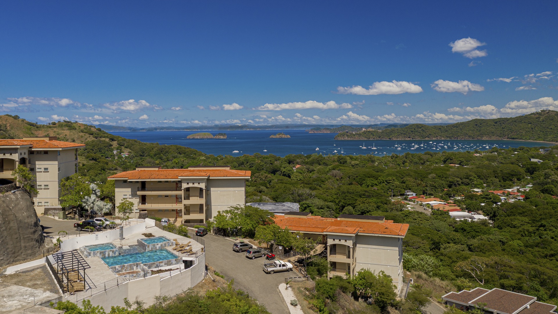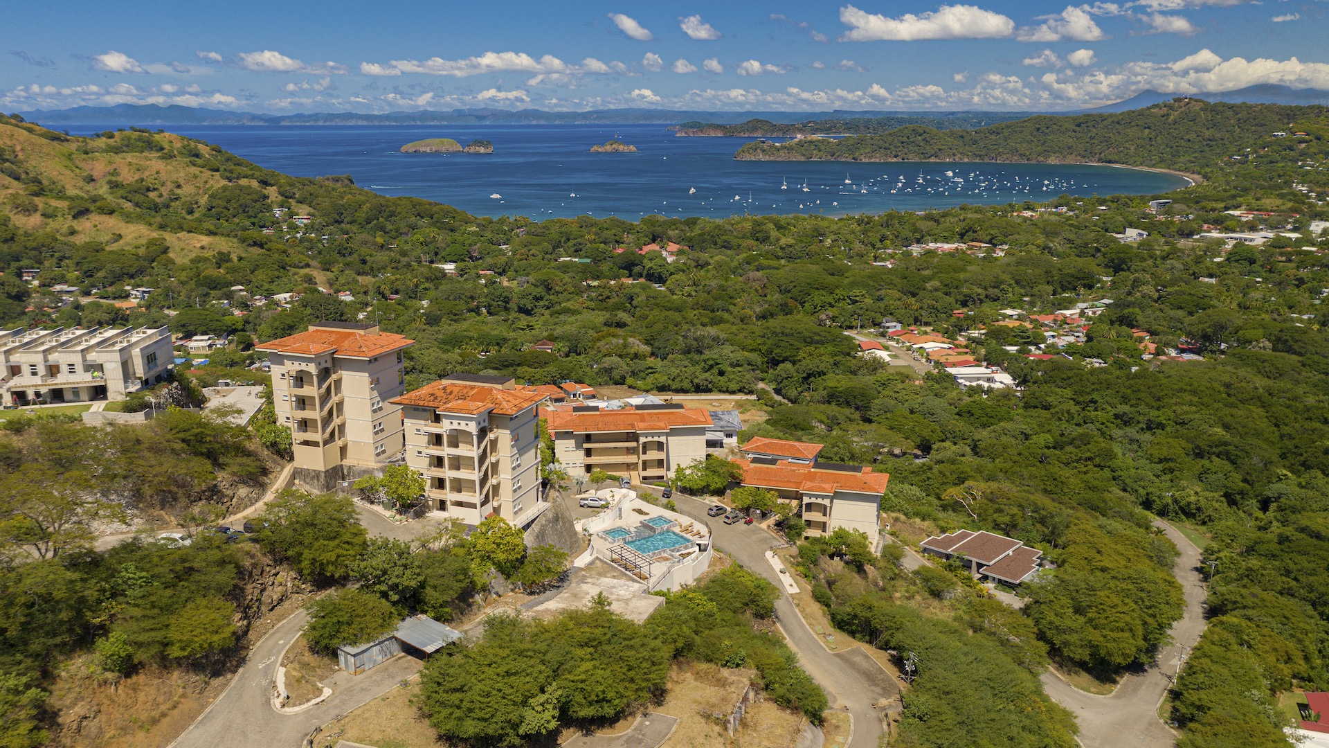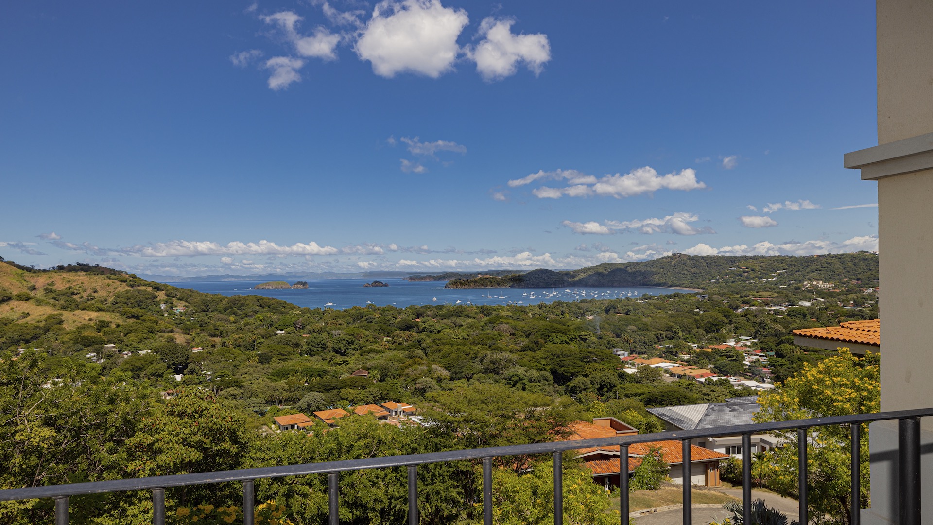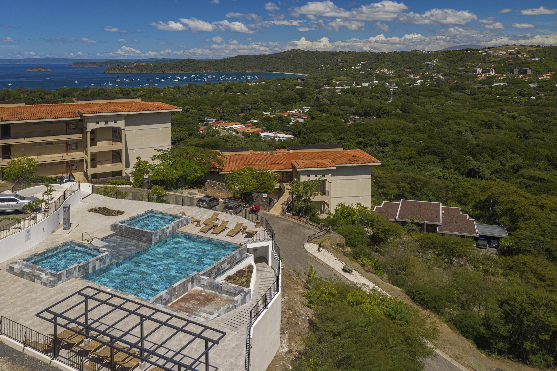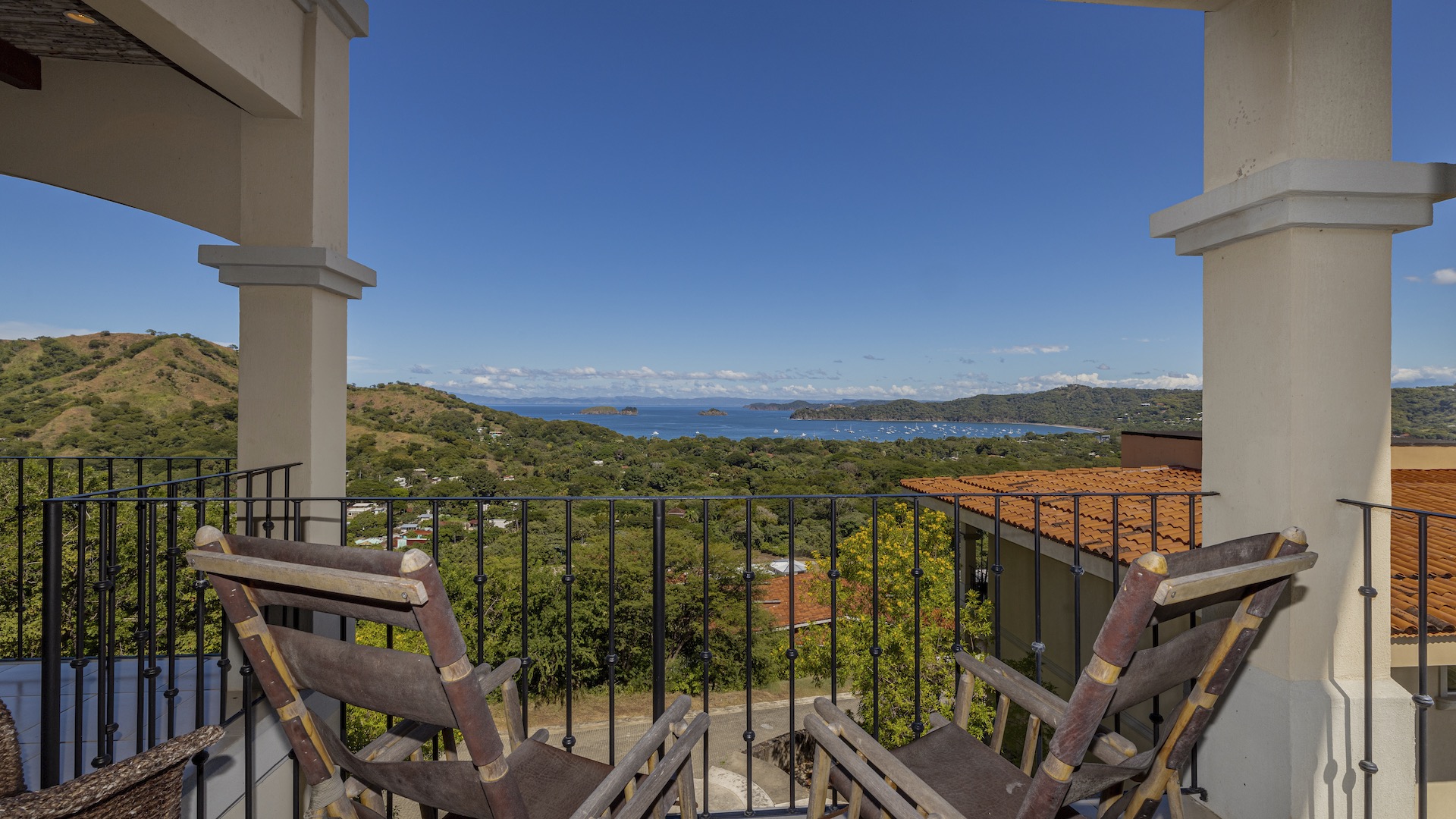 Experience elevated coastal living in this luxurious 1,575 sq. ft. 2-bedroom, 2.5-bathroom ocean-view condo, perfectly positioned on the third floor of the prestigious Segovia Condominiums. Offering breathtaking, unobstructed views of Playas del Coco and the Papagayo Peninsula from every room, this residence welcomes you into a spacious great room that seamlessly blends the compact yet well-appointed kitchen, dedicated dining area, and expansive living room, all opening onto a large covered terrace—the ideal spot to enjoy morning coffee, serene sunsets, or the peaceful rhythm of the coastline. Thoughtful design continues throughout, with a half bath and roomy laundry area off the entry hall, custom hardwood cabinetry, double-paned windows, granite countertops, stainless steel appliances, and sleek porcelain tile flooring. The two bedrooms are privately set on opposite sides of the living area, and each bedroom features its own private ocean-view terrace. The generous primary suite further includes oversized closets, dual vanities, a jacuzzi tub, and separate shower and commode, while the secondary bedroom also offers its own ensuite with a large shower and private commode. Residents enjoy central A/C, abundant storage, a large community ocean-view pool and jacuzzi, and ample off-street parking. As part of Coco Bay Estates, owners have access to a full suite of amenities including the exclusive Club at Coco Bay with a restaurant, fitness center, pickleball and tennis courts, paved roads, and 24/7 security. Located just minutes from the beach, town center, shopping, dining, entertainment, and watersports—and only 30 minutes from Liberia International Airport—this exceptional condo offers the perfect blend of luxury, convenience, and coastal tranquility.