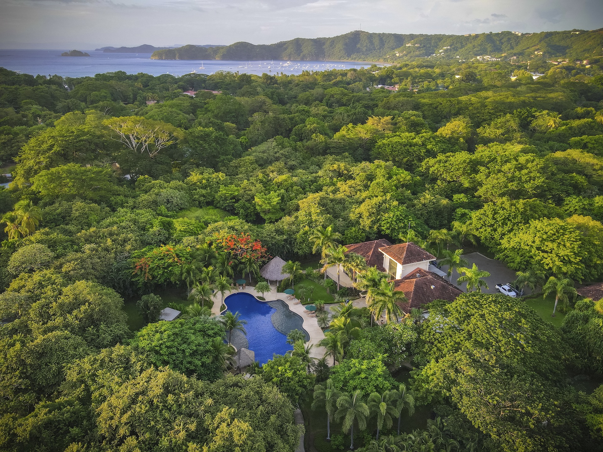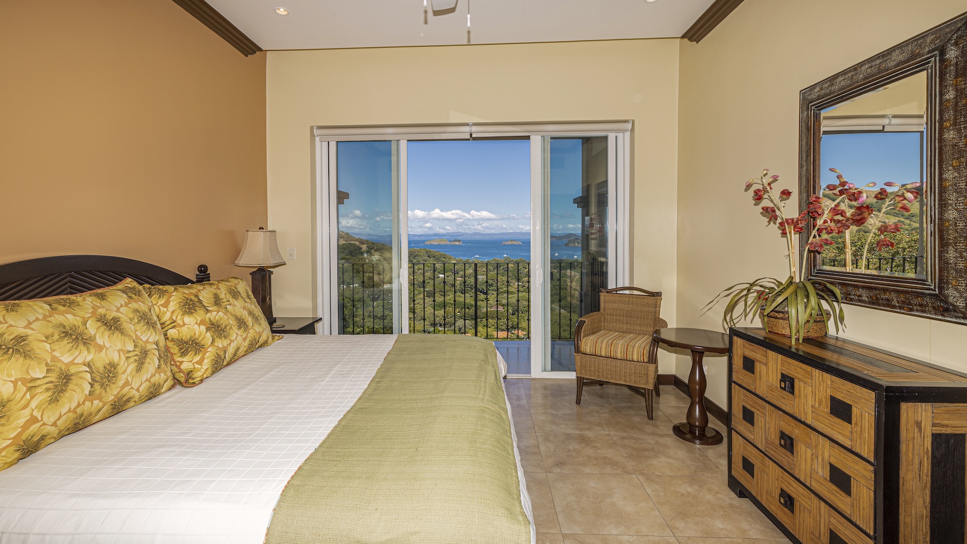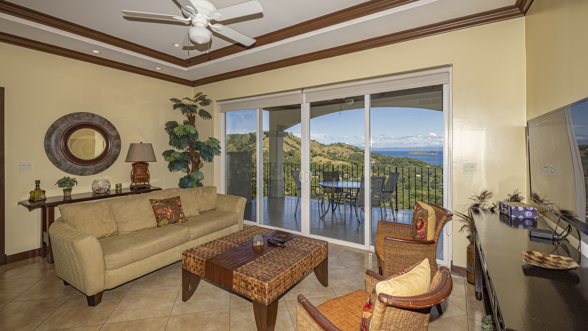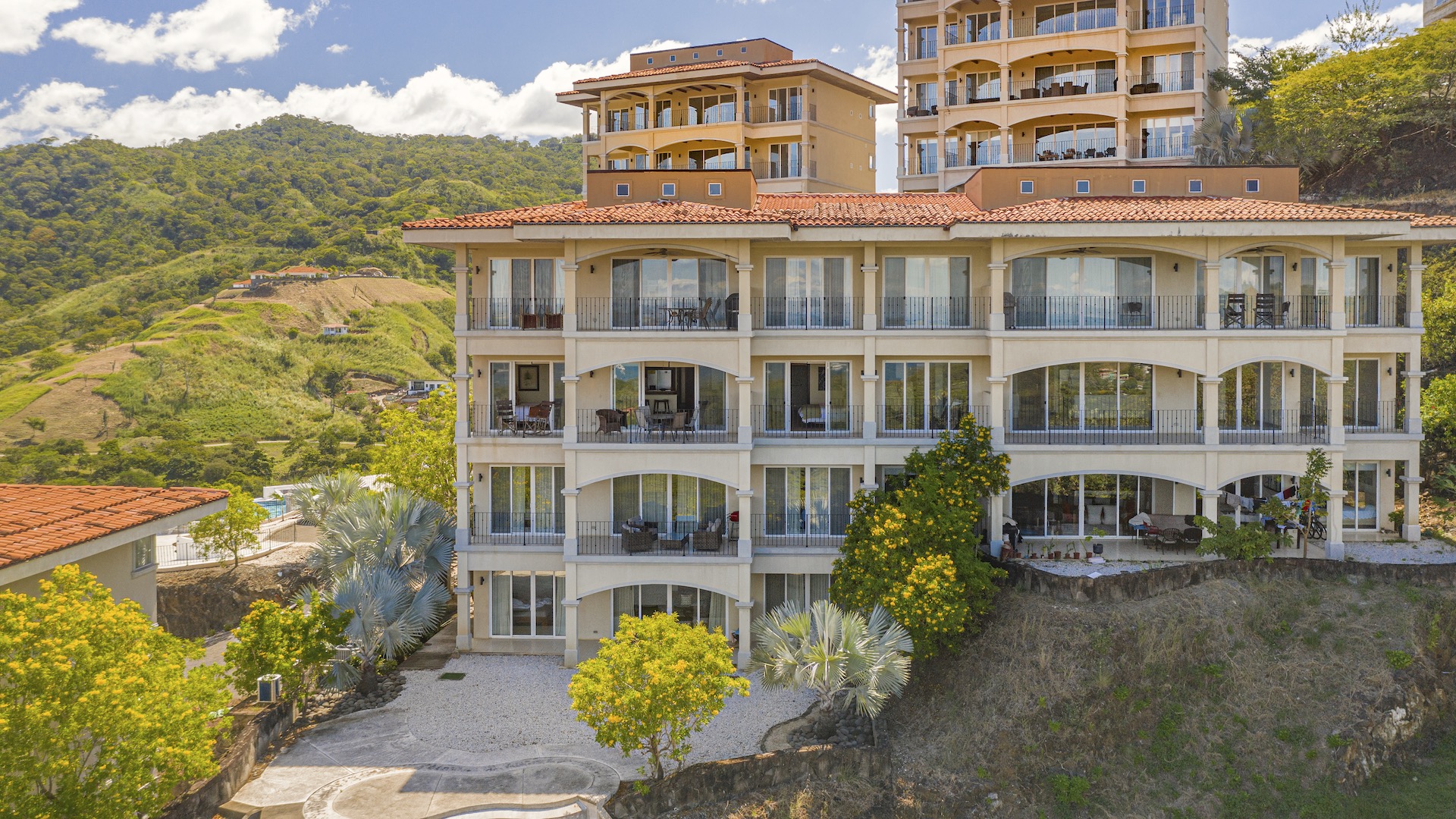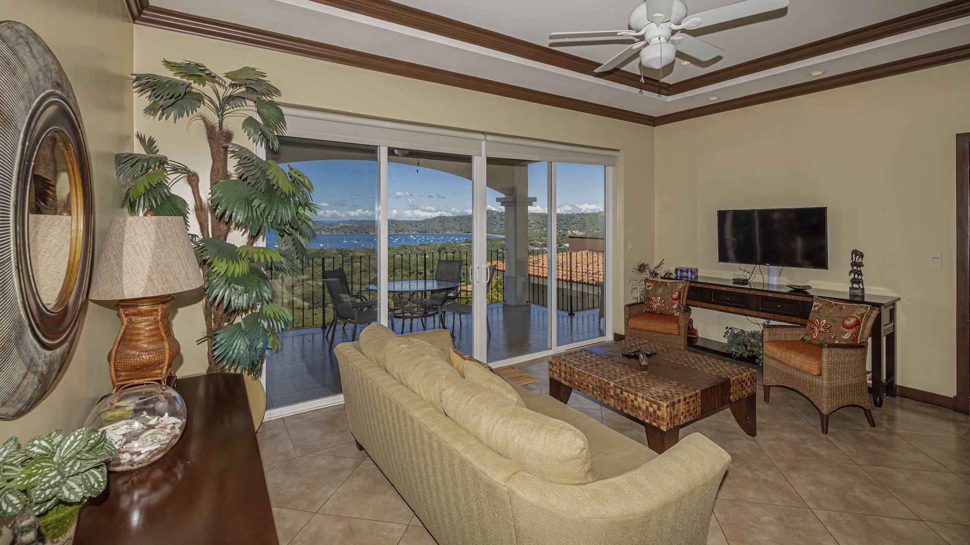 Experience elevated coastal living in this luxurious 1,575 sq. ft. 2-bedroom, 2.5-bathroom ocean-view condo, perfectly positioned on the third floor of the prestigious Segovia Condominiums. Offering breathtaking, unobstructed views of Playas del Coco and the Papagayo Peninsula from every room, this residence welcomes you into a spacious great room that seamlessly blends the compact yet well-appointed kitchen, dedicated dining area, and expansive living room, all opening onto a large covered terrace—the ideal spot to enjoy morning coffee, serene sunsets, or the peaceful rhythm of the coastline. Thoughtful design continues throughout, with a half bath and roomy laundry area off the entry hall, custom hardwood cabinetry, double-paned windows, granite countertops, stainless steel appliances, and sleek porcelain tile flooring. The two bedrooms are privately set on opposite sides of the living area, and each bedroom features its own private ocean-view terrace. The generous primary suite further includes oversized closets, dual vanities, a jacuzzi tub, and separate shower and commode, while the secondary bedroom also offers its own ensuite with a large shower and private commode. Residents enjoy central A/C, abundant storage, a large community ocean-view pool and jacuzzi, and ample off-street parking. As part of Coco Bay Estates, owners have access to a full suite of amenities including the exclusive Club at Coco Bay with a restaurant, fitness center, pickleball and tennis courts, paved roads, and 24/7 security. Located just minutes from the beach, town center, shopping, dining, entertainment, and watersports—and only 30 minutes from Liberia International Airport—this exceptional condo offers the perfect blend of luxury, convenience, and coastal tranquility.
