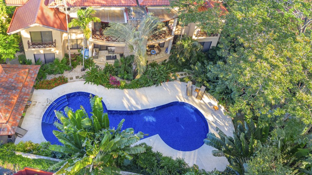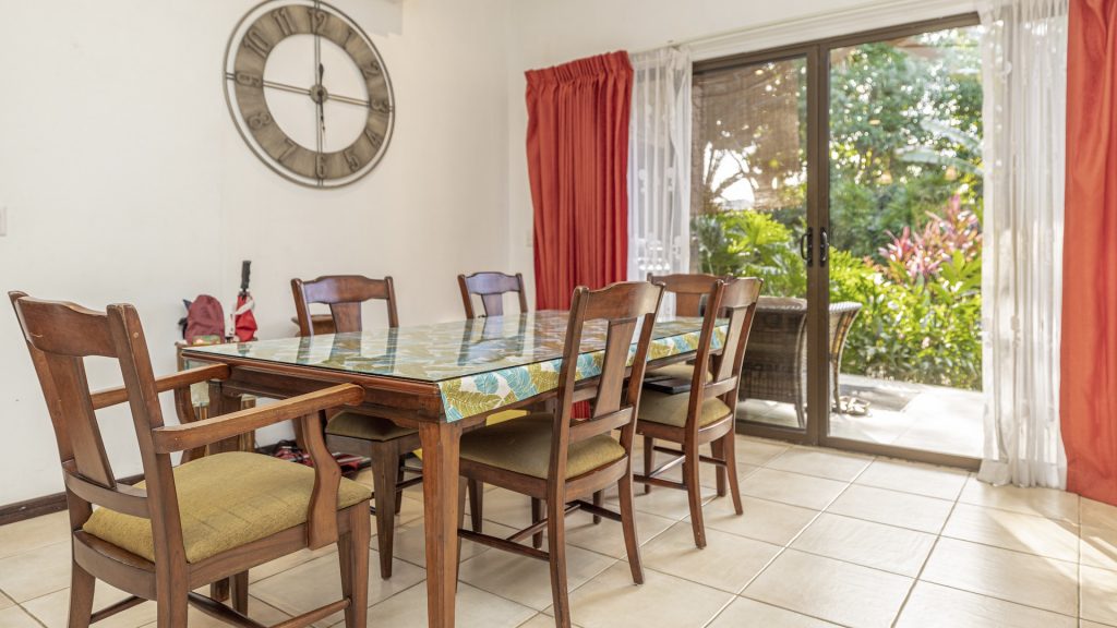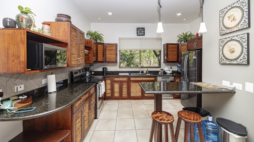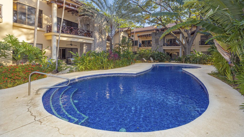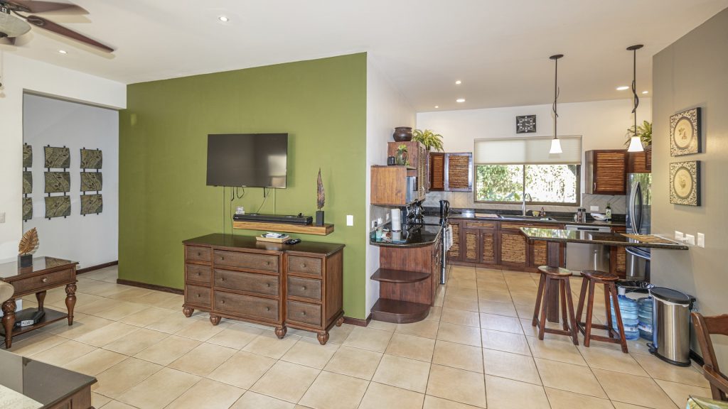 Nestled in a small boutique condominium development within easy walking distance to the beach and the vibrant downtown of Playas del Coco, this beautifully designed ground-floor residence offers a rare sense of privacy and tranquility amid a lush, mature tropical landscape conceived by renowned Costa Rican architect Ronald Zurcher. The 1,316-square-foot, single-level condo features three bedrooms and two bathrooms, including a spacious primary suite with an ensuite bath, while the two additional bedrooms share a well-appointed full bathroom. An open-concept great room seamlessly blends the large kitchen, living, and dining areas, flowing out to a private covered terrace with a built-in BBQ that overlooks manicured gardens, two stunning common swimming pools, and shared ranchos—creating an inviting indoor-outdoor lifestyle. Fully furnished and equipped, the home showcases tile flooring, granite and marble countertops, and stainless steel appliances, all within a secure, fully walled community offering 24-hour security and off-street parking. Perfectly located just 25 minutes from Guanacaste International Airport (LIR) and only minutes from shopping, medical services, restaurants, water sports, outdoor adventures, and Playas del Coco’s lively nightlife, this condo delivers refined coastal living in a serene oasis setting.