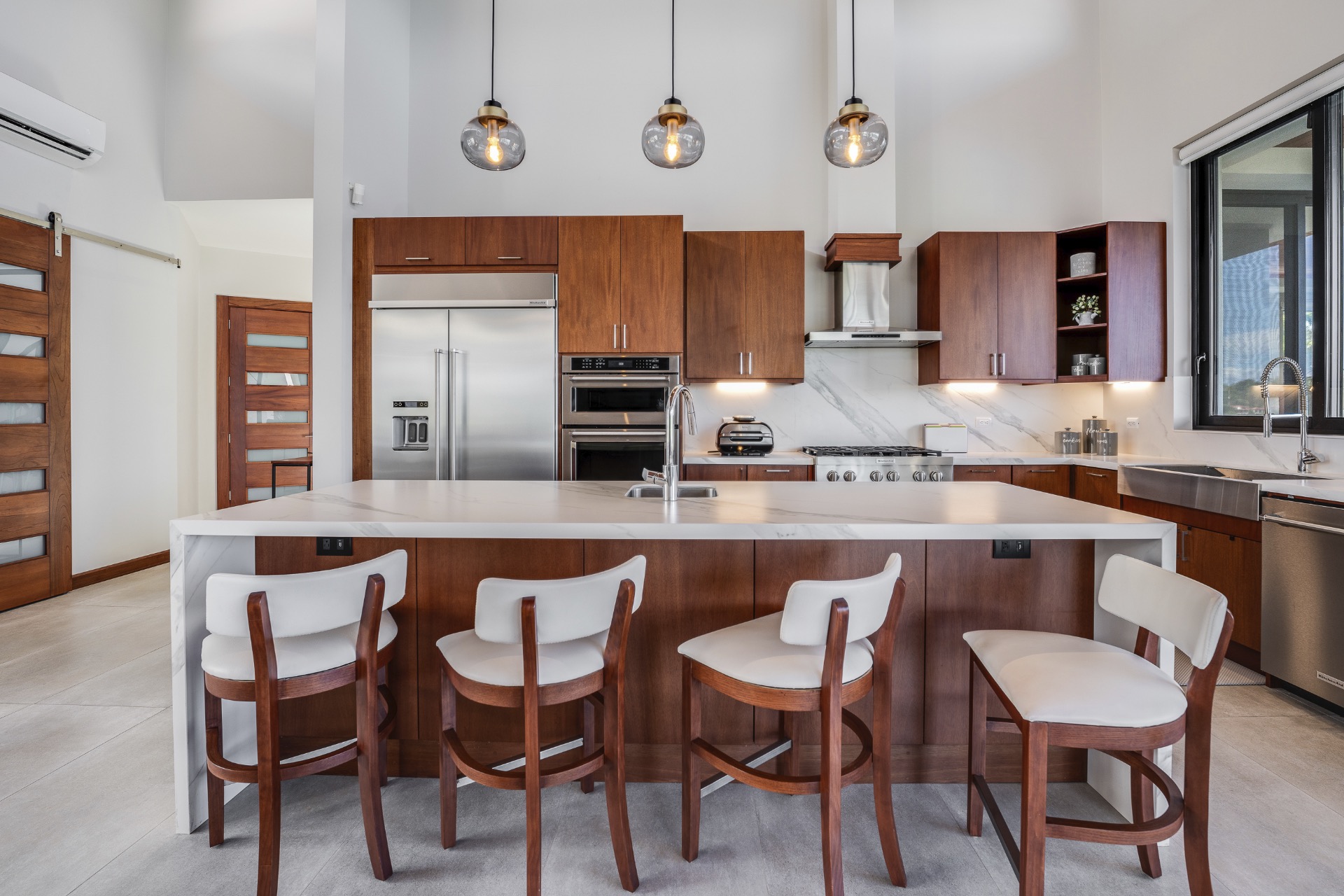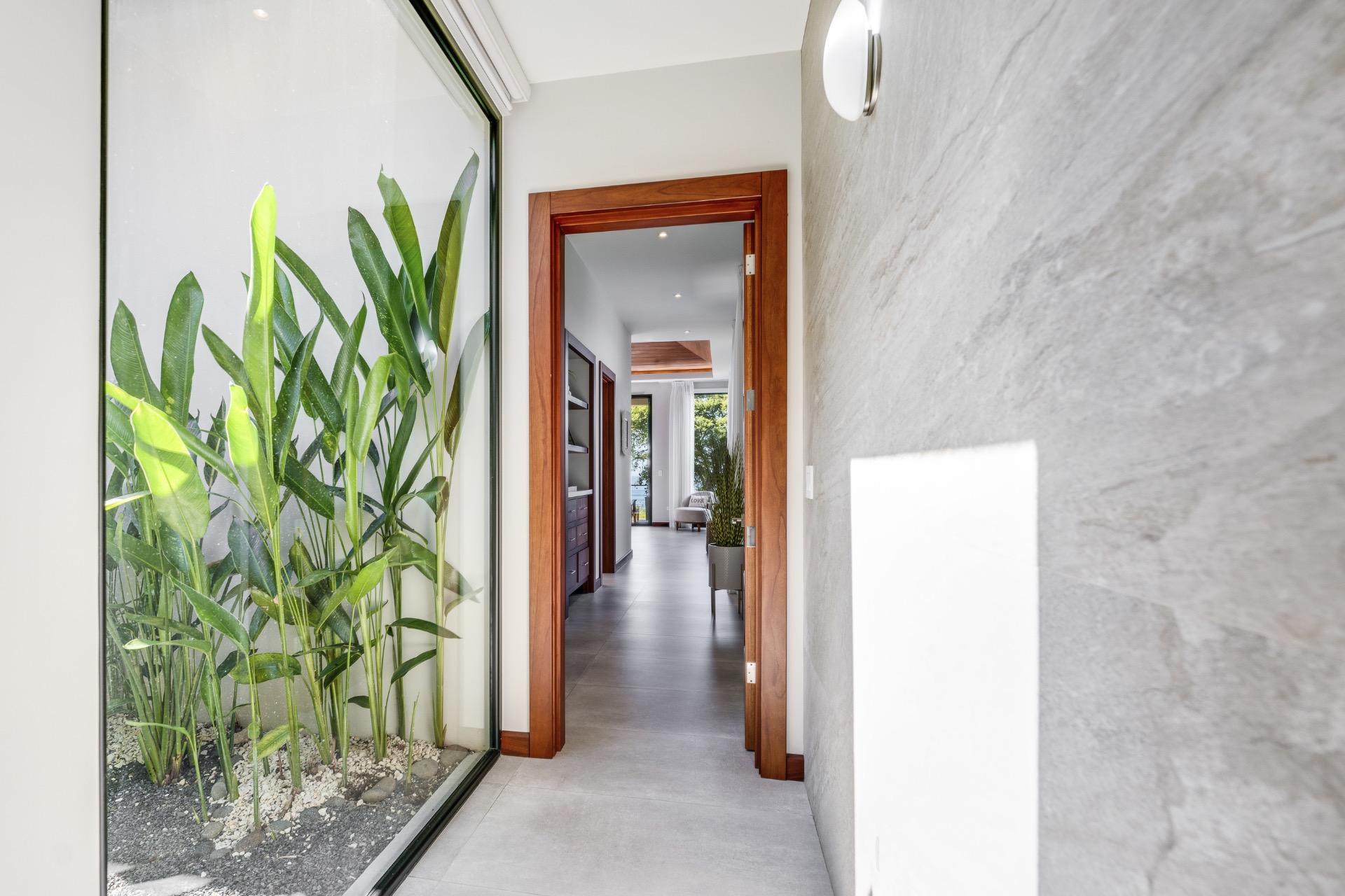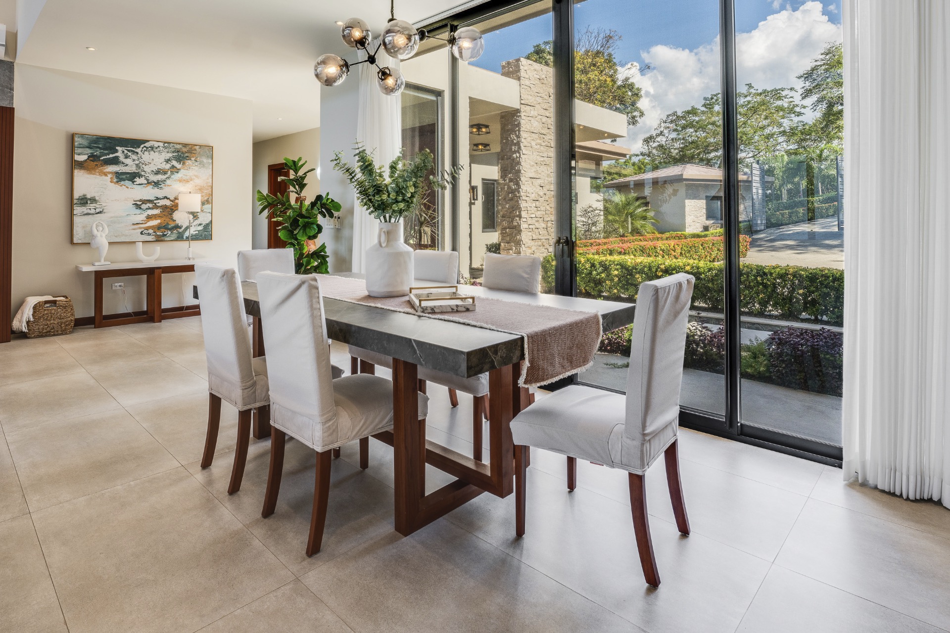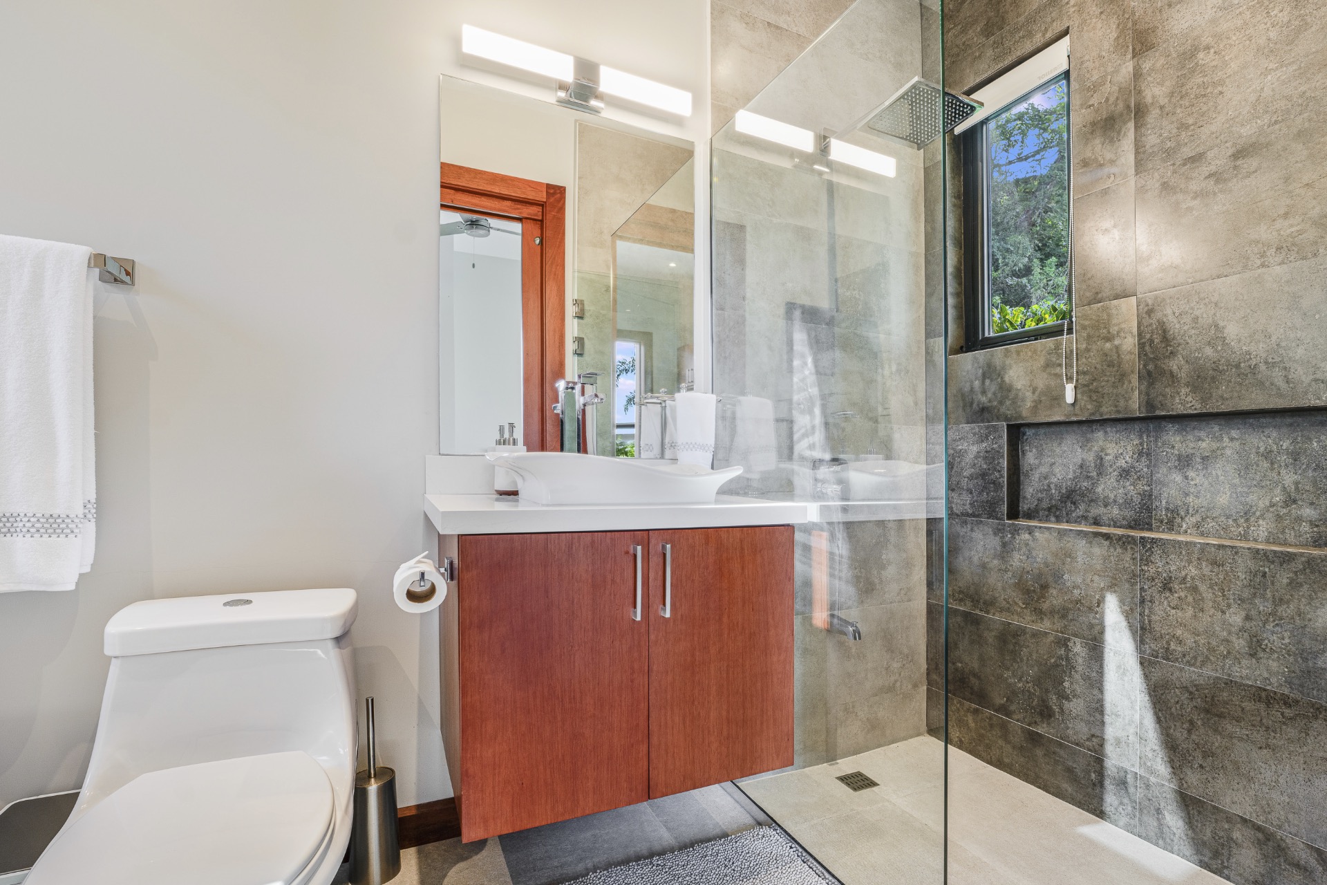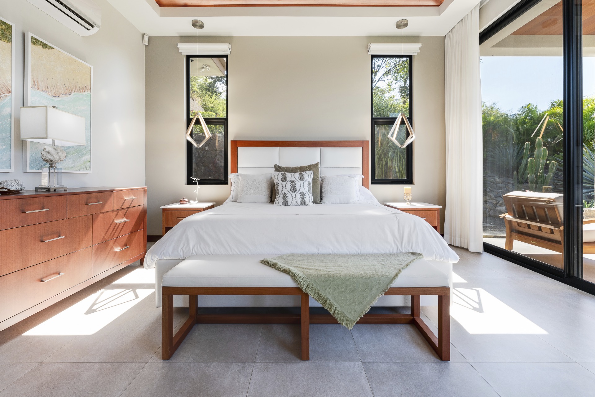 This beautifully designed, luxuriously finished, and tastefully furnished contemporary home is set inside Monte Bello, the premiere residential development in Playa Hermosa, Guanacaste, Costa Rica. Within sight of the Peninsula Papagayo and Punta Cacique you enjoy proximity to the highest level of luxury development that Costa Rica offers such as the Four Seasons, Ritz Carlton and Waldorf Astoria to name a few. Nestled on a mountainside this luxury ocean view estate home boasts a build quality, finish specifications and upscale furnishings that is second to none. This palatial home sits on a 2,210 M2 Lot and has 4,220 square feet of airconditioned space and measures 7,010 total square feet with 5 bedrooms, 5 full bathrooms, 2 half bathrooms and 4 kitchens and come turnkey ready with high end fixtures and appliances, as well as custom built tropical wood doors, cabinetry and closets. Upon entering the great room of the house, you are met with a stunning ocean view and soaring high ceilings fitted with wooden accents and mood lighting. The cathedral like high ceilings are continued throughout the entire house with varying degrees of wood accents and designer lighting. The kitchen features an island with sit up bar seating and is equipped to cook like a king. There is a dedicated dining area with a built in side bar fitted with a wine a beverage cooler. The living room enjoys vaulted ceilings and features stunning ocean views through the floor to ceiling sliding glass doors that lead out onto the covered pool terrace. The large pool Terrace has a full outdoor living room set along with a separate dining area. The infinity pool has a sunning deck and a adjoining jacuzzi. The swim up bar is a sunken Rancho with a full kitchen, BBQ and bathroom. Each of the 3 bedrooms in the main house has an ocean view and ensuite bathroom. The main suite has a private ocean view terrace. There is a separate 1 bedroom guest house with full kitchen along with a studio apartment also with full kitchen. You are surrounded by Multi Million-Dollar homes inside coveted Monte Bello and are within minutes to the beach and close to an outstanding selection of local restaurants and shopping options and a short drive from the commercial and entertainment center of Playas del Coco and just 25 minutes to the Guanacaste International Airport (LIR) and close to various full service private hospitals and clinics. Move in today and enjoy your new lifestyle.