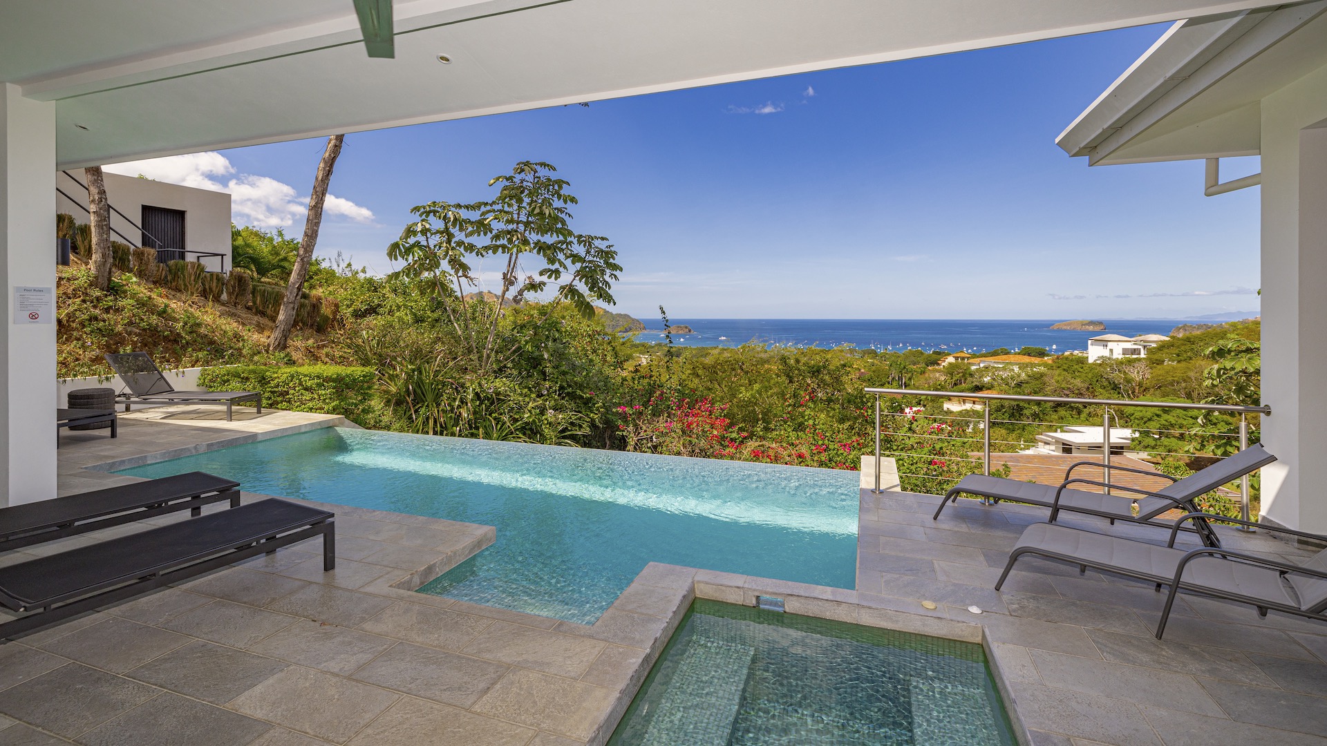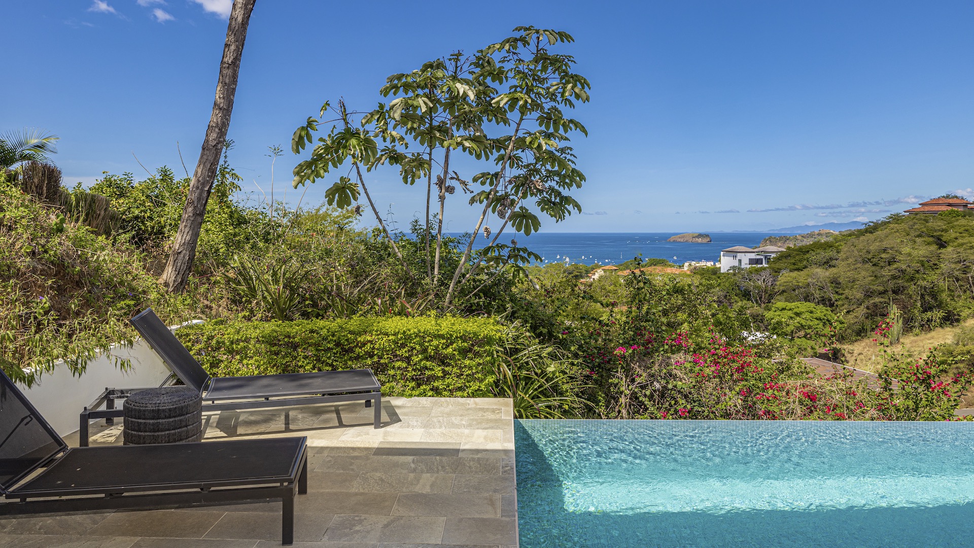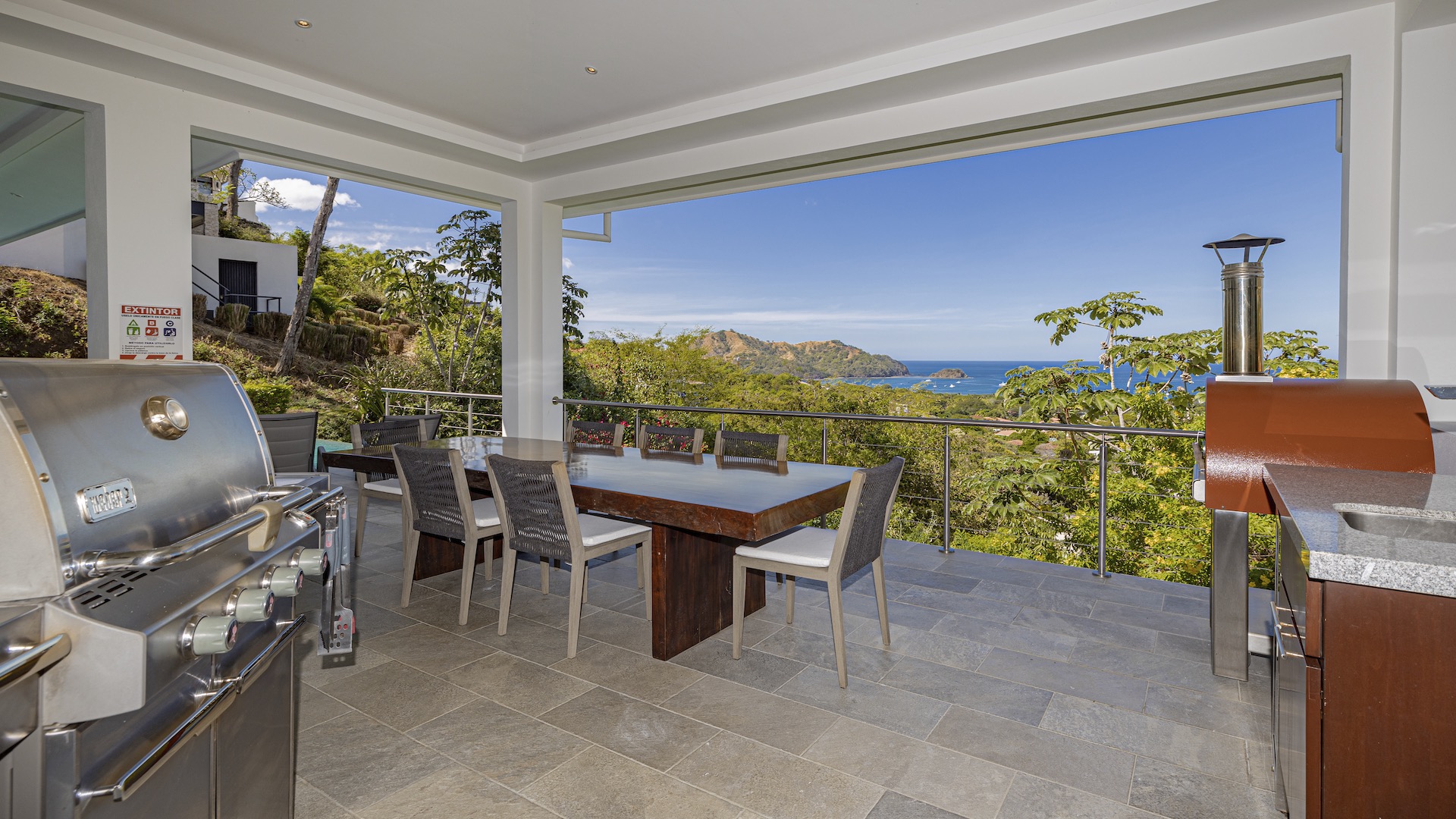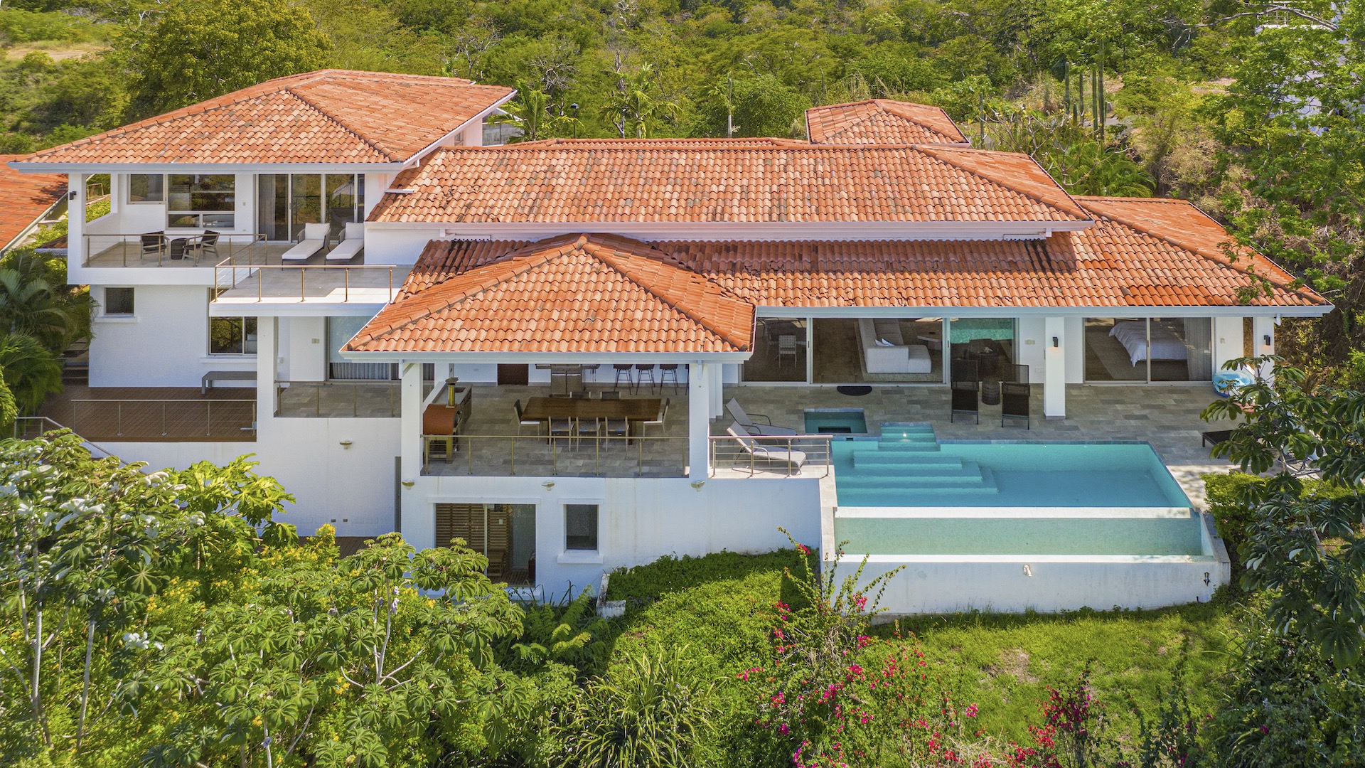 This impeccably built luxury residence offers 3,700 square feet of air-conditioned living space on a generous 1,834 square meter lot within the private, gated Pacifico community, boasting commanding ocean views over Playas del Coco and the Golfo Papagayo while remaining just minutes from the charm and conveniences of this vibrant beach town and nearby coastal destinations. Designed as an open-concept home for both refined living and effortless entertaining, the main living, dining, and kitchen areas flow seamlessly together and open directly onto the expansive pool terrace, creating a perfect indoor–outdoor lifestyle. The home features an infinity-edge pool, outdoor jacuzzi, sauna with full bath, and a lower ocean-view terrace, complemented by multiple shaded terraces with lounge areas, separate dining areas both indoors and outdoors on the shaded terrace, an outdoor grill, and a wood-fired pizza oven. A large internal Zen garden provides a tranquil architectural focal point, beautifully connecting the great room with the air-conditioned media and game room, which also offers the flexibility to be converted into an additional bedroom. The property includes a fully equipped main kitchen plus an additional full kitchen, an expansive second-floor primary suite with stunning views, and three additional en-suite bedrooms on the main level, all generously sized to accommodate king beds. Additional highlights include a Sonos sound system, attached two-car garage, high-quality construction and finishes throughout, full air conditioning, and a triple filtration and water softening system delivering bottled-water quality from every tap. Ideally located just minutes from multiple beach towns and a full array of services including shopping, dining, nightlife, watersports, medical and dental care, and only 25 minutes from Guanacaste International Airport (LIR), owners also enjoy access to Pacifico’s exceptional amenities and the exclusive Pacifico Beach Club with direct access to the sandy beaches of Playas del Coco, oceanfront dining, and resort-style pools and lounge areas, completing a truly elevated coastal lifestyle.