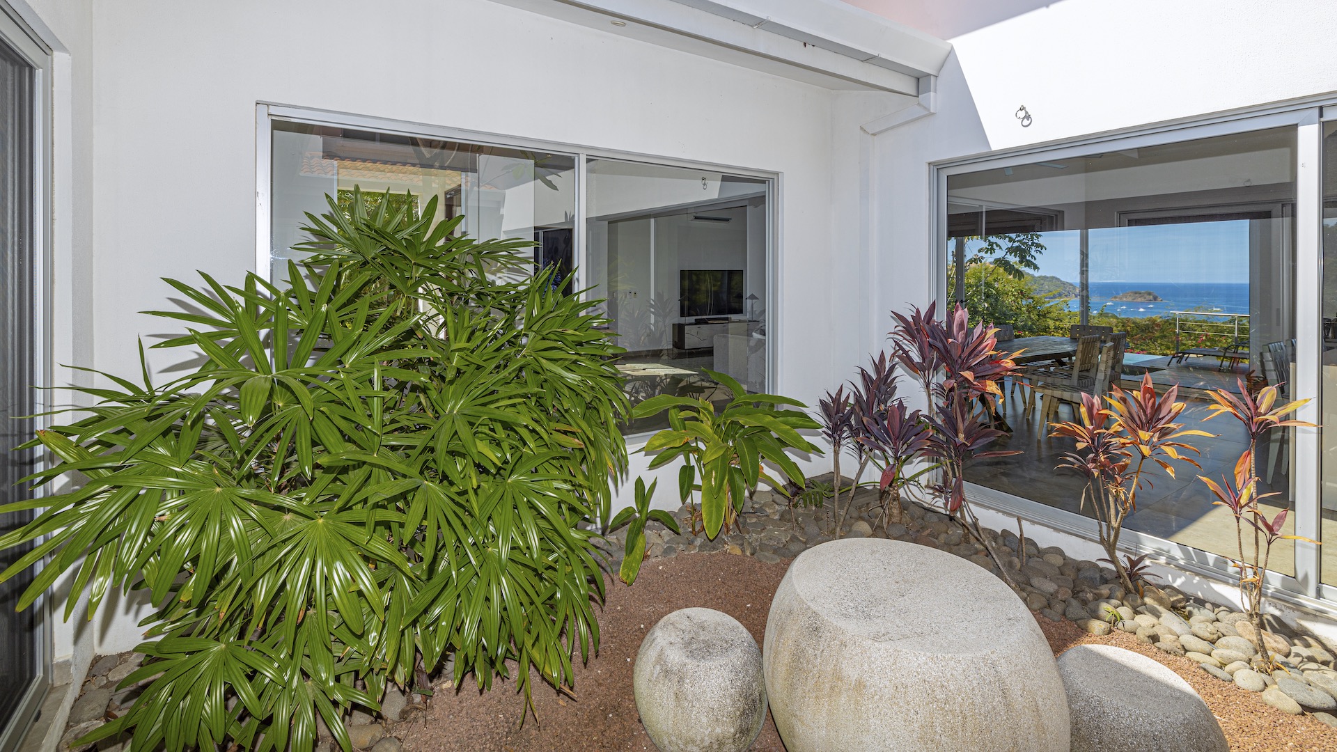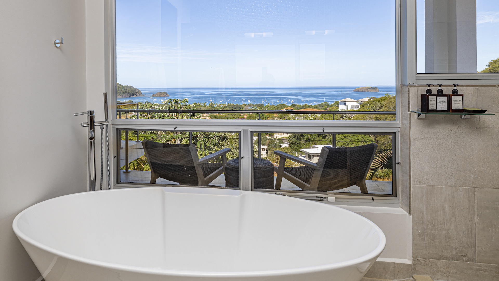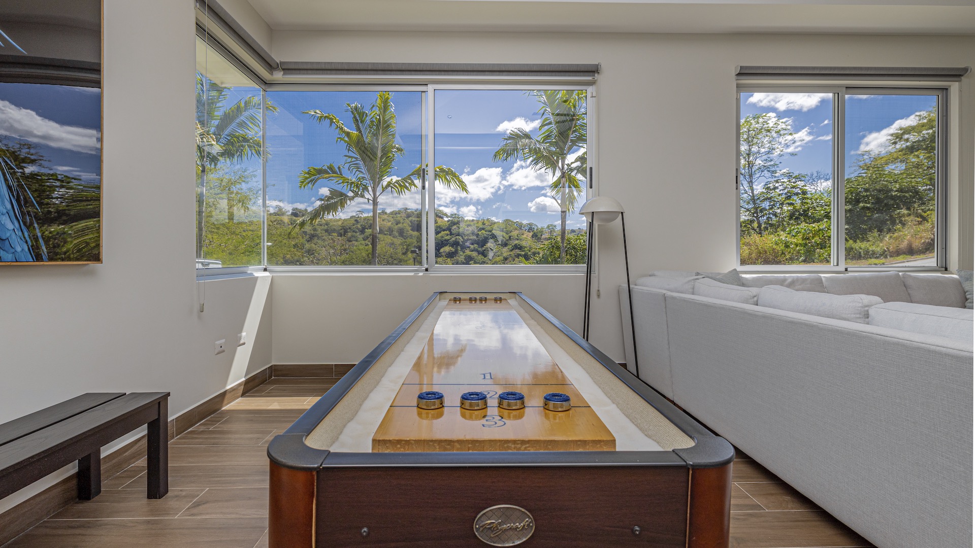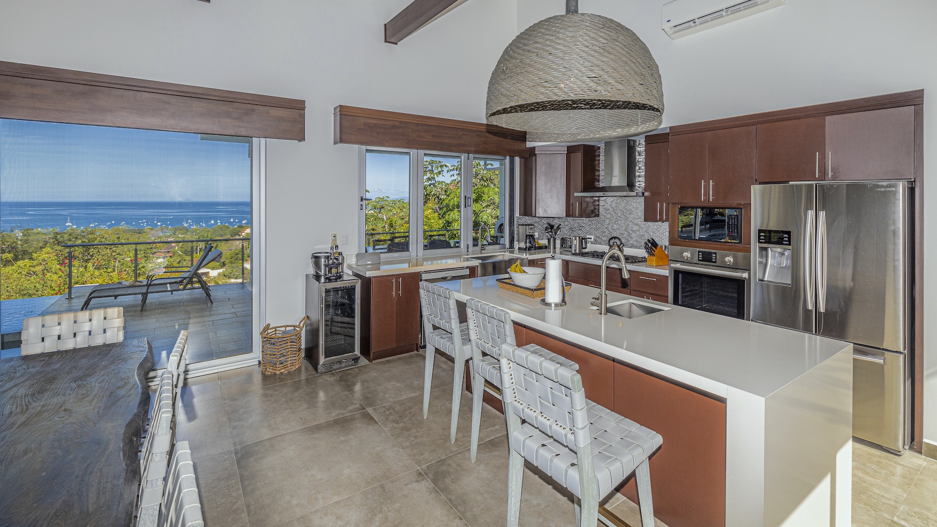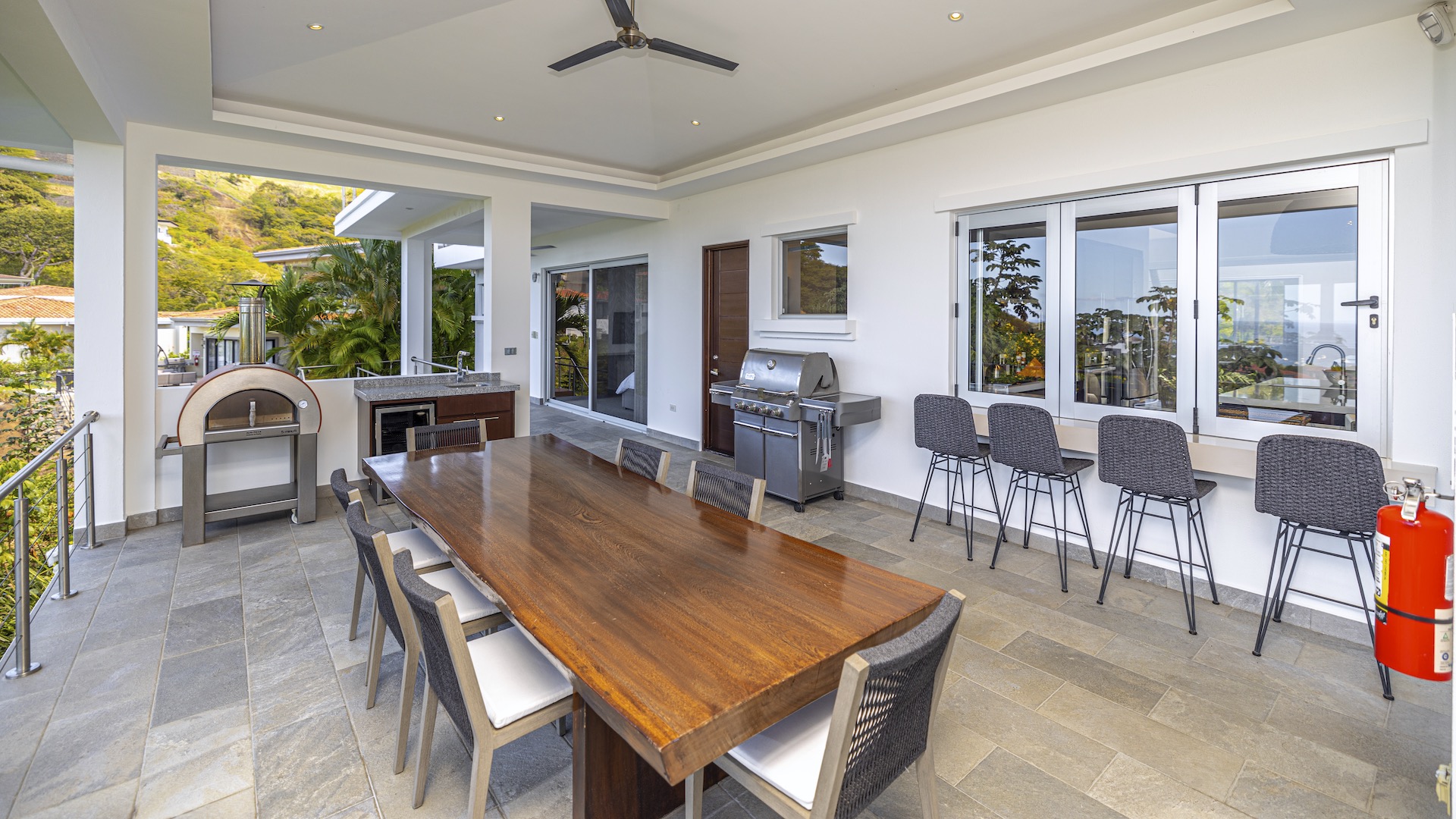 This impeccably built luxury residence offers 3,700 square feet of air-conditioned living space on a generous 1,834 square meter lot within the private, gated Pacifico community, boasting commanding ocean views over Playas del Coco and the Golfo Papagayo while remaining just minutes from the charm and conveniences of this vibrant beach town and nearby coastal destinations. Designed as an open-concept home for both refined living and effortless entertaining, the main living, dining, and kitchen areas flow seamlessly together and open directly onto the expansive pool terrace, creating a perfect indoor–outdoor lifestyle. The home features an infinity-edge pool, outdoor jacuzzi, sauna with full bath, and a lower ocean-view terrace, complemented by multiple shaded terraces with lounge areas, separate dining areas both indoors and outdoors on the shaded terrace, an outdoor grill, and a wood-fired pizza oven. A large internal Zen garden provides a tranquil architectural focal point, beautifully connecting the great room with the air-conditioned media and game room, which also offers the flexibility to be converted into an additional bedroom. The property includes a fully equipped main kitchen plus an additional full kitchen, an expansive second-floor primary suite with stunning views, and three additional en-suite bedrooms on the main level, all generously sized to accommodate king beds. Additional highlights include a Sonos sound system, attached two-car garage, high-quality construction and finishes throughout, full air conditioning, and a triple filtration and water softening system delivering bottled-water quality from every tap. Ideally located just minutes from multiple beach towns and a full array of services including shopping, dining, nightlife, watersports, medical and dental care, and only 25 minutes from Guanacaste International Airport (LIR), owners also enjoy access to Pacifico’s exceptional amenities and the exclusive Pacifico Beach Club with direct access to the sandy beaches of Playas del Coco, oceanfront dining, and resort-style pools and lounge areas, completing a truly elevated coastal lifestyle.
