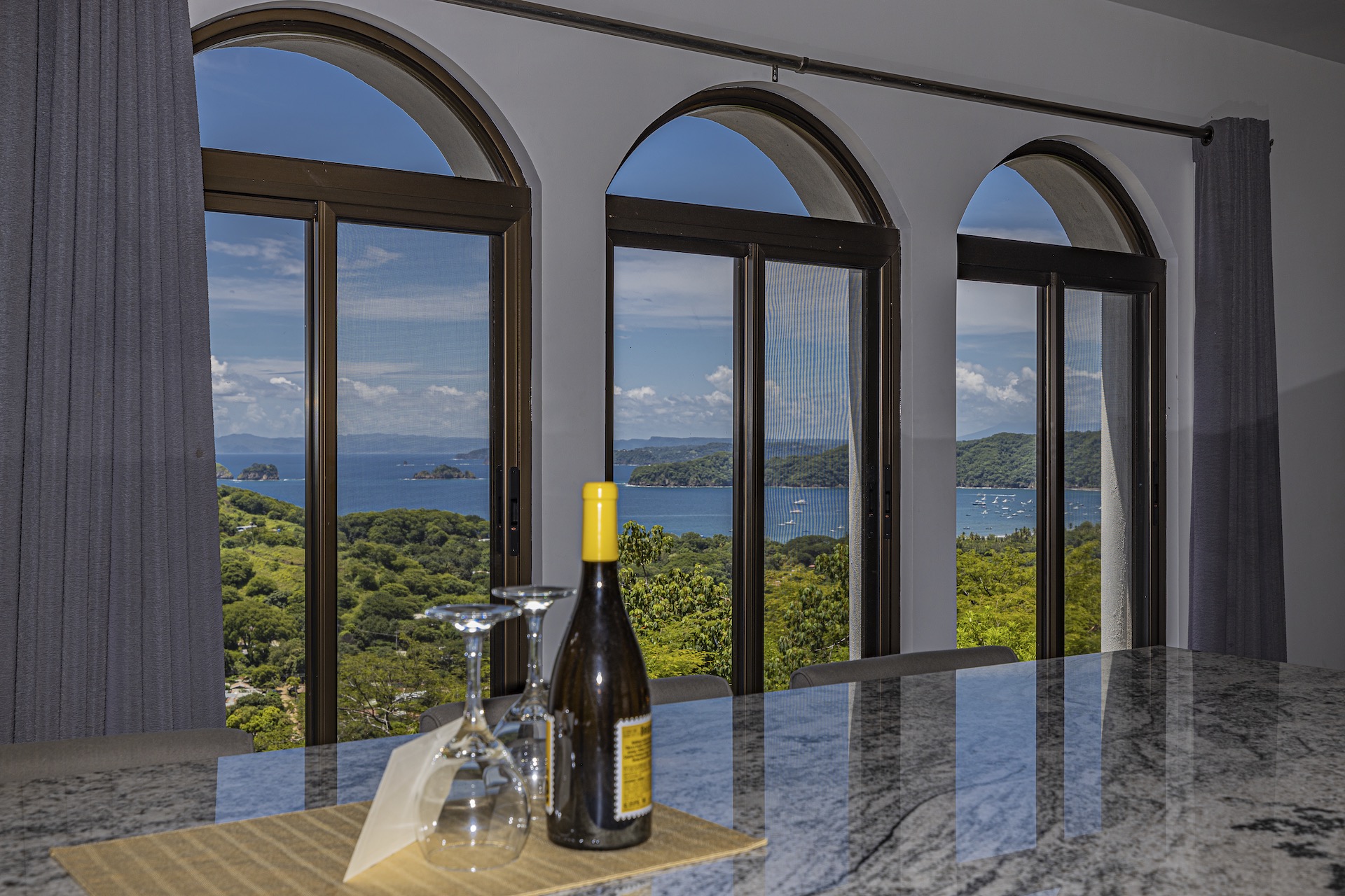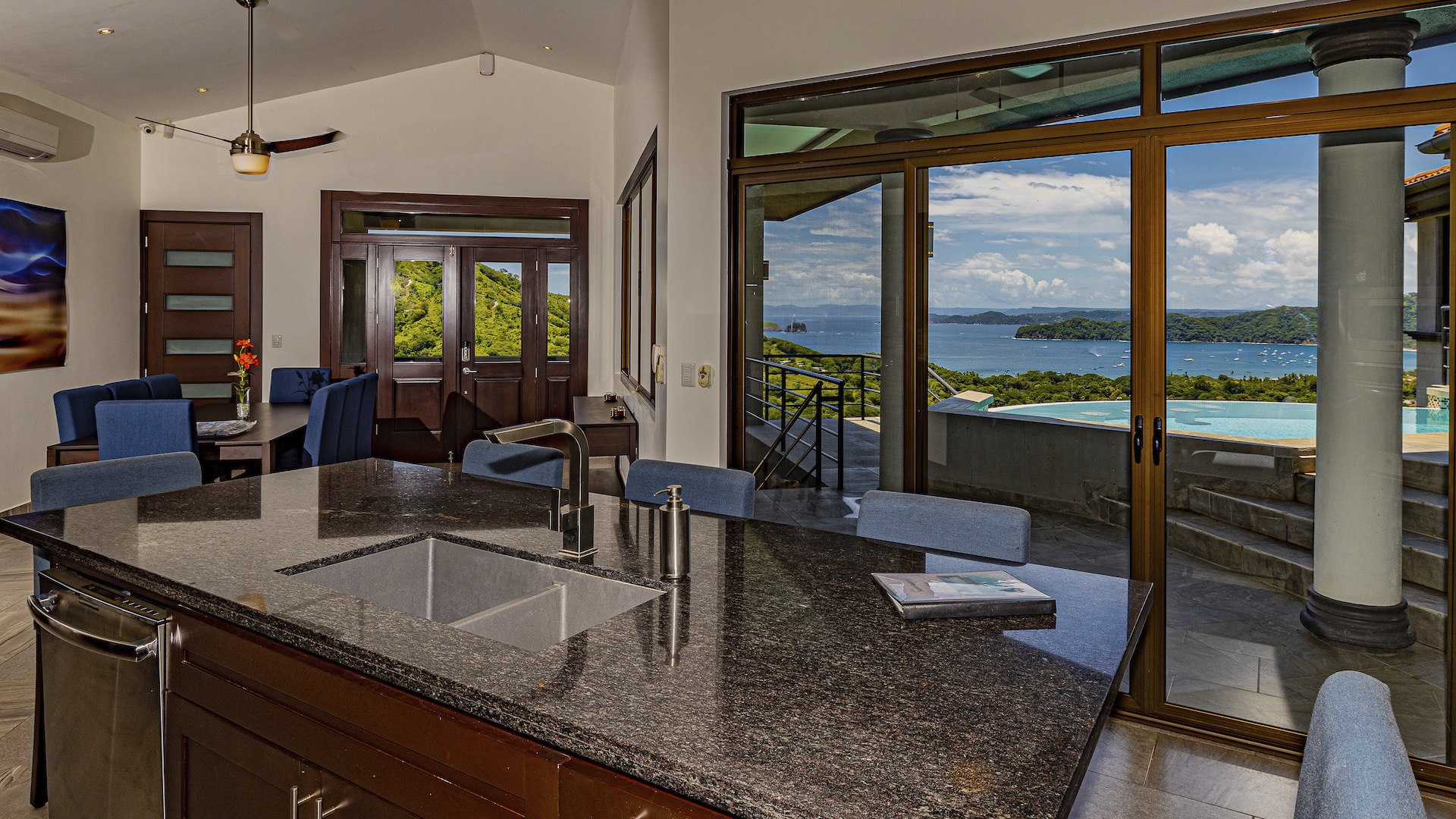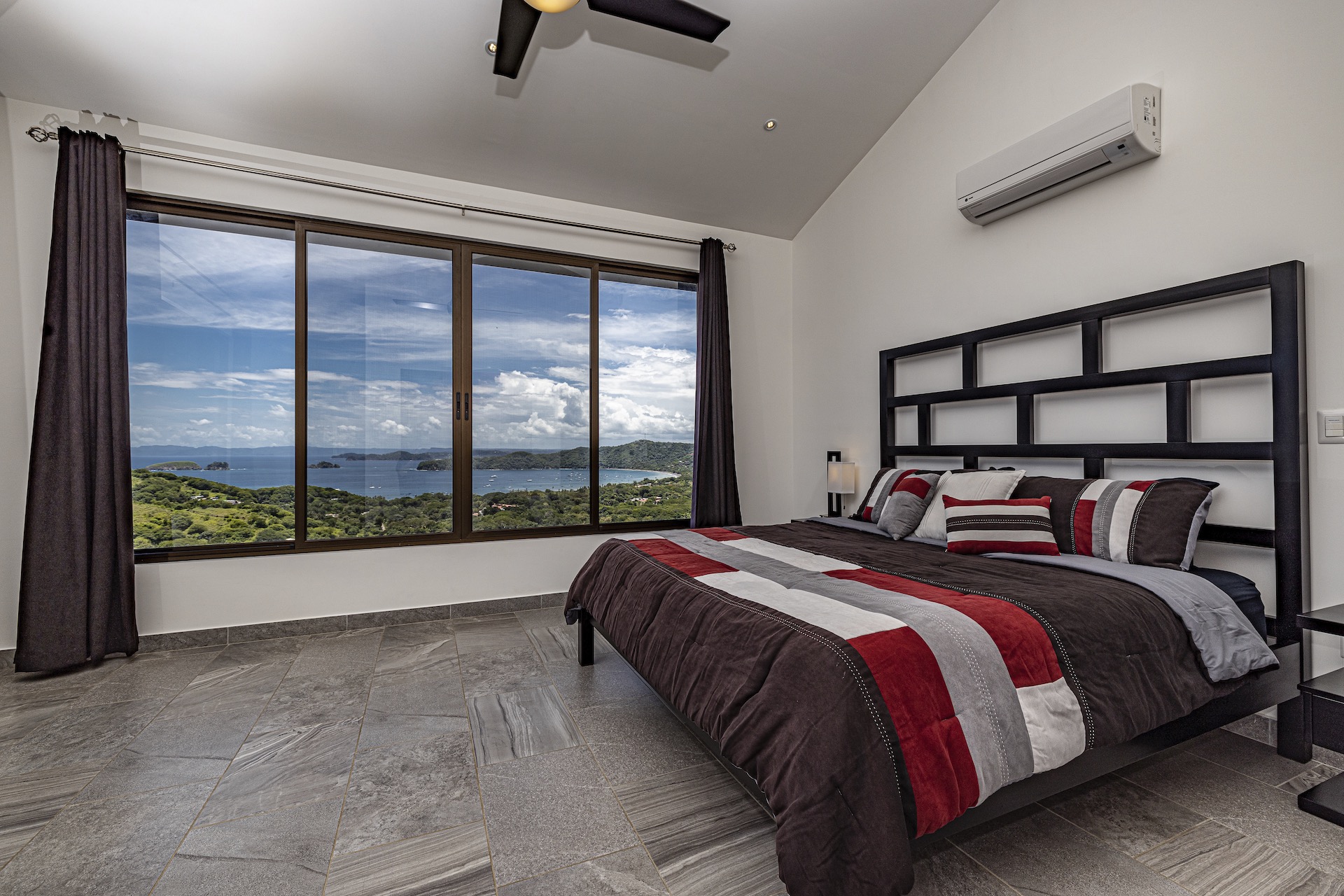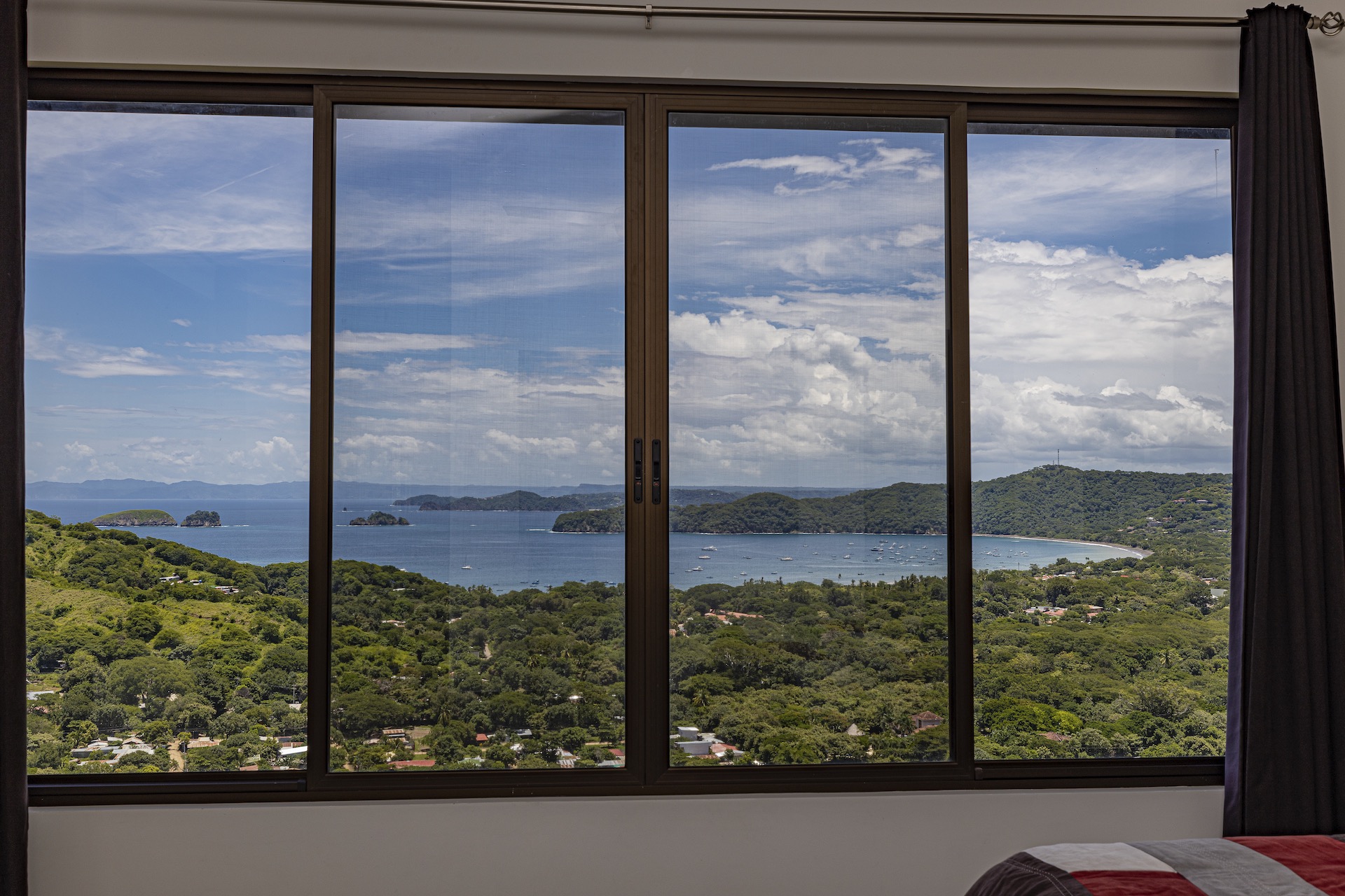 Stunning Modern Ocean View Home with Main Home and Separate Efficiency Apartment. This extremely private 4 bedroom, 3.5 bathroom luxury ocean view villa enjoys 2,835 SF of airconditioned space and has a total of 3,442 SF including the attached 2 car garage with an additional 1,150 SF of outside living space. The upper level of the home houses the vaulted ceiling living room and dining room along with the gourmet style kitchen all with direct access to the ocean view terrace and infinity edge pool overlooking the Bay of Coco, the Peninsula Papagayo and beyond. Also on the upper level is the master suite with sweeping ocean and valley views that features an ocean view tub, separate shower and walk in closet. There are 2 additional bedrooms that share an expanded jack and jill style bathroom along with a powder room off the living room. The 2 car attached garage is on the ground level where the brand new elevator is located that leads to all the upper floors. Take the elevator or the internal staircase to all the upper levels. The efficiency apartment is on the second level with a small living room, full kitchen, bedroom area and bathroom with great ocean views from every corner. The third floor features an ample BBQ and wet bar area and large ocean view terrace and stairs leading to the upper level. The laundry room and full service quarters complete with bathroom are just off the terrace. This modern home is built to North American standards and features high end porcelain floor tile inside and out, granite counter tops, custom wood doors and cabinetry, stainless steel kitchen appliances and a turnkey furniture and finishes package. This house is perfect for a luxury vacation with your family and serve as a high-end vacation rental villa while you’re away. Located inside exclusive Coco Bay Estates have full access to the clubhouse, huge members-only pool, gym, and tennis courts. Within minutes you can drive into downtown Playas del Coco to find a full range of shopping, restaurants, nightlife, healthcare and services. Just 25 minutes from Guanacaste International Airport (LIR). Move into this stunning Villa today.