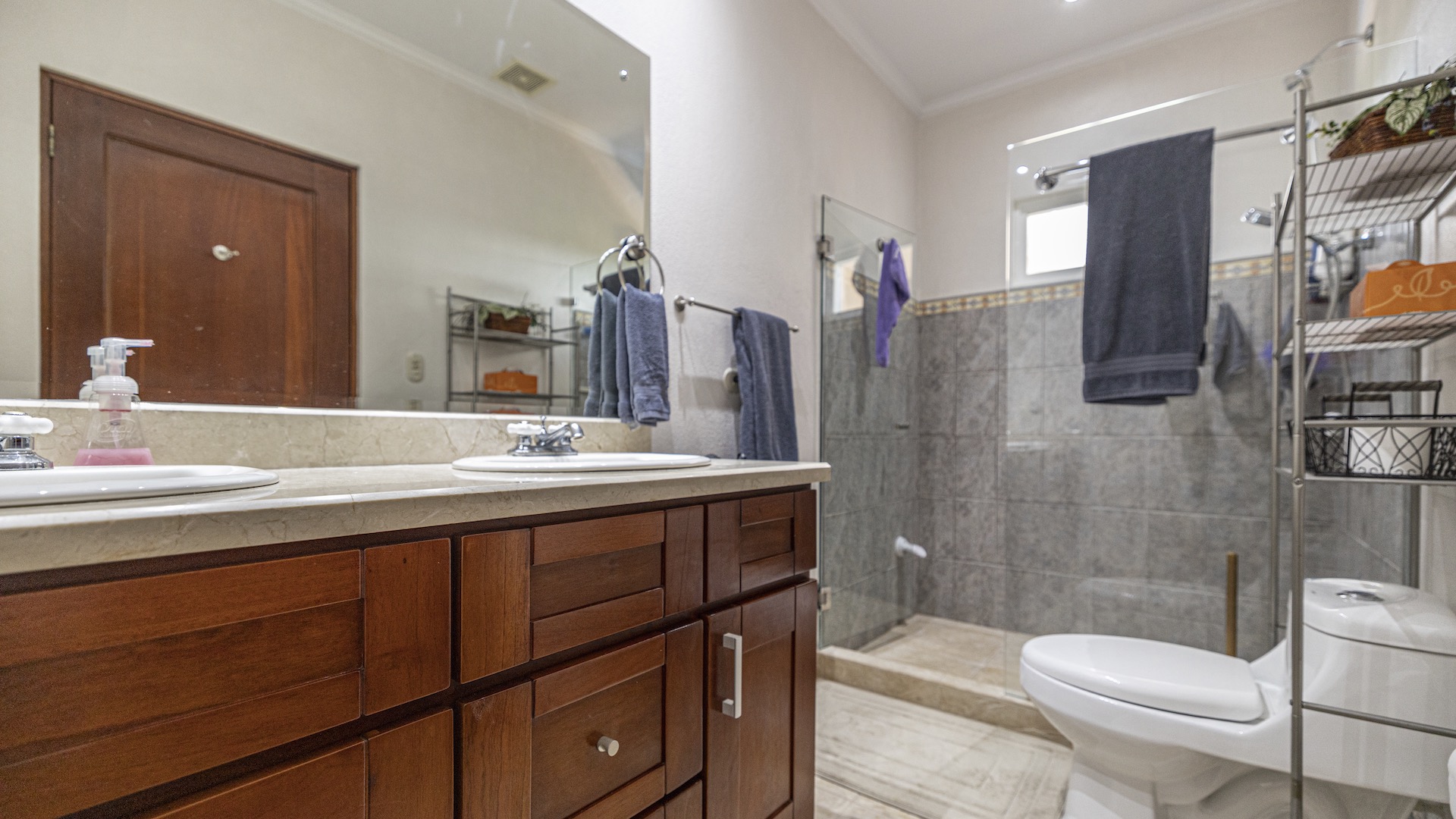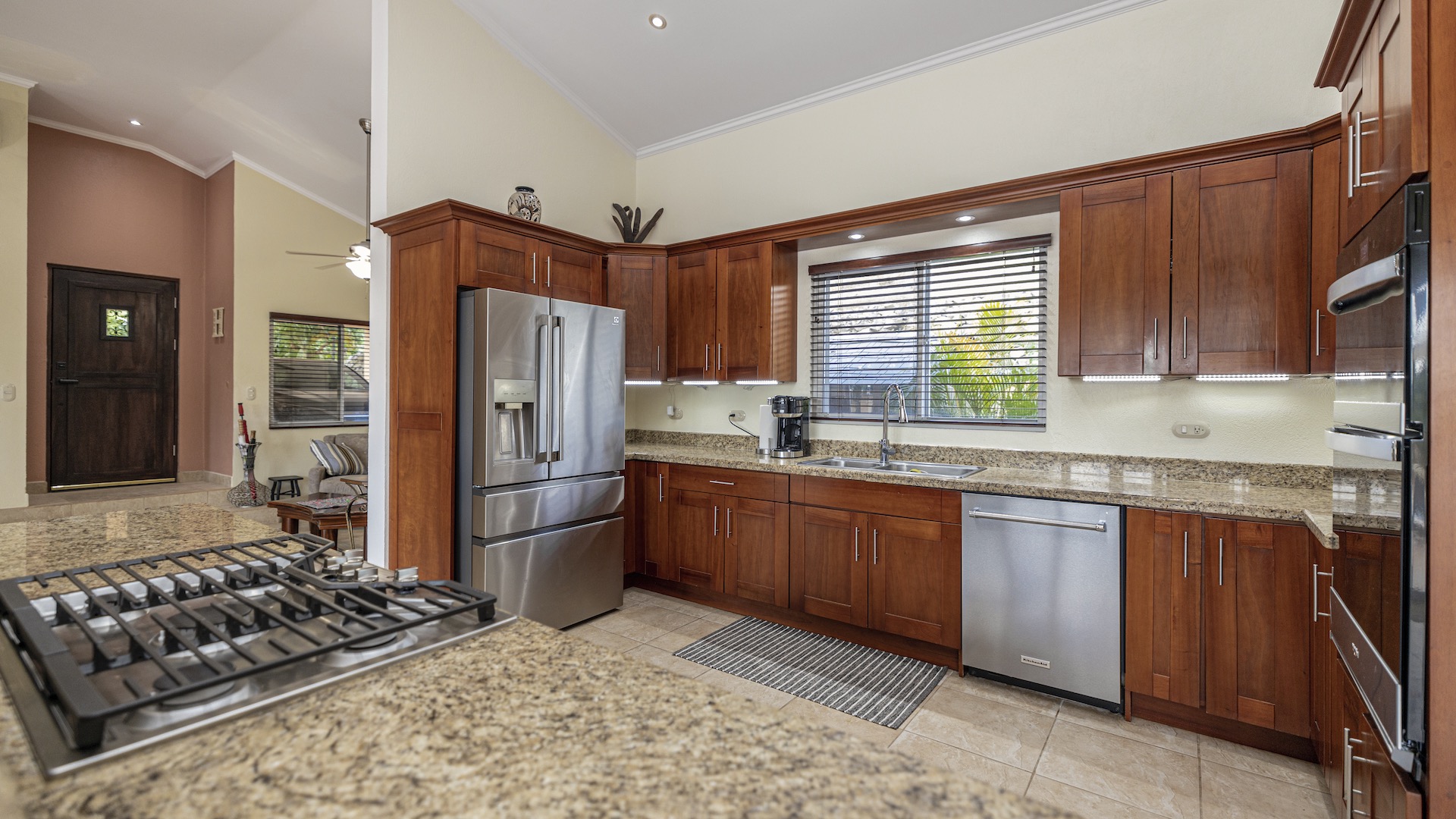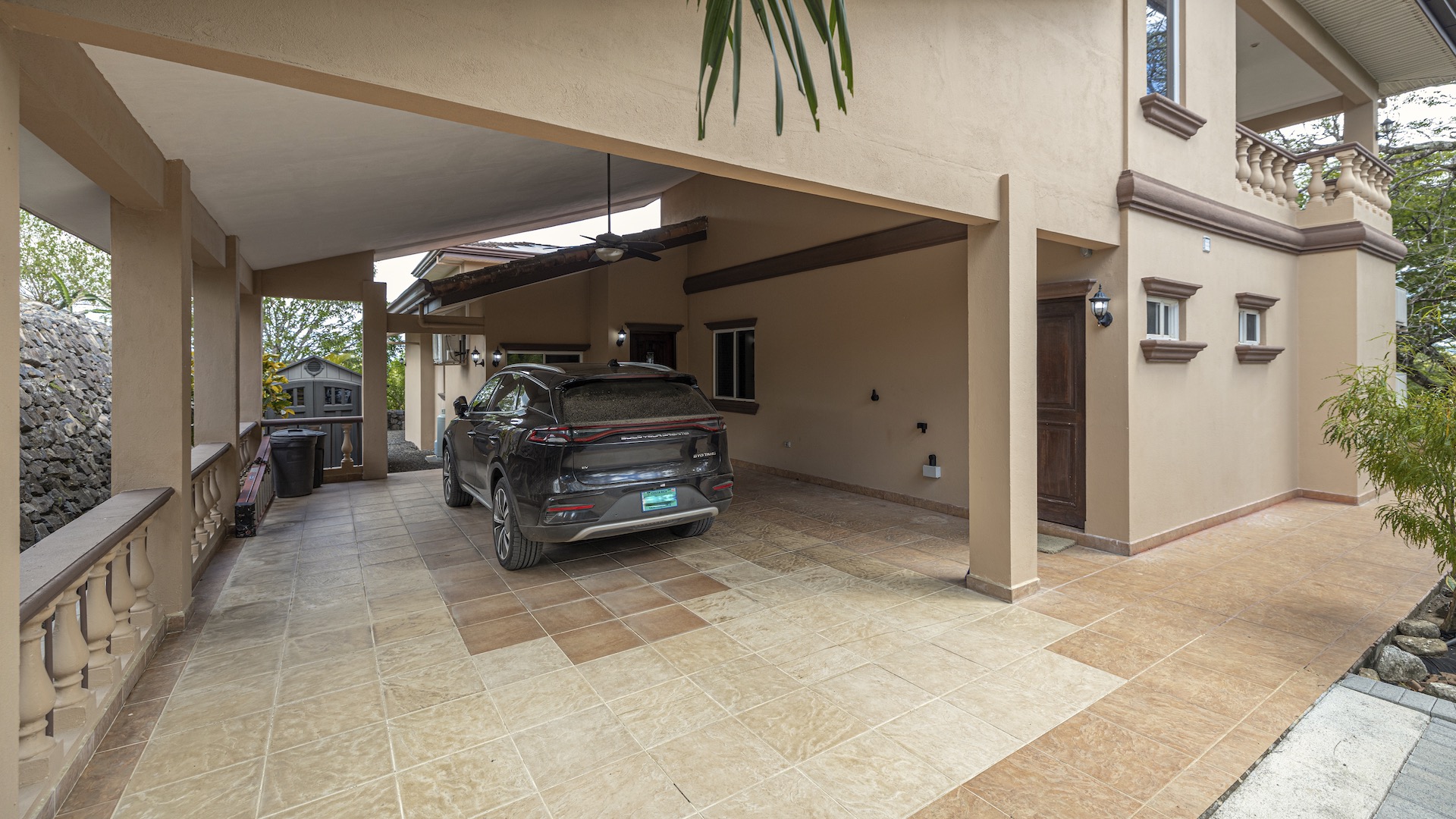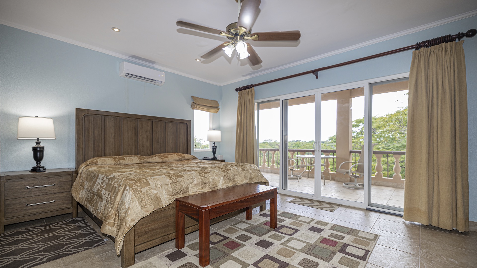 Set along the fairway of the Vista Ridge Golf Course, this tranquil estate home enjoys sweeping views over verdant valleys and distant mountain ranges. Perfectly positioned on an acre and a quarter (5,028 m²), the property is surrounded by mature native trees and lush tropical landscaping designed to attract the region’s vibrant flora and fauna, creating a truly peaceful natural sanctuary.  Step inside the vaulted-ceiling great room, where expansive living and kitchen areas capture stunning views across the large terrace and impressive pool. To one side, a dedicated dining room features floor-to-ceiling windows that frame the outdoor scenery and offer direct access to the pool terrace. The generous outdoor living area includes a covered BBQ pavilion, an outdoor shower, and an oversized terrace that wraps around the amply sized swimming pool—ideal for entertaining or simply relaxing in a serene setting.  Thoughtfully designed for comfort and privacy, the home features four master suites—two on each side of the great room, with one suite upstairs and one downstairs on each wing. All four bedrooms offer direct terrace access, while the two upstairs suites boast luxurious private covered terraces overlooking the forest canopy.  Additional features include Solar Panels, a laundry room, abundant storage, and a spacious attached carport. The home measures 3,000 sq. ft. of interior air-conditioned space and a total of 4,000 sq. ft. including all terraces. Quality finishes such as ceramic tile flooring, granite and marble countertops, and custom cabinetry and doors enhance the home throughout, and it is offered fully furnished for a seamless move-in experience.  Golf enthusiasts will appreciate being able to grab their clubs and step right onto the course from the backyard. Conveniently located just minutes from local restaurants, shopping, and services in Playas del Coco, the property is also just 25 minutes from the Guanacaste International Airport (LIR) and close to medical clinics and full-service hospitals.