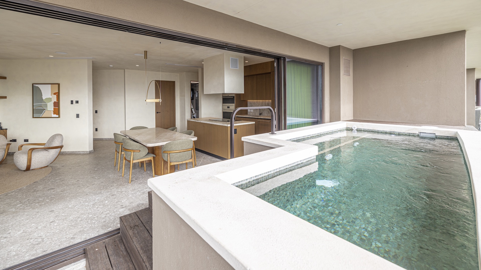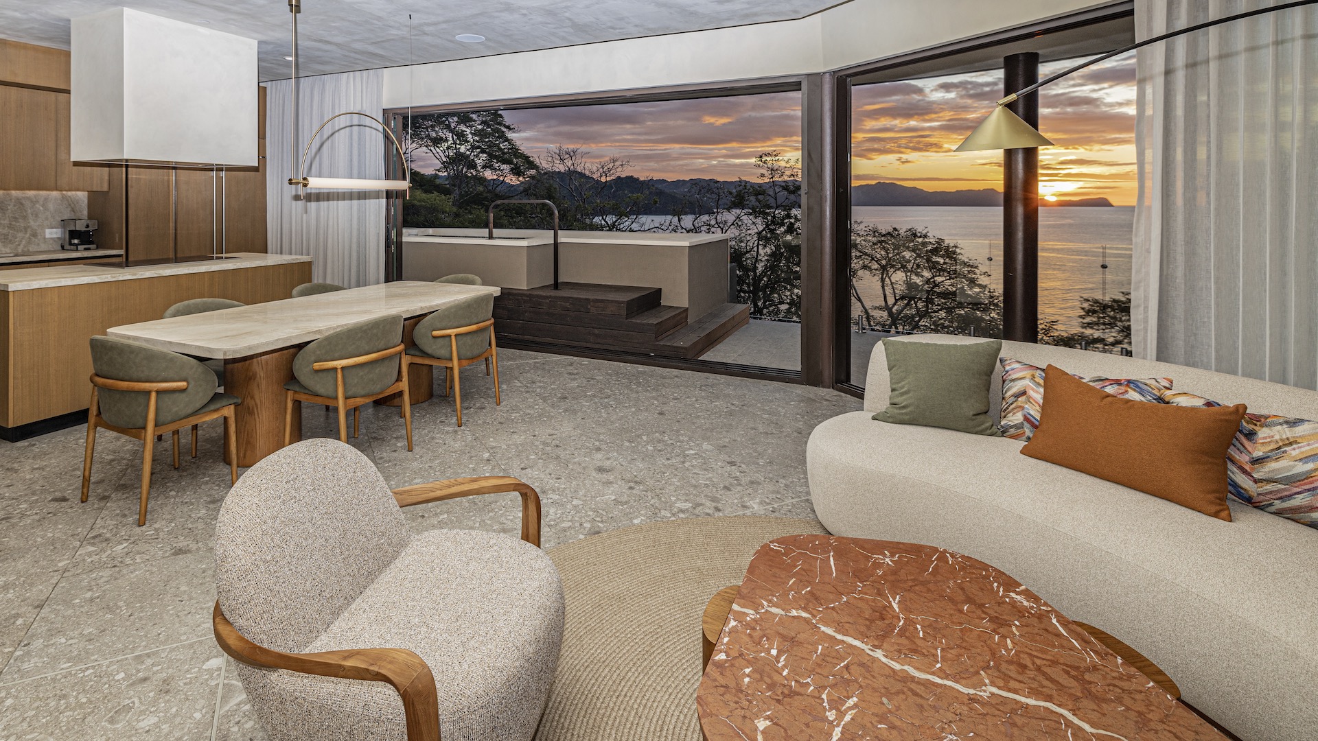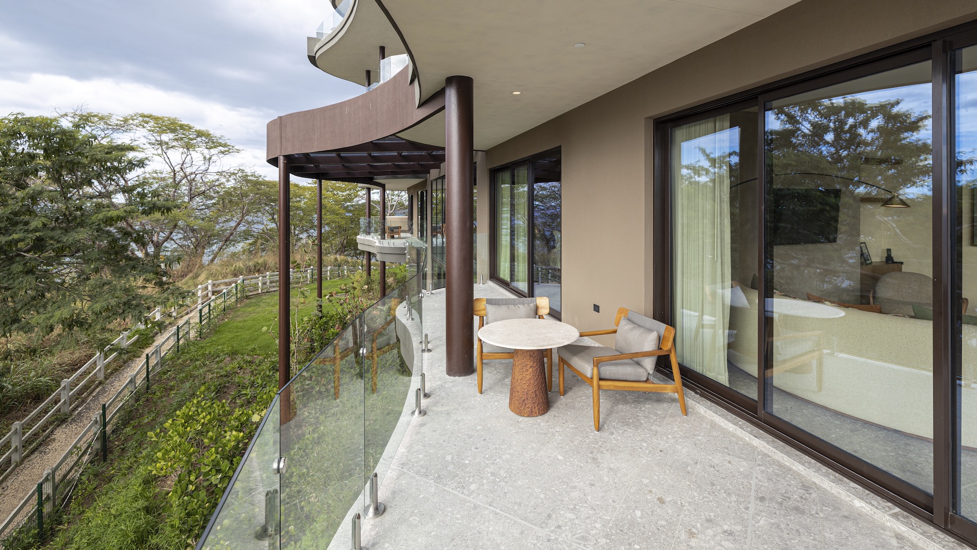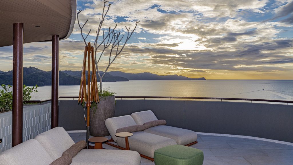 Luxury Waldorf Astoria Branded Oceanview condo blending private luxury, resort living, and coastal serenity. This refined second-floor, single-level Waldorf Astoria branded condo presents two bedrooms and two-and-a-half baths designed for effortless indoor–outdoor living, anchored by an expansive wraparound ocean-view terrace that spans the full width of the residence and includes a private plunge pool overlooking the Gulf of Papagayo. The open-concept great room is both elegant and inviting, bringing together a chef’s Cucine Lube kitchen, a well-proportioned dining area, and a comfortable living space that all open directly to the terrace for seamless entertaining. Each bedroom functions as a private suite, featuring a sumptuously appointed spa-style bathroom with direct walkout access to the ocean-view terrace. One suite can be locked off for flexible use or privacy. Earth-toned palettes, handcrafted finishes, native landscaping, and atmospheric lighting create a calm coastal aesthetic throughout, complemented by an owner lock-out closet conveniently located on the first floor and the anticipatory, discreet service synonymous with Waldorf Astoria. Positioned on the southwestern edge of Punta Cacique within a 600-acre master-planned peninsula, this exquisite unit site inside an exclusive luxury condominium building of only 19 units offering a carefully curated residential experience enhanced by two refined indoor lounge areas and a striking sixth-floor rooftop retreat. Here, residents enjoy unmatched ocean and peninsula views from a resort-style pool, multiple lounging areas, an indoor kitchen and grill, and dedicated men’s and women’s changing facilities. Ownership is further elevated by a comprehensive suite of services, including a 24/7 Waldorf Astoria personal concierge, an optional full-service rental program managed by Waldorf Astoria, a dedicated on-site Director of Residences, housekeeping and in-residence dining, pre-arrival provisioning and wellness concierge, private hotel signing privileges, doorman and bellman services, valet parking, electric on-property transportation, and 24-hour reception and security.